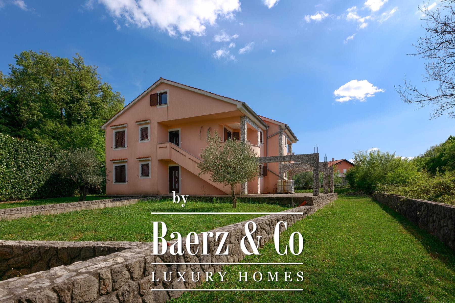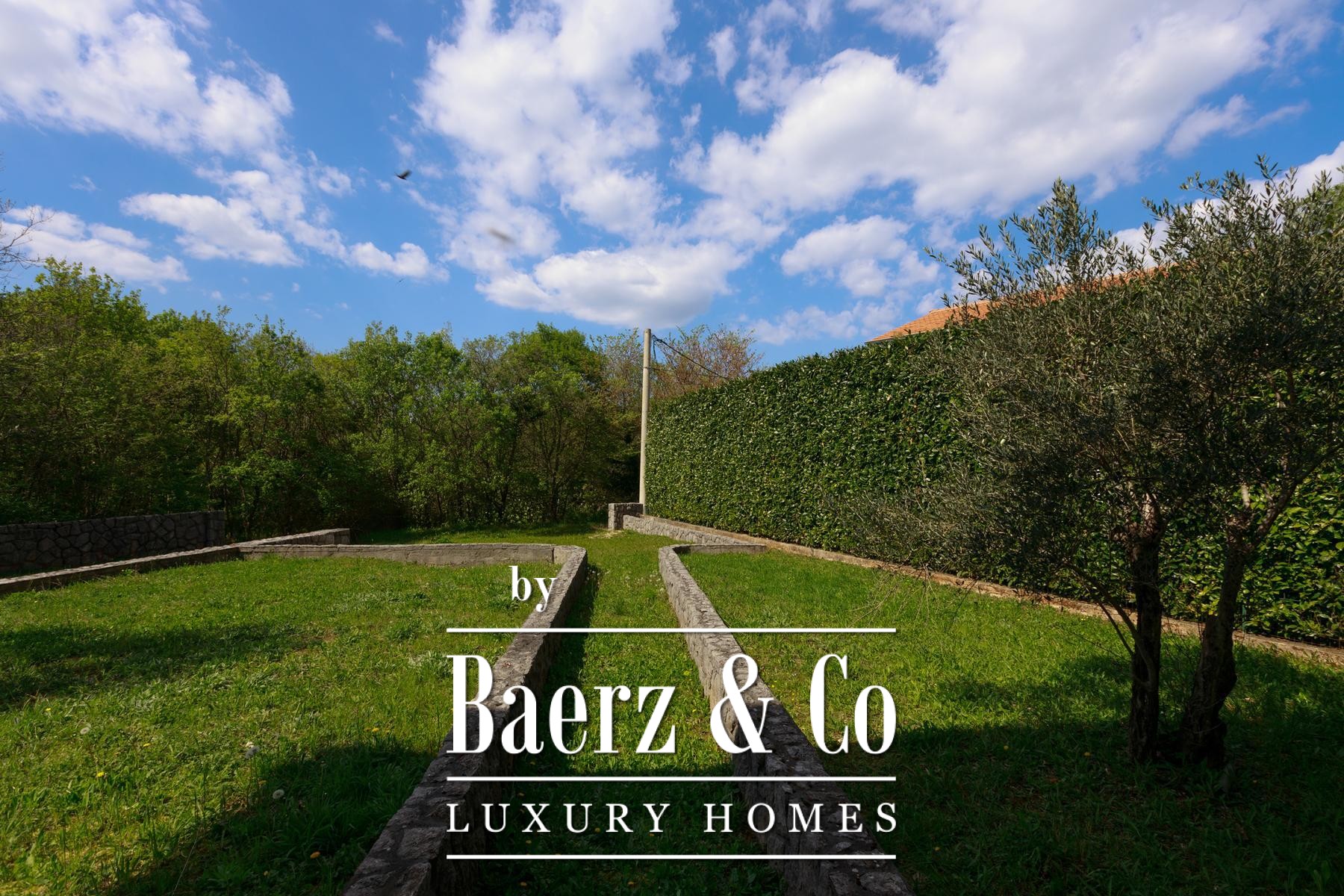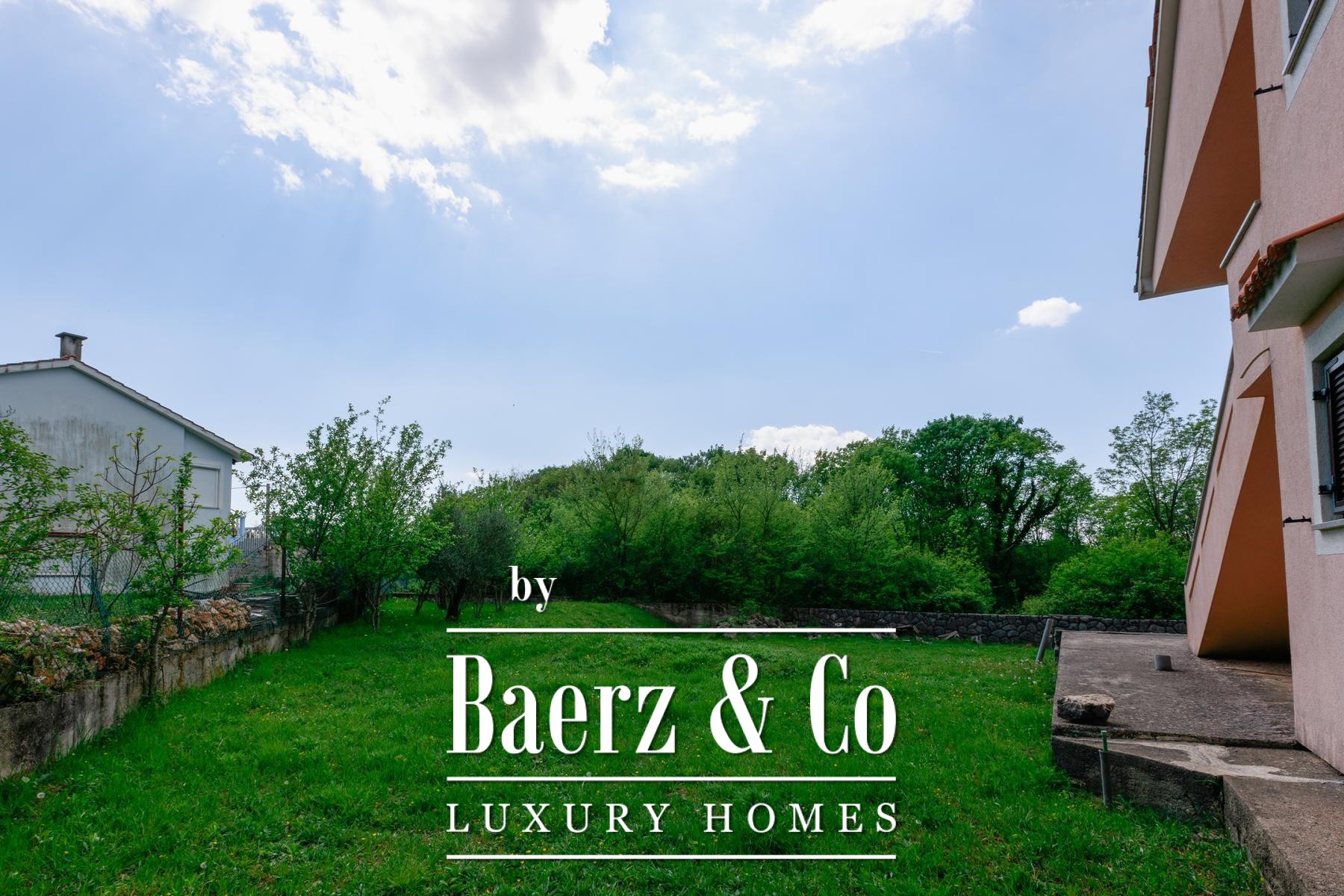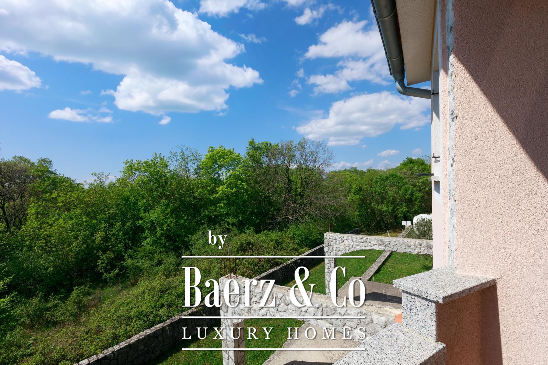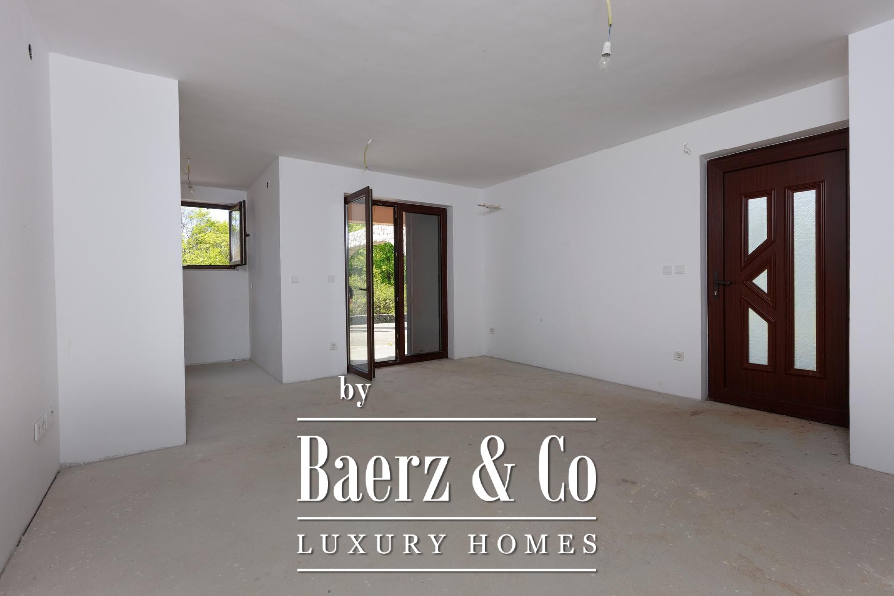 Beide helften van het object beschikken over een eigen tuin, met voldoende ruimte voor individuele zwembaden. Beganegrondappartementen openen naar privéterrassen, terwijl de appartementen op de eerste verdieping over balkons beschikken met uitzicht op het groen. Een aparte eetruimte ligt in de natuurlijke schaduw, ideaal voor buitenverblijven. De rust van Kras, ver van de drukte van de stad en toch op korte rijafstand van zee en voorzieningen, biedt een verfijnd maar ontspannen levensritme.
