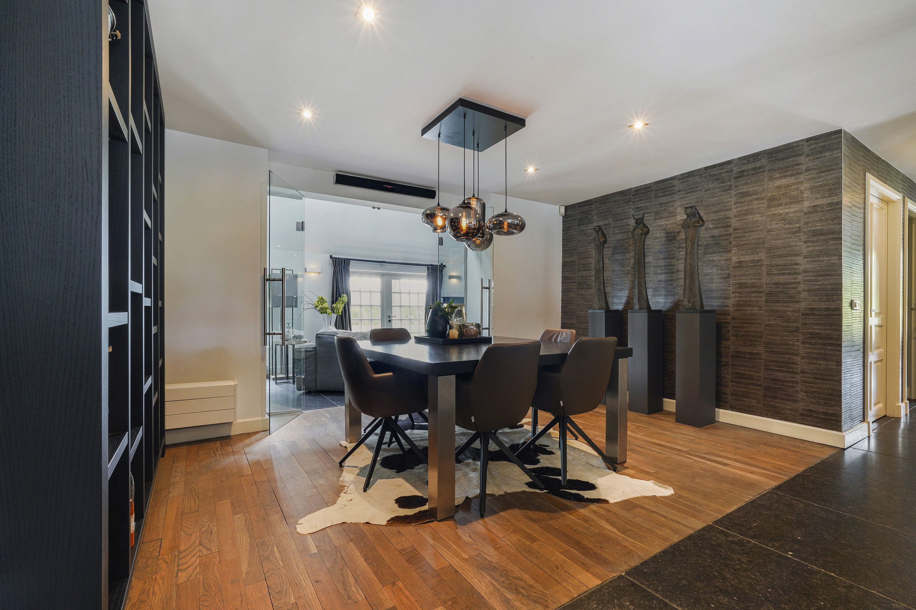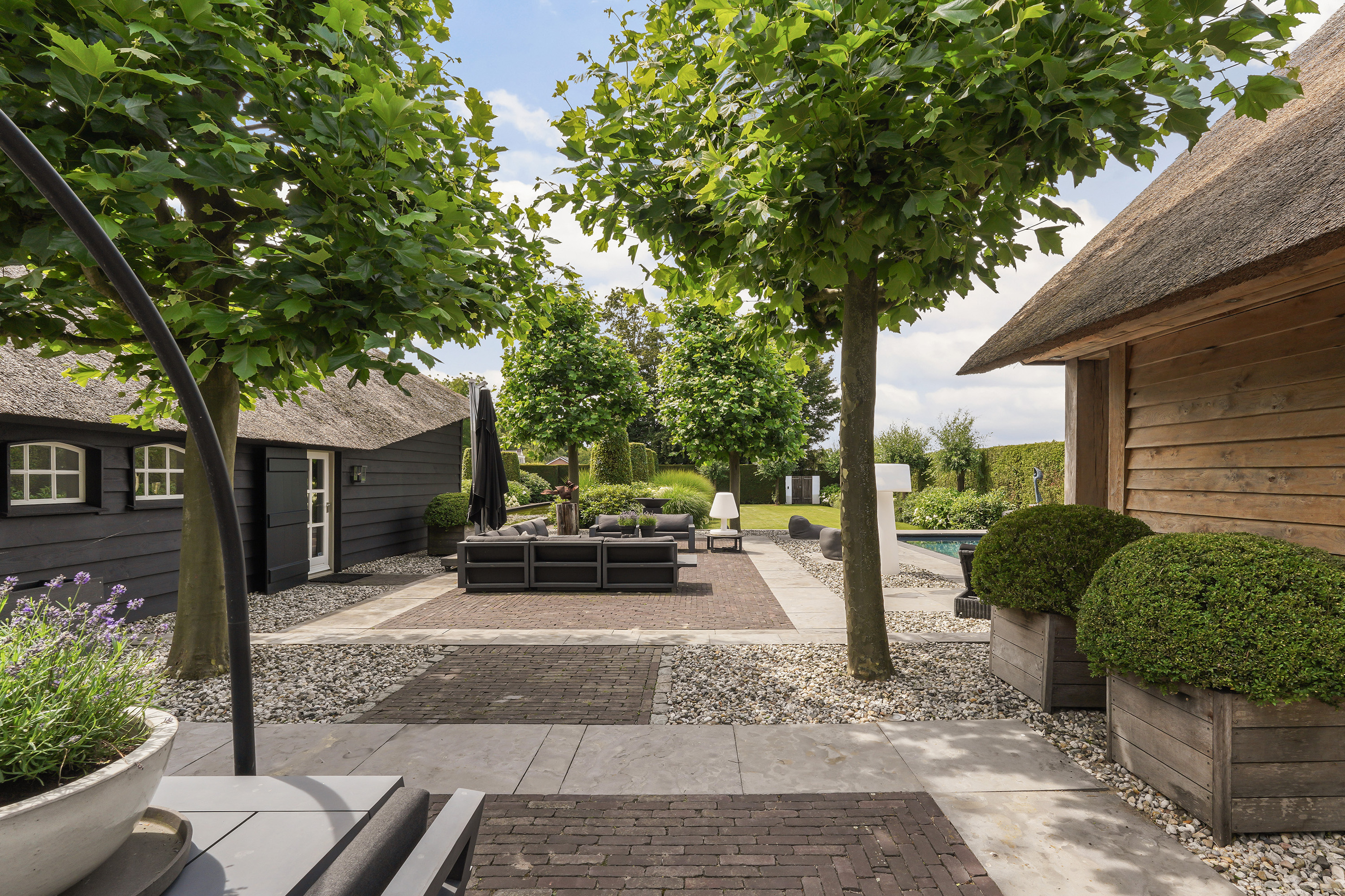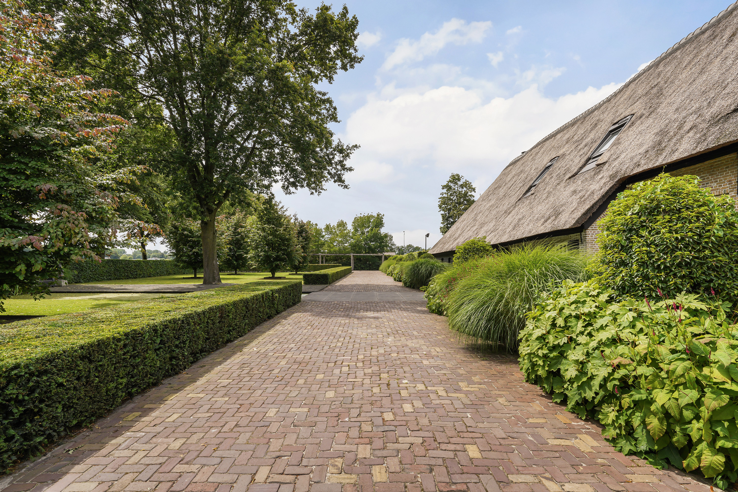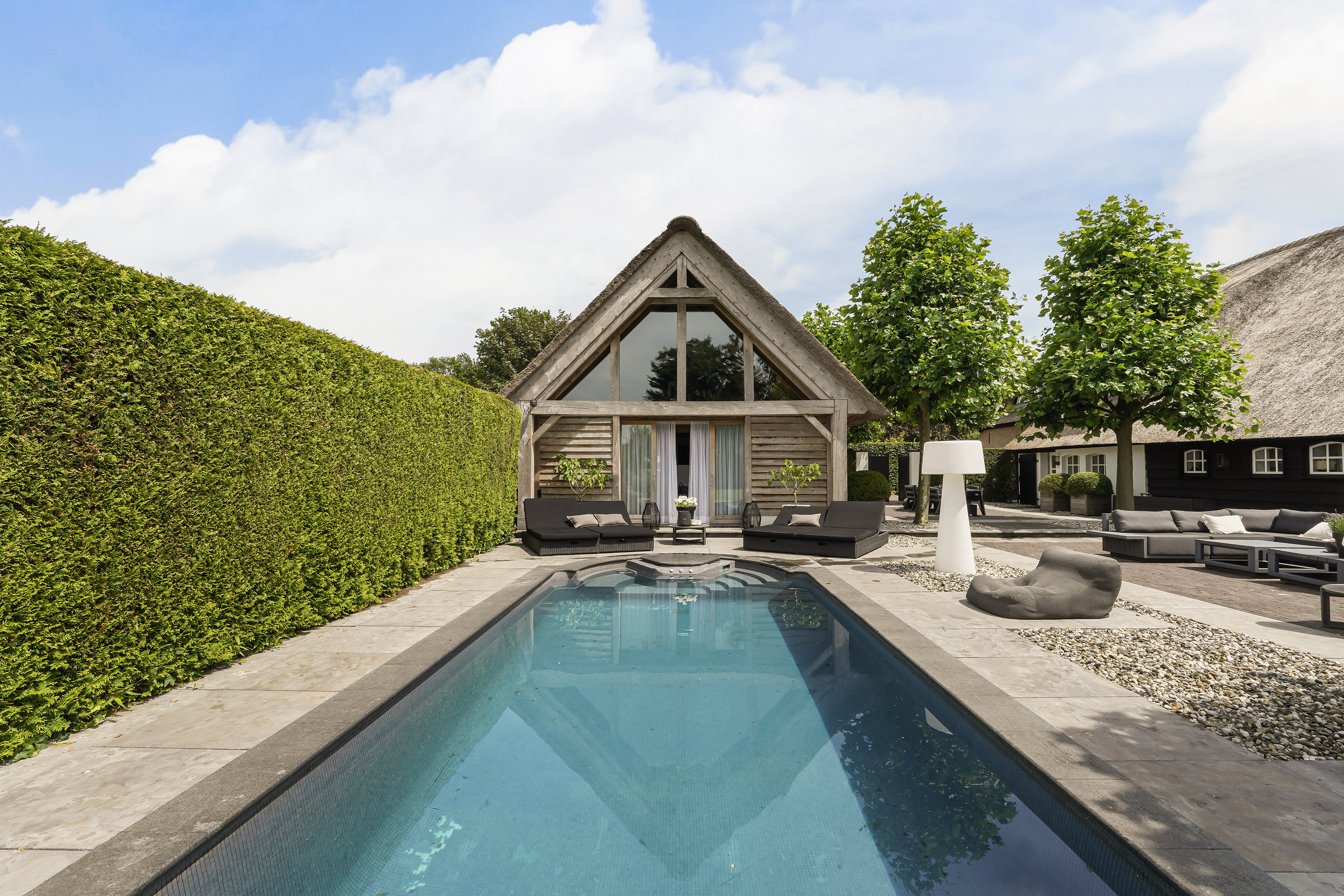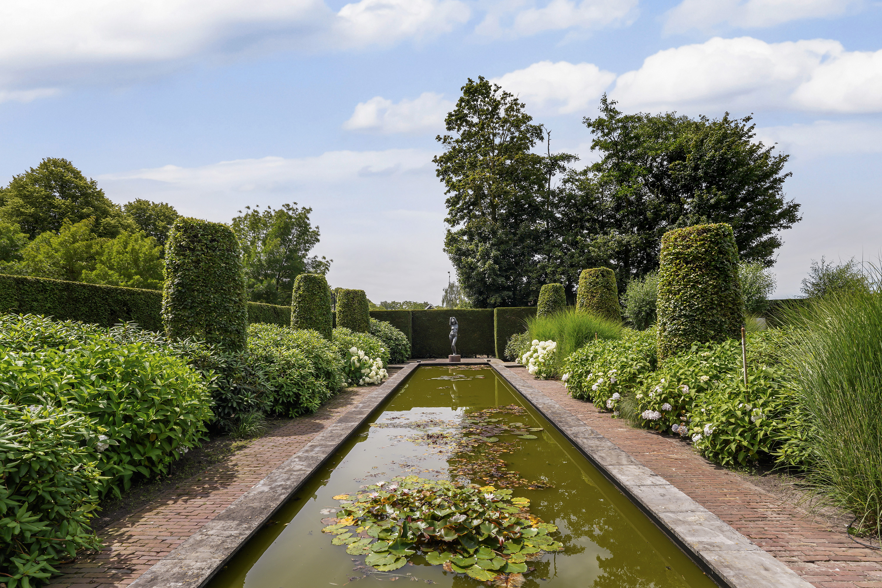 Het riante perceel van maar liefst 3.610 m² maakt de beleving compleet. Via de statige oprijlaan bereikt u de prachtige, onder architectuur aangelegde tuin met sierlijke vijverpartijen, fraaie zichtlijnen en volop privacy. Hier vindt u ook het verwarmde zwembad met jetstream, de rietgedekte carport en een luxueus guesthouse met sauna, keuken en openhaard. Het geheel is volledig omheind en beschikt over twee elektrische toegangspoorten.
