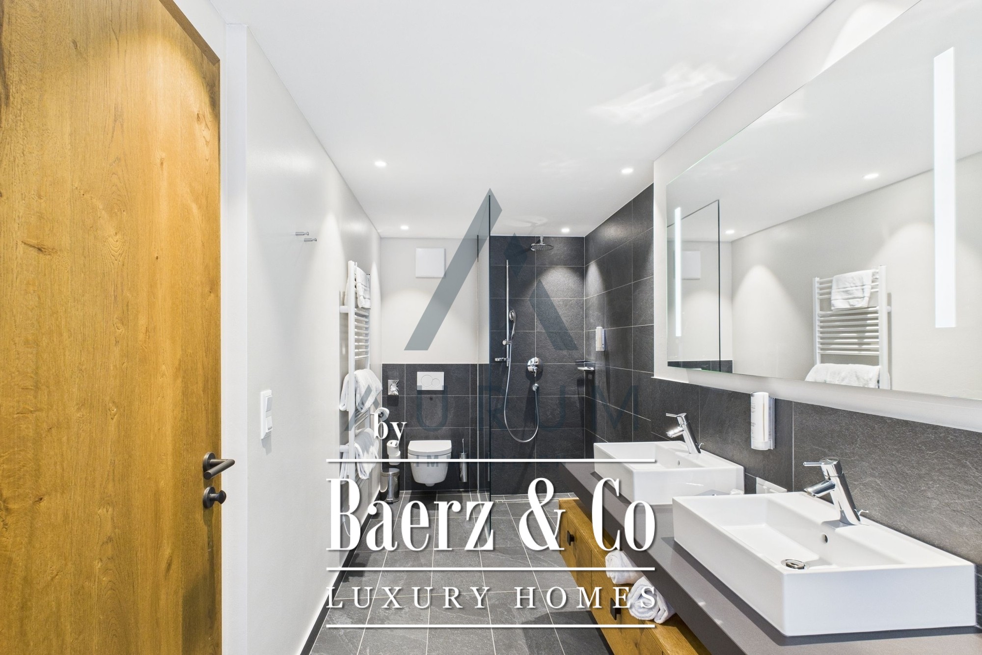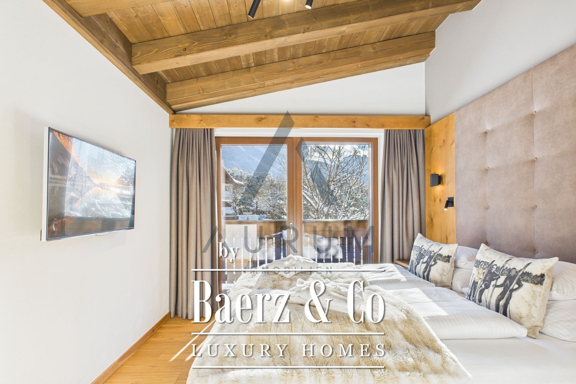 Op de bovenverdieping nodigen drie extra slaapkamers en twee balkons uit tot rust; twee kamers beschikken over en-suite faciliteiten. De afwerking is met zorg gekozen, met eiken parketvloeren en fijn keramiek in een uitgesproken alpine stijl. Het chalet wordt volledig gemeubileerd en uitgerust aangeboden voor direct gebruik of verhuur.