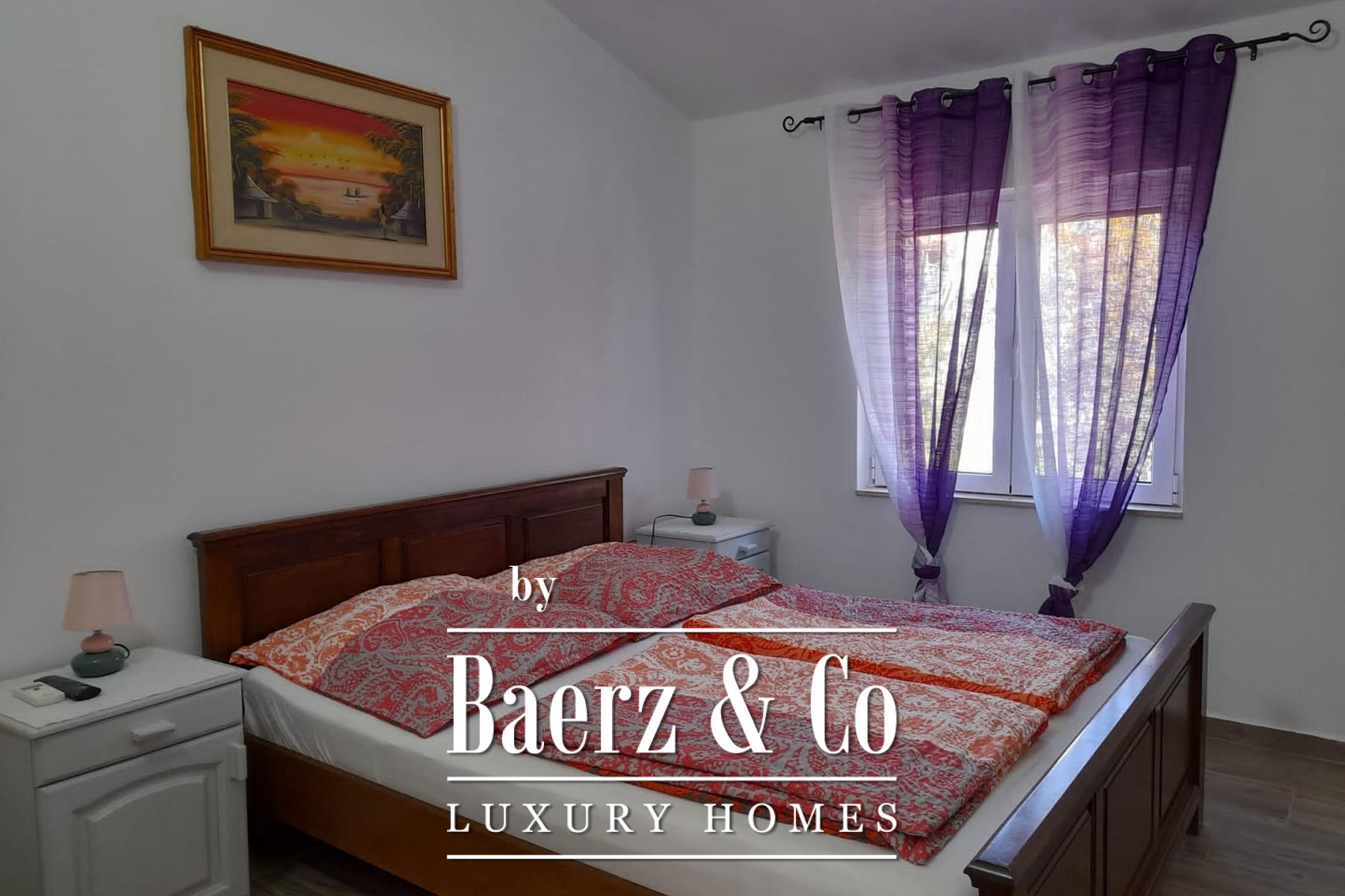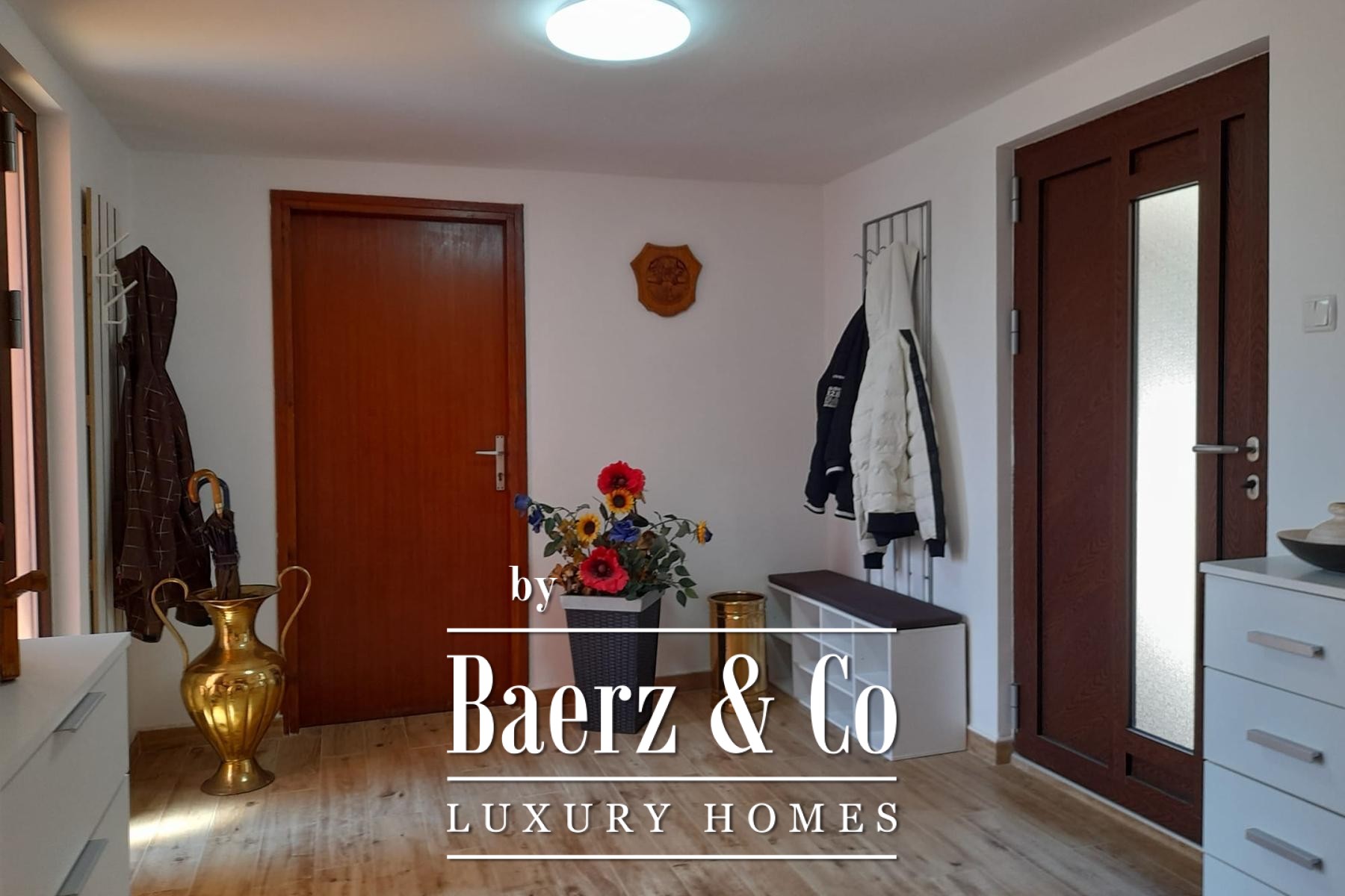 Het huis is verdeeld over twee woonlagen. Op de begane grond gaan licht en ruimte samen in een royale living, een volledig uitgeruste keuken en een badkamer, allen georiënteerd op het terras en het 48 m² zwembad. Een subtiel geïntegreerde garage vloeit moeiteloos mee in het geheel. De tuin met zwembad en buitenhaard omlijst het geheel met bescheiden Kroatische allure.