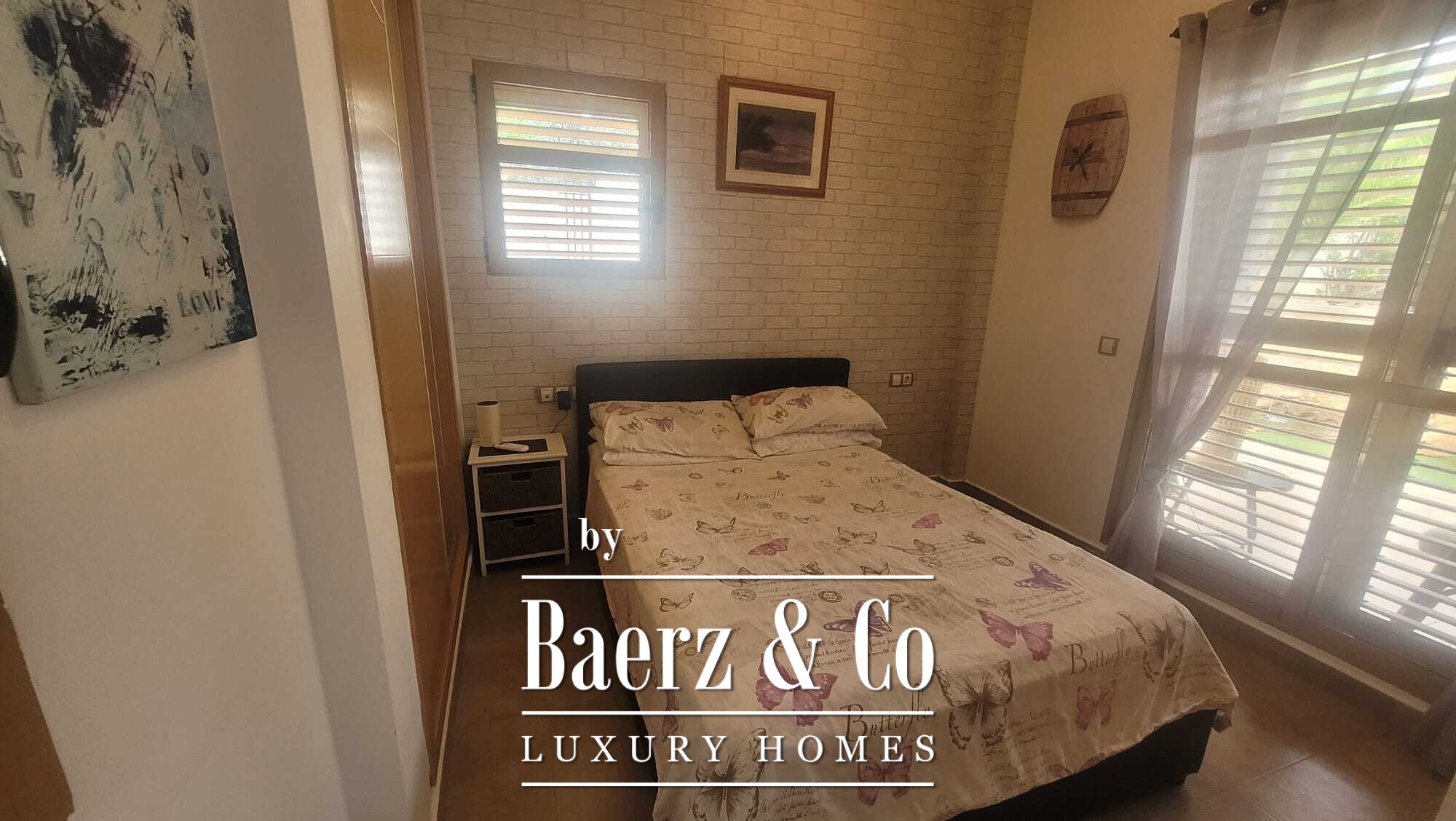 De woning heeft een oppervlakte van 180 m², verdeeld over twee verdiepingen, en bestaat uit 3 slaapkamers met inbouwkasten, 2 en-suite badkamers, een gastentoilet en een ingerichte keuken en een lichte woonkamer met open haard en dubbele beglazing. De woning is in zijn geheel voorzien van airconditioning via leidingen.