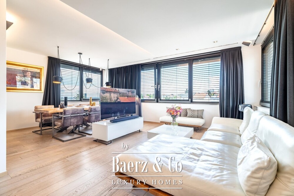 Penthouse Zagreb markeert een zeldzame samensmelting van discretie en design in Šalata, een van de meest prestigieuze wijken van de stad. Deze driekamerresidentie beslaat 184 m² over twee niveaus, verbonden door een interne trap en verlicht door royale glazen wanden die het panoramische uitzicht op Zagreb benadrukken.