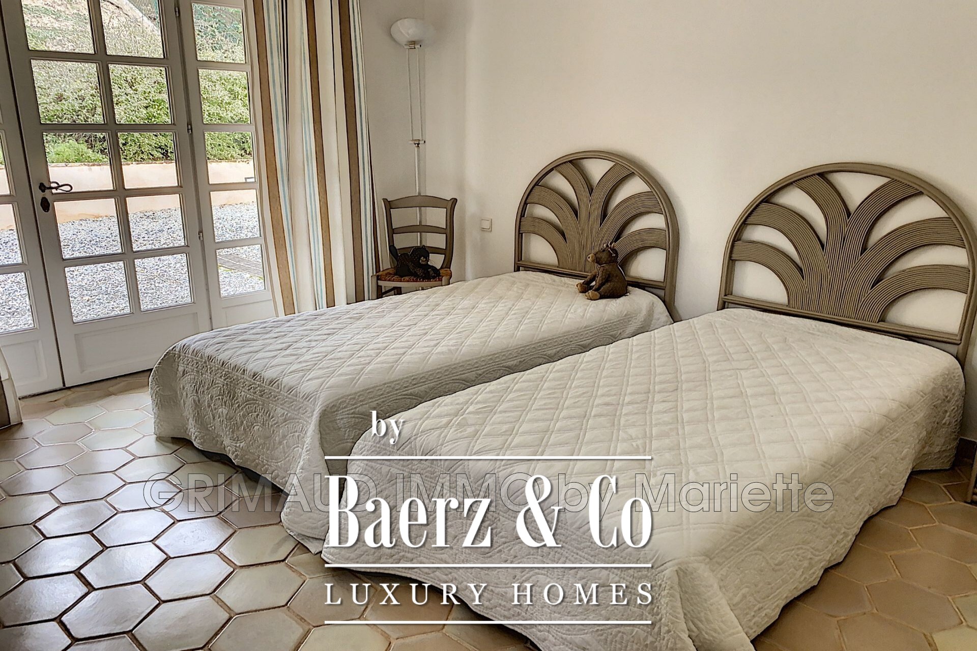 Op de verdieping bieden twee extra slaapkamers, samen met een doucheruimte, privacy en rust aan gasten of familie. In het souterrain vergroten een kelder en werkplaats de gebruiksmogelijkheden van het huis. Buiten trekt het 13 meter lange zwembad de aandacht naar de diepte van de tuin en vormt het een ankerpunt voor ontspanning in het groen. Deze villa in Grimaud ligt op loopafstand van het dorp en nodigt uit tot een rustig tempo en een sterk gevoel van verbondenheid met de plek.