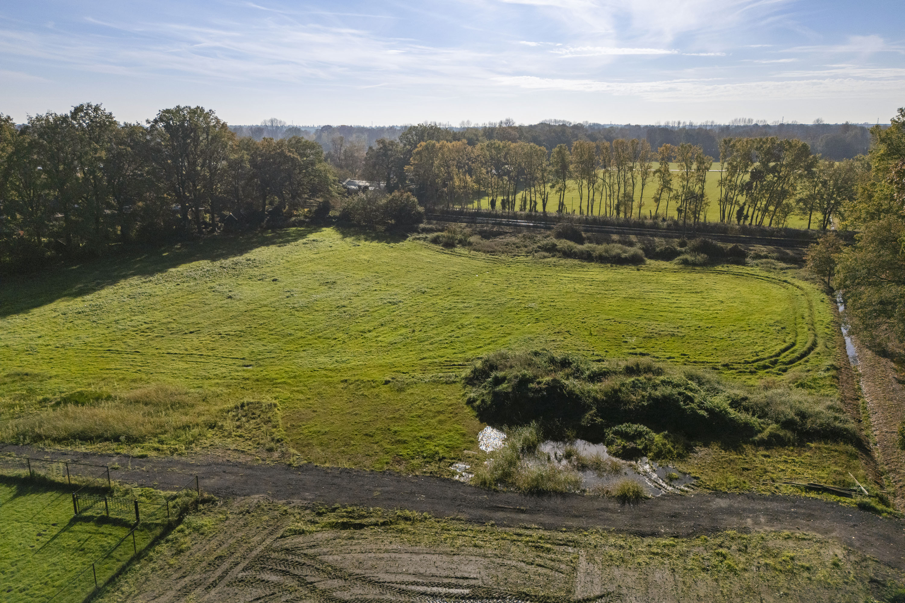 Een indrukwekkende kavel van maar liefst 1,3 hectare aan de zuidkant van het landgoed. Deze kavel heeft een licht geaccidenteerd terrein, die door de inrichting van een plasdraszone periodiek onder water staat en als botoop zal dienen voor diverse flora en fauna. Het bouwvlak van circa 1000 m2 ligt centraal aan de noordzijde, voor een optimale bezonning aan de achterzijde van de woning.