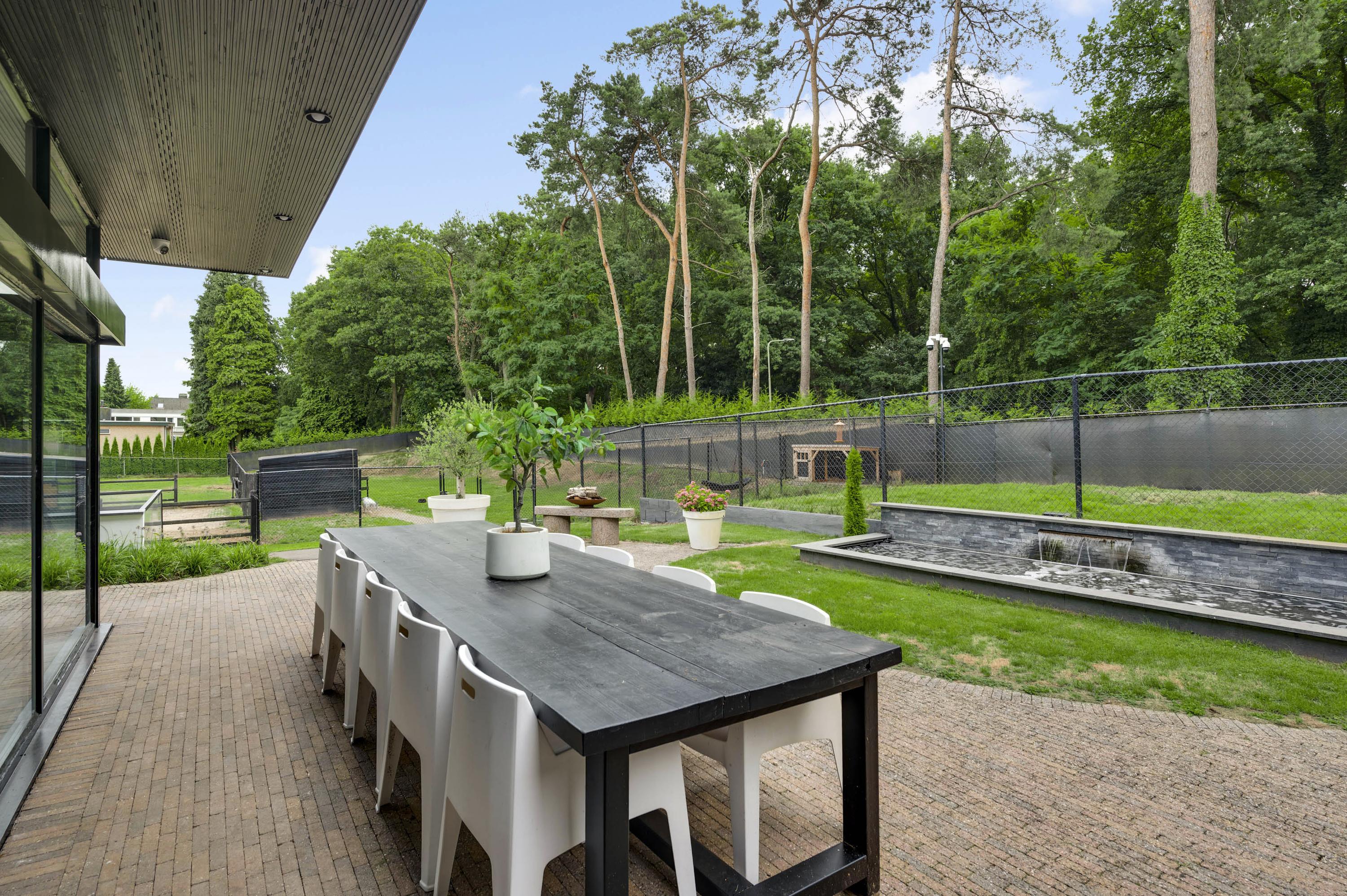 Via de statige toegangspoort met intercom betreedt u het domein. Uw auto parkeert u vorstelijk onder de dubbele carport of in de inpandige dubbele garage. Via de overdekte entree bereikt u de royale ontvangsthal — een waardige binnenkomst voor deze villa van formaat.