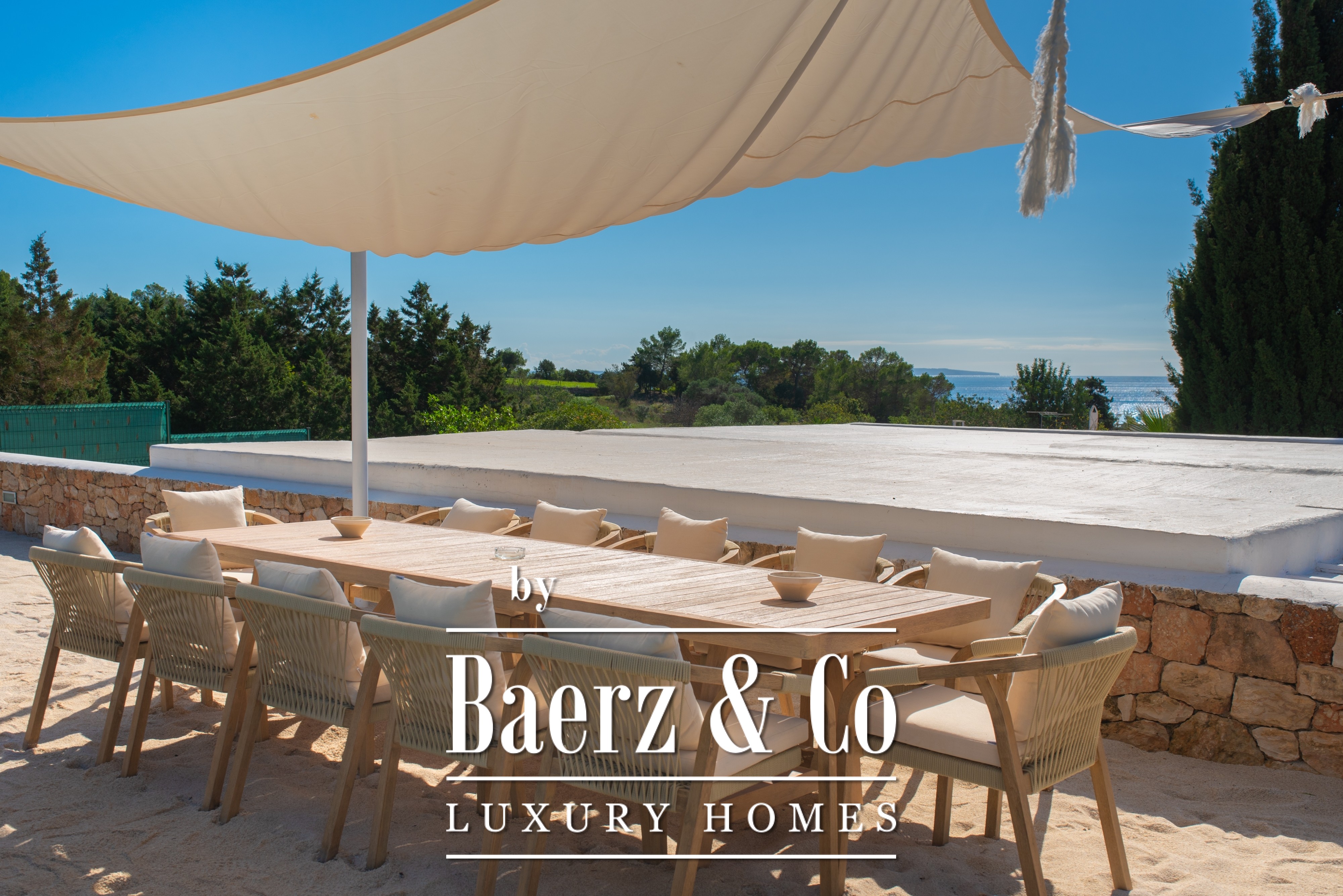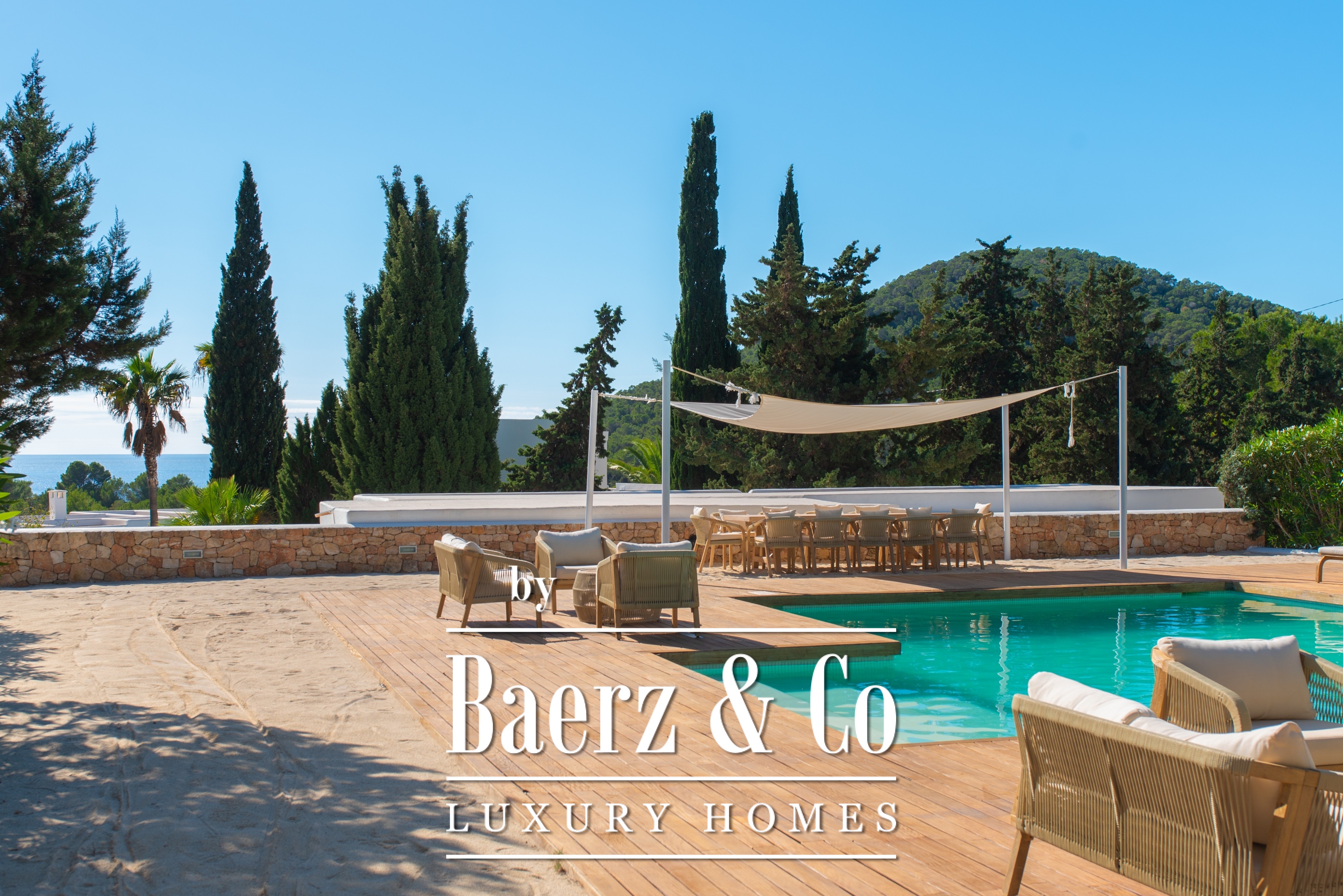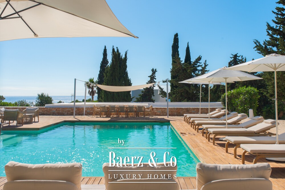 Deze Ibiza-villa met uitzicht op zee vormt een harmonieuze mix van traditionele architectuur en ontspannen, verfijnde kuststijl. De woning beschikt over zes slaapkamers en zeven badkamers verdeeld over een royale 360 m² woonruimte, met een solide bouw die uitnodigt tot zorgvuldige modernisering, waarbij het authentieke Ibizaanse karakter behouden blijft. Het kenmerkende element van de villa is het buitenleven: riante terrassen bieden een panoramisch uitzicht op zee en het uitzonderlijk grote zwembad, omringd door zandkleurige accenten, roept de sfeer op van een exclusieve beachclub.