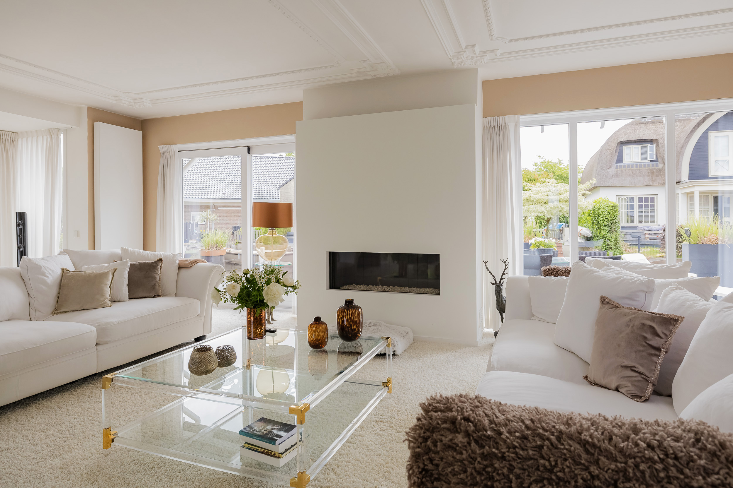 • Royale lichte woonkamer met gashaard