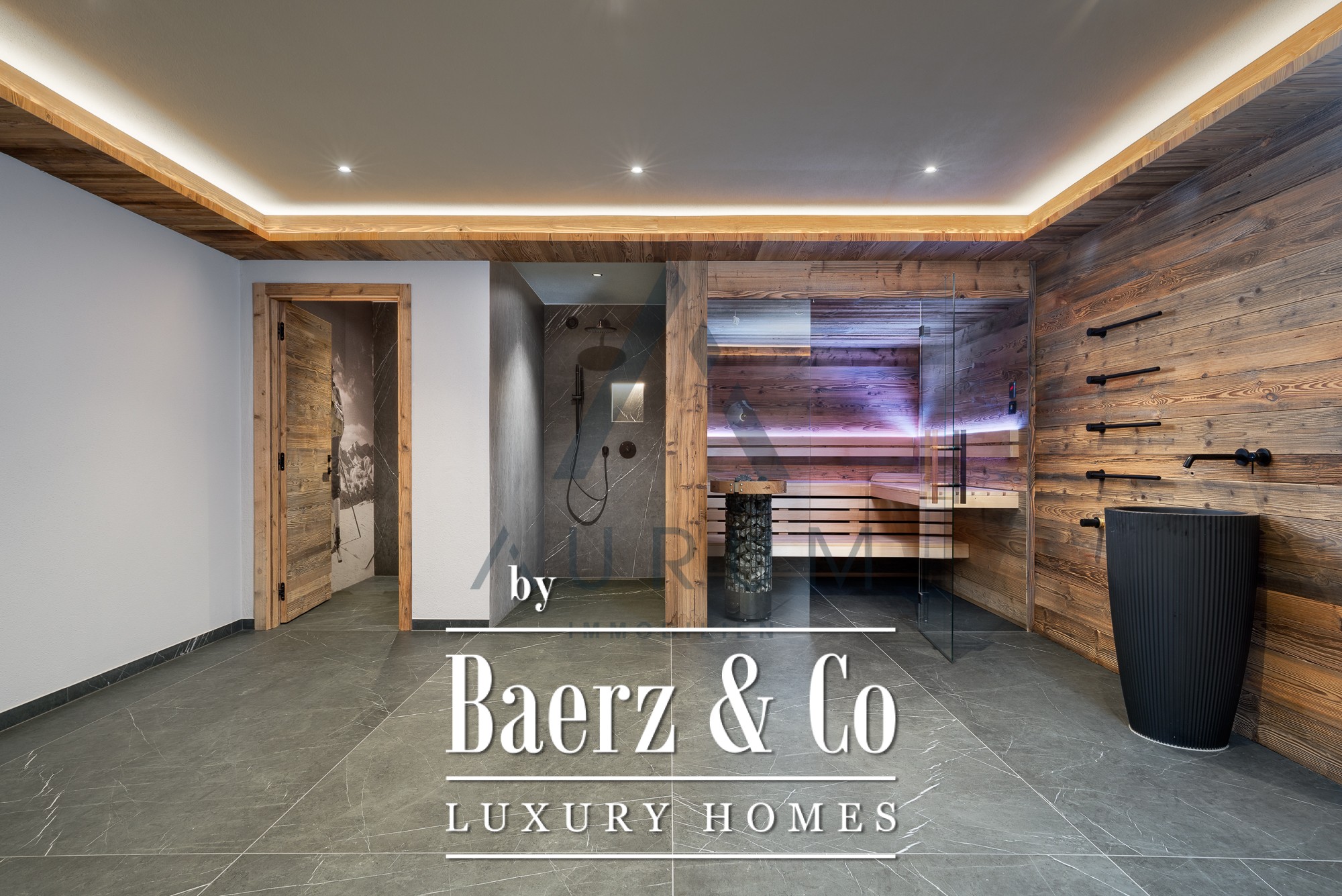 Het privé wellnessgedeelte, bereikbaar per lift, beschikt over een sauna van hergebruikt hout, een wellnessdouche, een vrijstaand bad en ruimte om tot rust te komen, afgewerkt met massief houten vloeren en verfijnde details. Twee garageplaatsen, geavanceerde vloerverwarming, een BUS-systeem en Occhio-verlichting vervolmaken het ingetogen luxegevoel. Originele materialen en gecontroleerd comfort creëren hier een unieke plek die diep geworteld is in het landschap en toch wordt verheven door modern design.