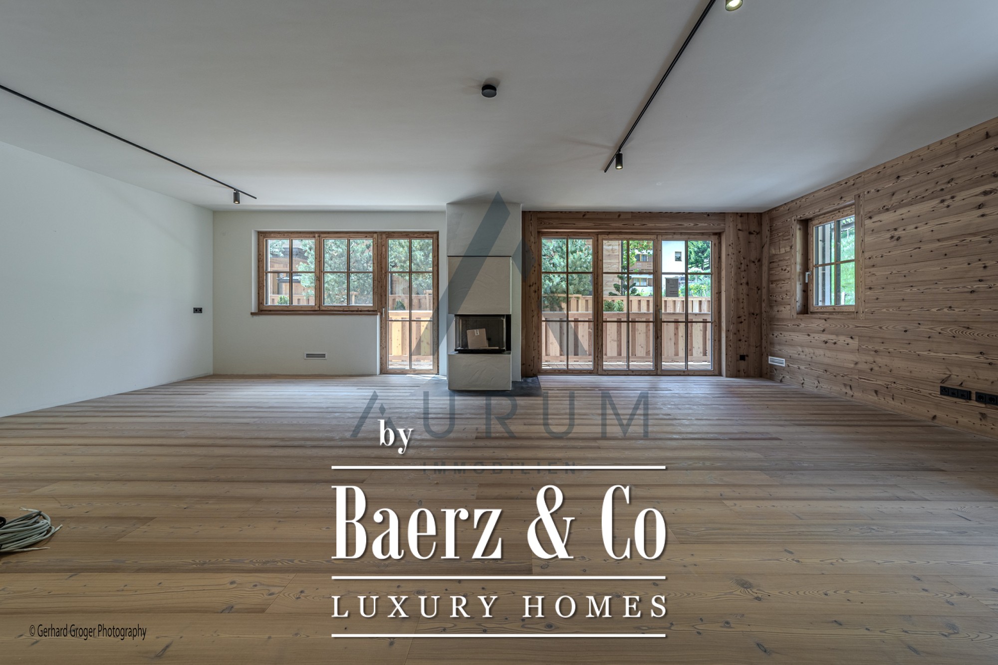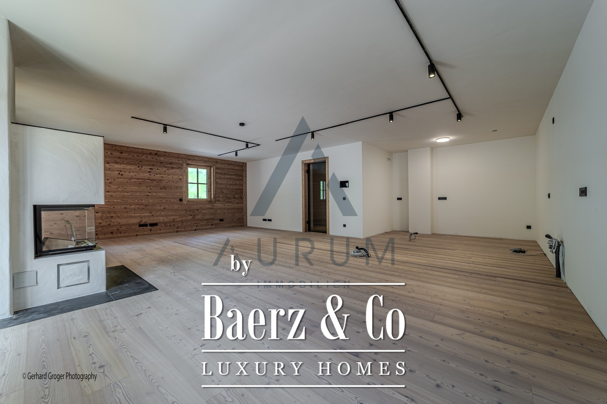 Deze rustige enclave aan de voet van de Gaisberg ligt op steenworp afstand van het hart van Kirchberg en beschikt over 155 m² woonoppervlak, twee slaapkamers en twee badkamers. Op de bovenverdieping bevindt zich een open woon- en eetkamer, voorzien van een open haard en zichtbare dakspanten, wat zorgt voor zowel warmte als ruimtelijkheid. Vloeren van larikshout en keramische tegels geven elk vertrek karakter, terwijl hoogwaardige keukens en vloerverwarming het hele jaar door comfort bieden.