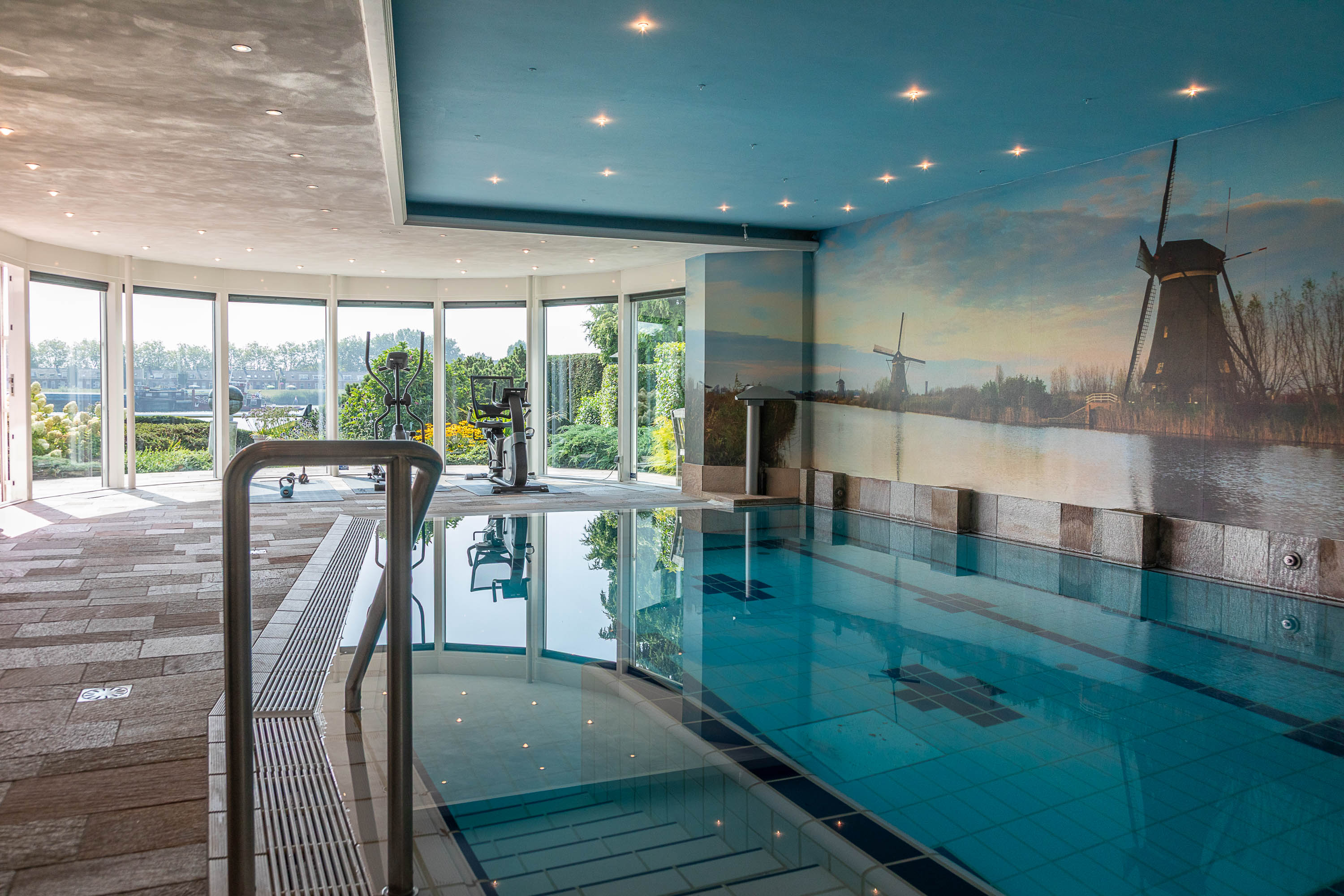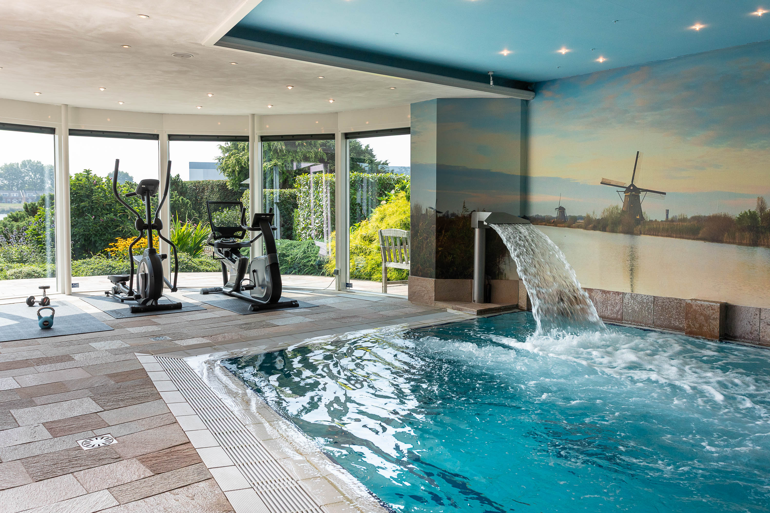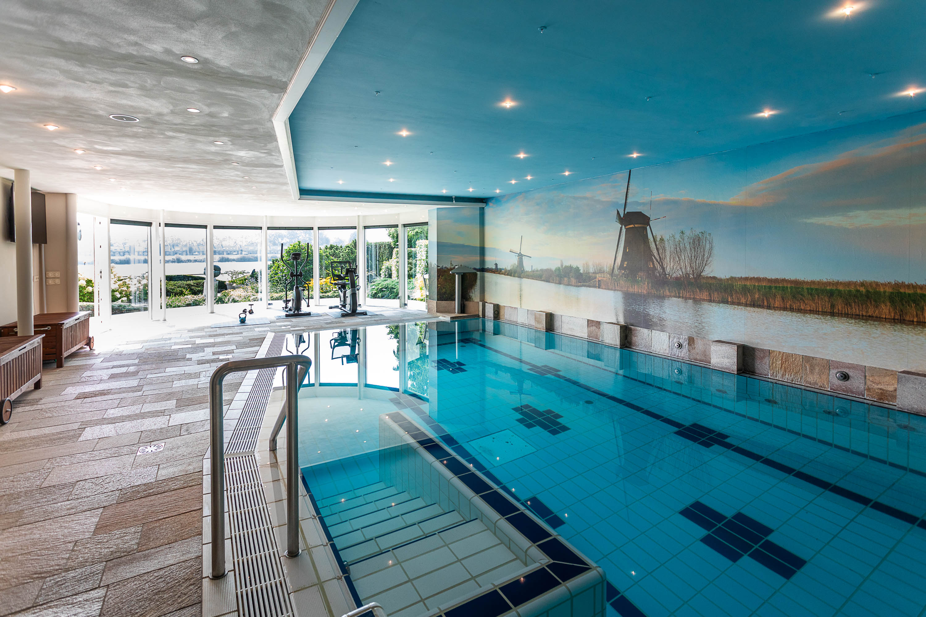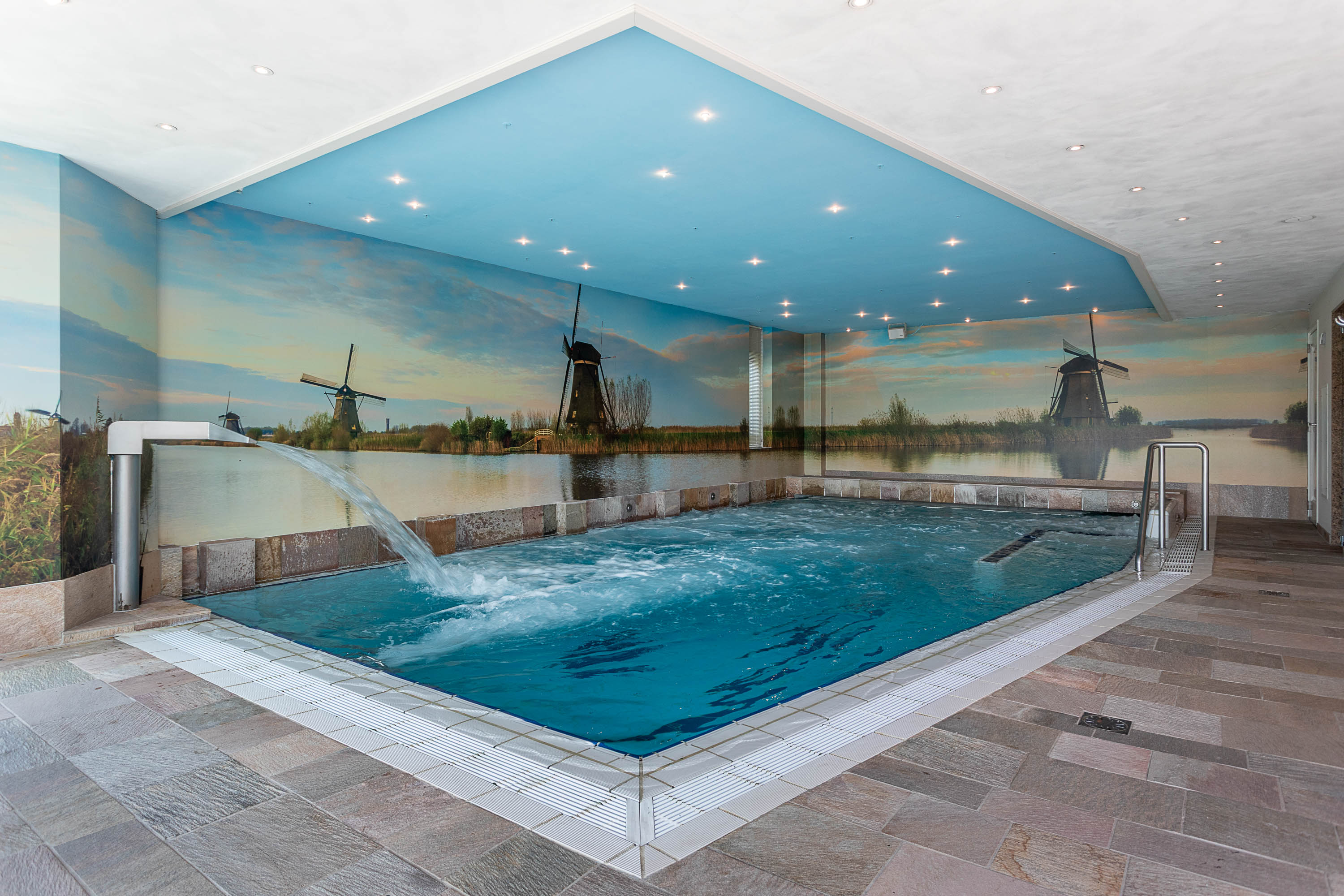 Het souterrain herbergt een complete wellness afdeling die van deze villa een privéresort maakt. Ontspan in het zwembad met jet stream, laat u meevoeren door de waterval, geniet van de bruisplaat, de wandbruiser of kom tot rust op de whirlpoolbank. Een oase van ontspanning, gewoon in uw eigen huis.
