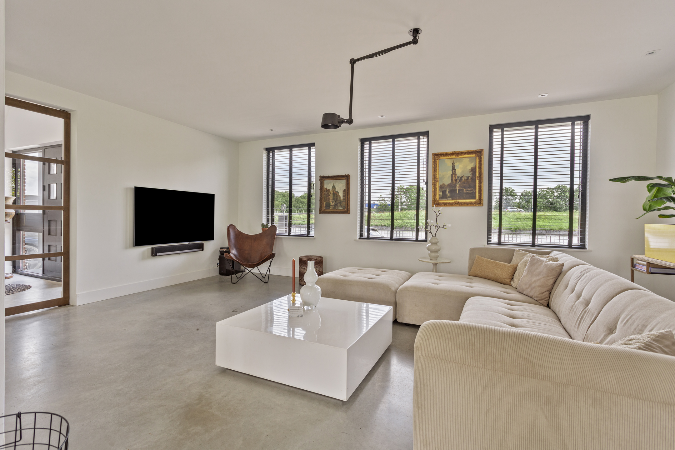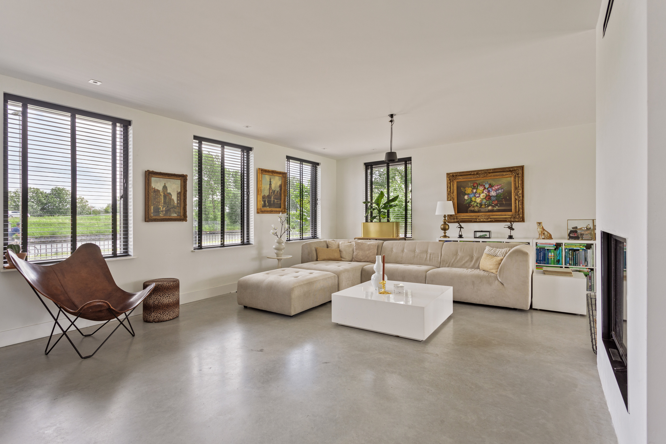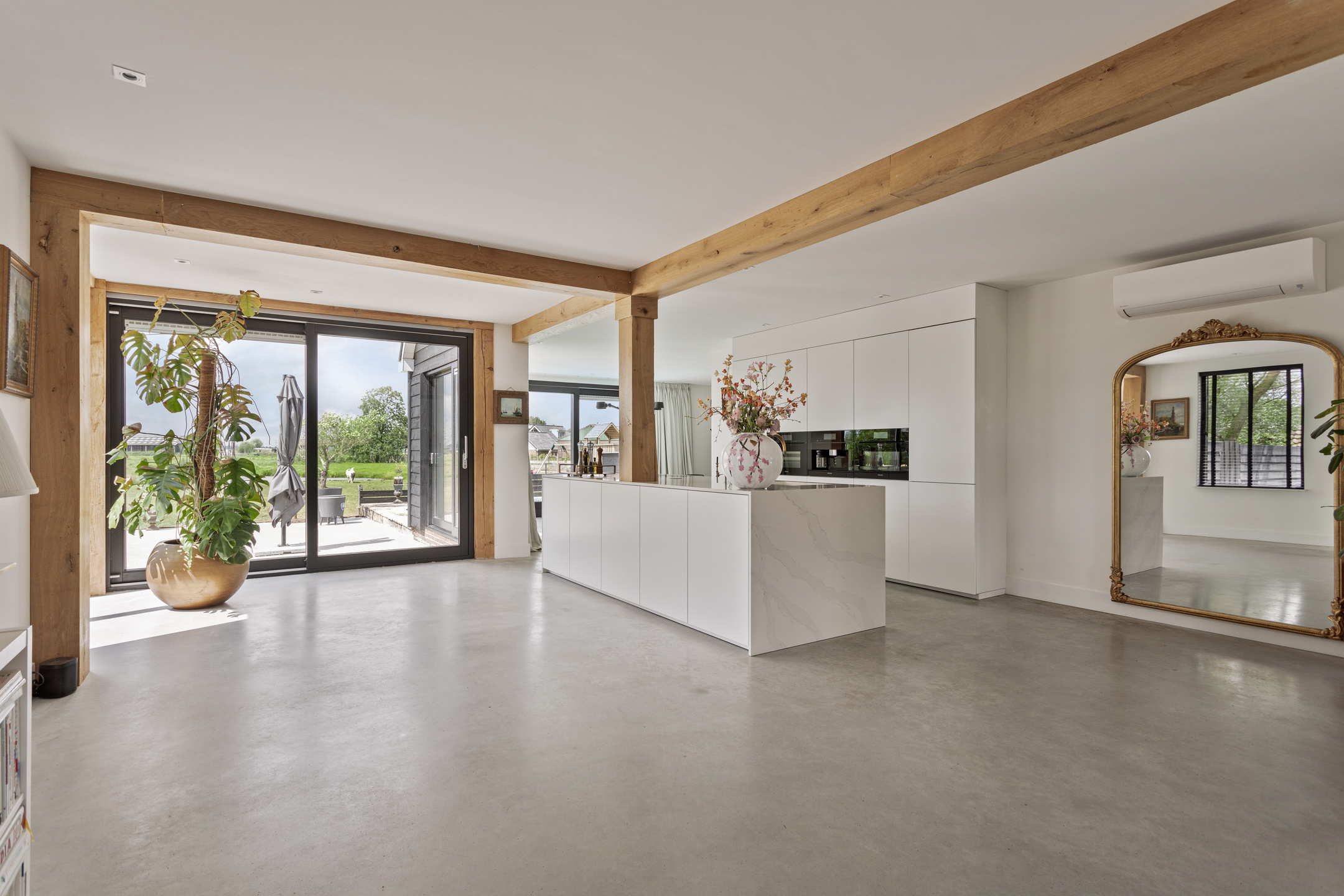 De gehele begane grond verdieping is voorzien van een gevlinderde gietbeton vloer met vloerverwarming.