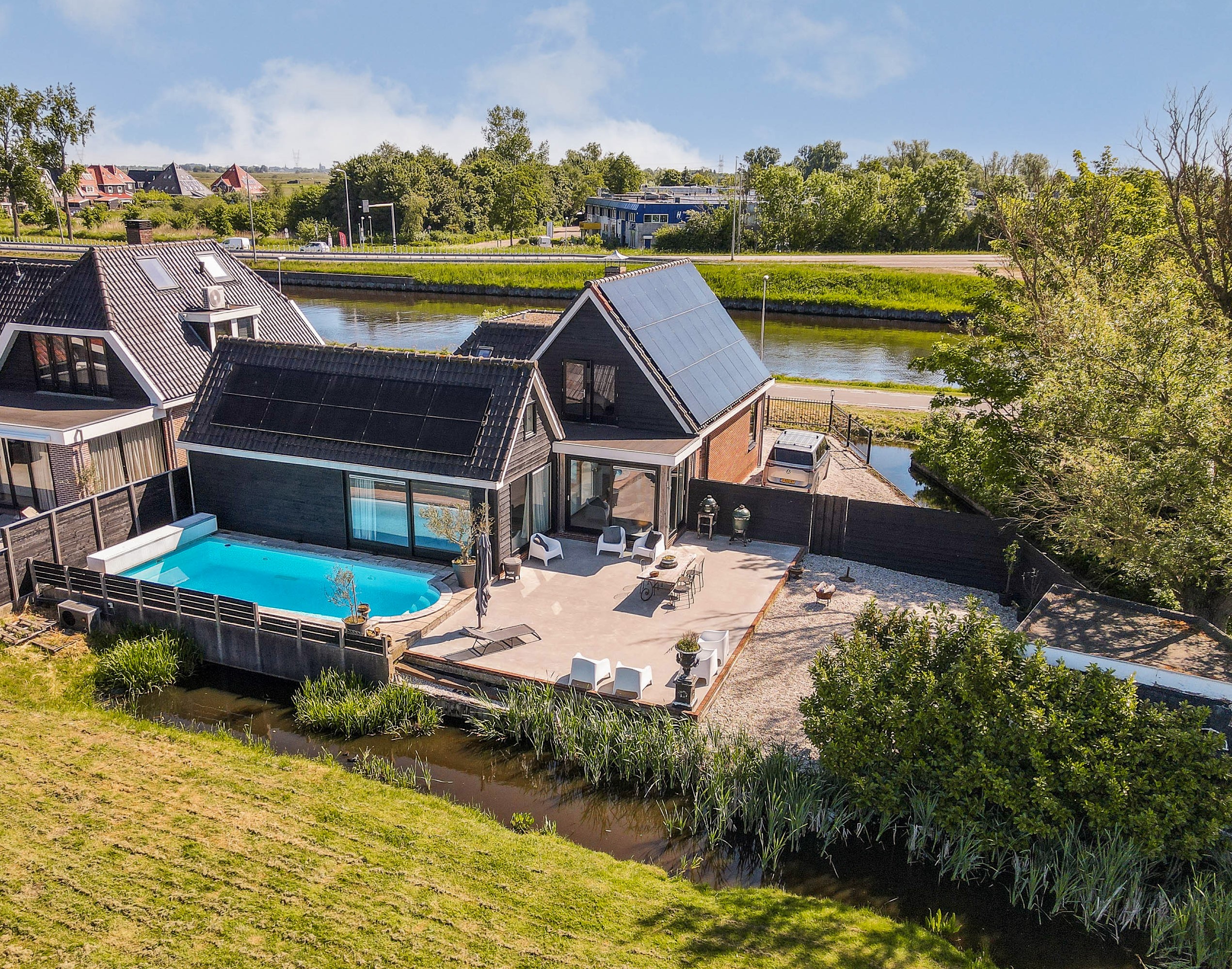 Nestled amidst the meadows of the Landsmeerderveld and the North Holland Canal, this beautifully finished detached home offers unparalleled charm. The sweeping views of the meadows never cease to amaze. Whether relaxing by your poolside or enjoying a fine glass of wine in the open-plan kitchen, breathtaking sunsets become a part of your daily life. Peace and privacy abound here.