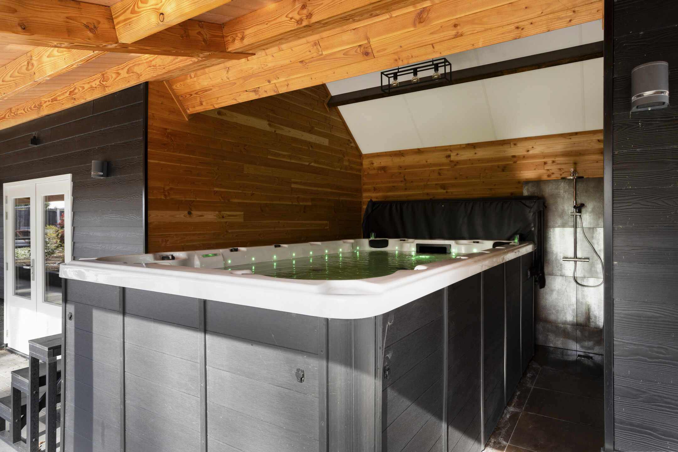 Zo is een kantoor / thuiswerkplek aanwezig, een open deel met luxe zwemspa welke achterblijft (vv. tegenstroming t.b.v. training of ontspanning), bargedeelte met bar, drankkoeling en separaat toilet, fitnessruimte met airconditioning en een (fietsen)berging met tussengroepenkast en bergzolder t.b.v. extra opslag. Mocht u toch een andere indeling of gebruik wensen is het bijgebouw uiteraard naar eigen visie in te delen.