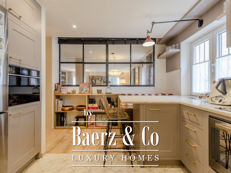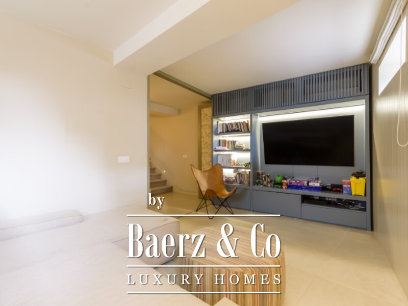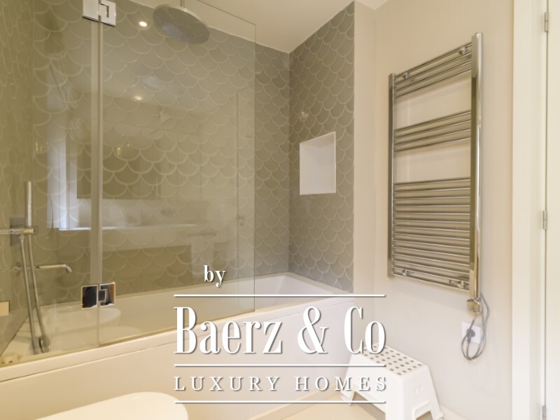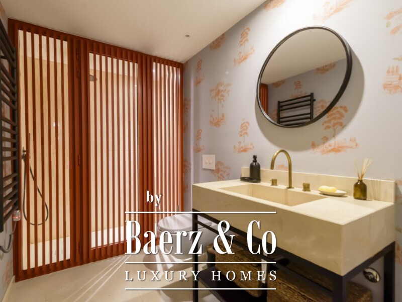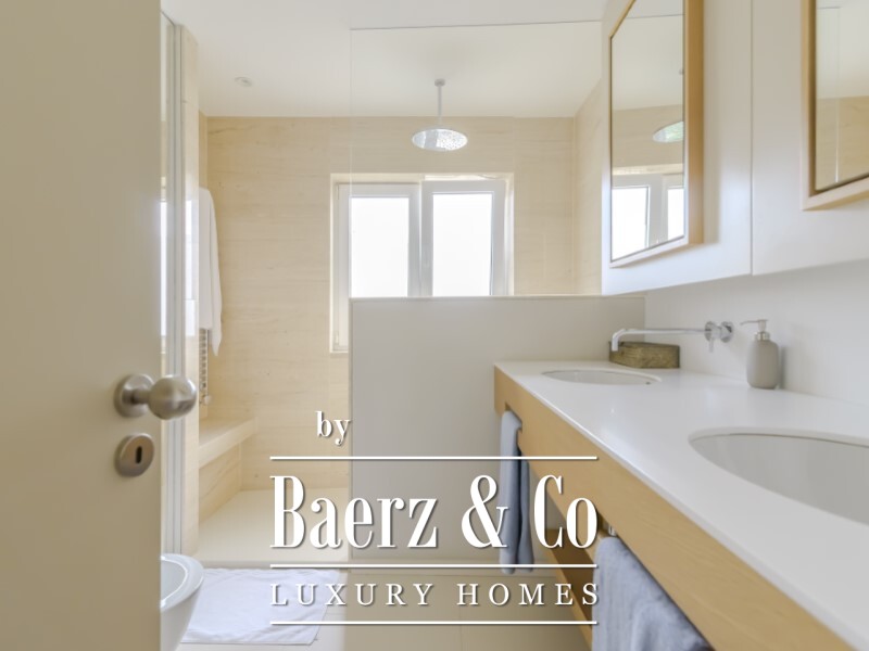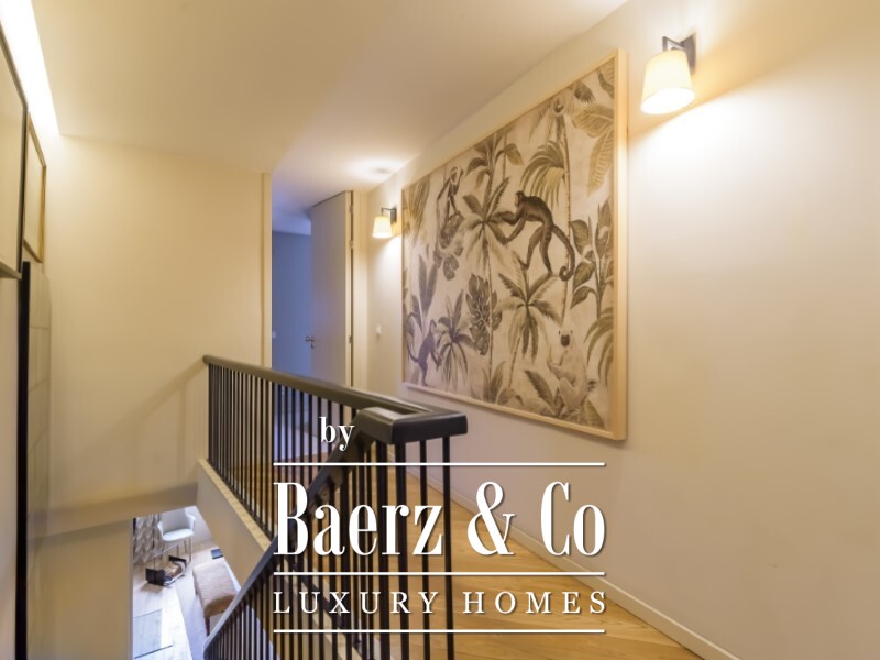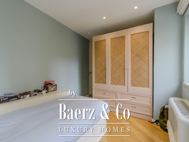 De slaapverdieping biedt een master suite van 22,1 m² met een eigen badkamer van 6,1 m², twee extra slaapkamers van 11,5 m² en 14,9 m², een tweede badkamer en een inloopkast. In het souterrain bevindt zich een lichte tv-kamer of werkkamer van 18 m², twee extra slaapkamers en nog een volledige badkamer. Volledige airconditioning en verfijnde Bosch-apparatuur tillen het dagelijkse comfort naar een hoger niveau.