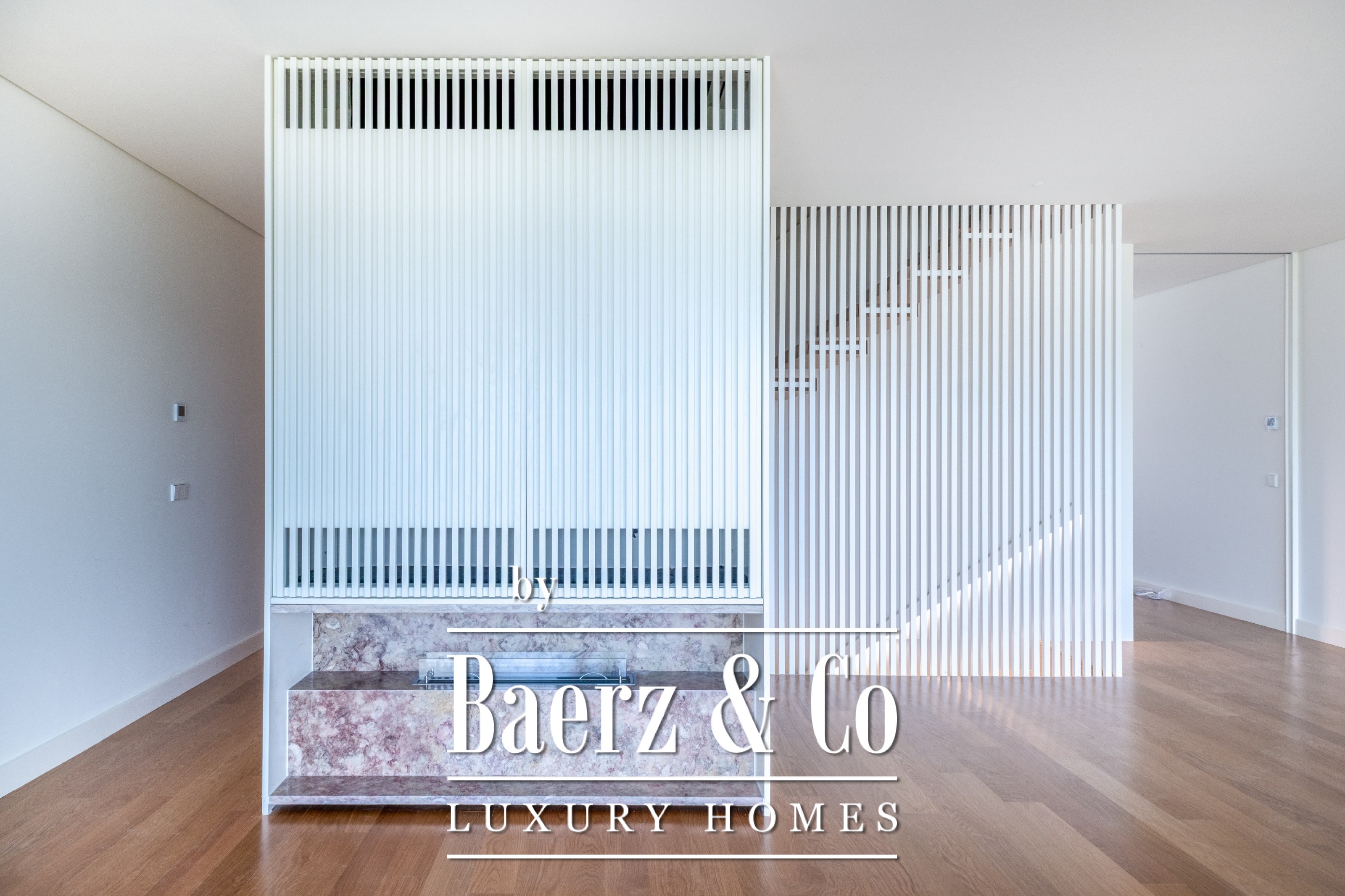 Deze villa in Alcântara, Lissabon, vormt een harmonisch evenwicht tussen architectonische helderheid en blijvende kunstzinnigheid. Met 287 m² aan binnenruimte, vier slaapkamers en vier badkamers, verenigt deze woning functionaliteit met tijdloze esthetiek, geïnspireerd op Piet Mondriaan. Elk detail, van de geometrische vormen tot subtiele kleuraccenten, is zorgvuldig overwogen, wat resulteert in een thuis dat rust en verfijning uitstraalt. Bijna 49 m² aan balkonruimte en een besloten tuin van 61 m² nodigen uit tot moeiteloze overgangen van dag naar nacht, verzacht door het natuurlijke licht van Lissabon. Drie beveiligde parkeerplaatsen, een lift, airconditioning en een open haard bieden comfortabel woongenot zonder overdaad.