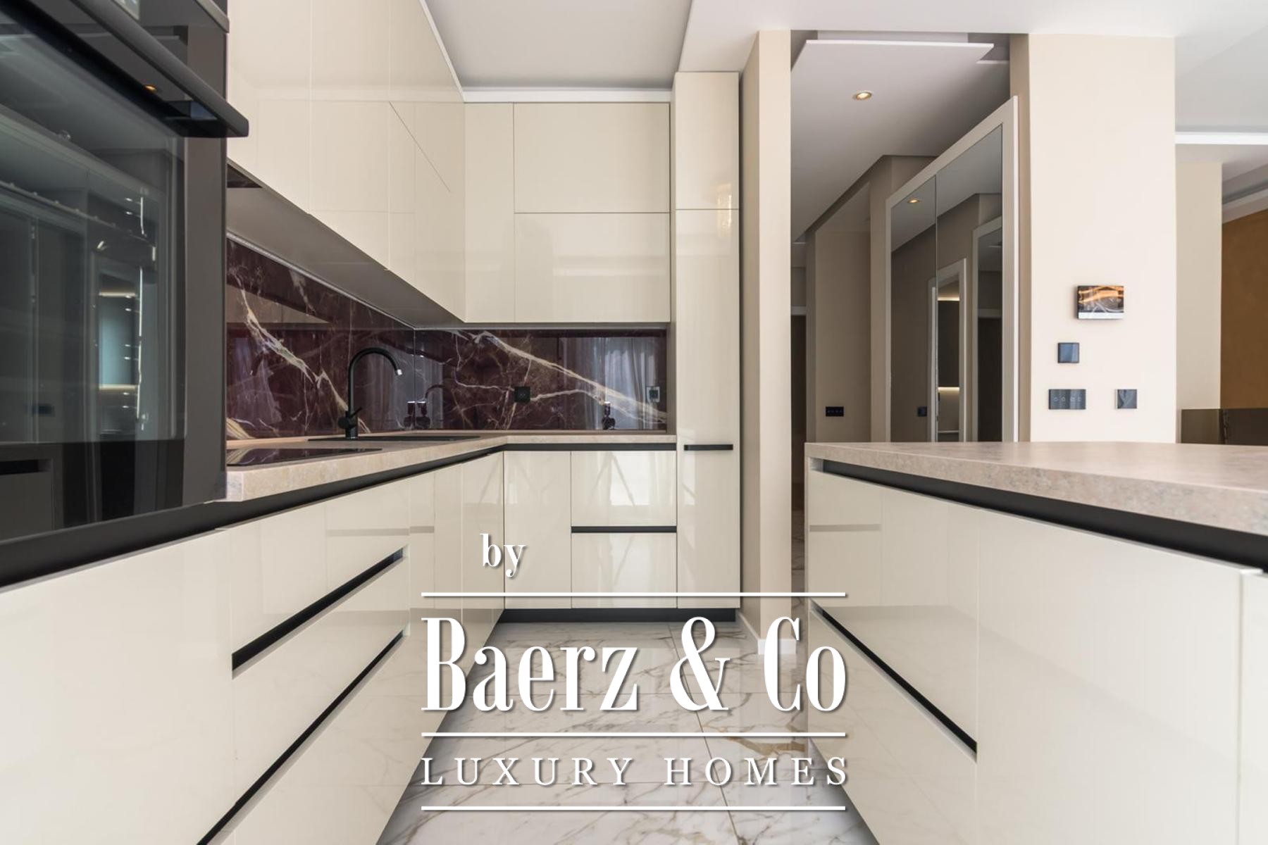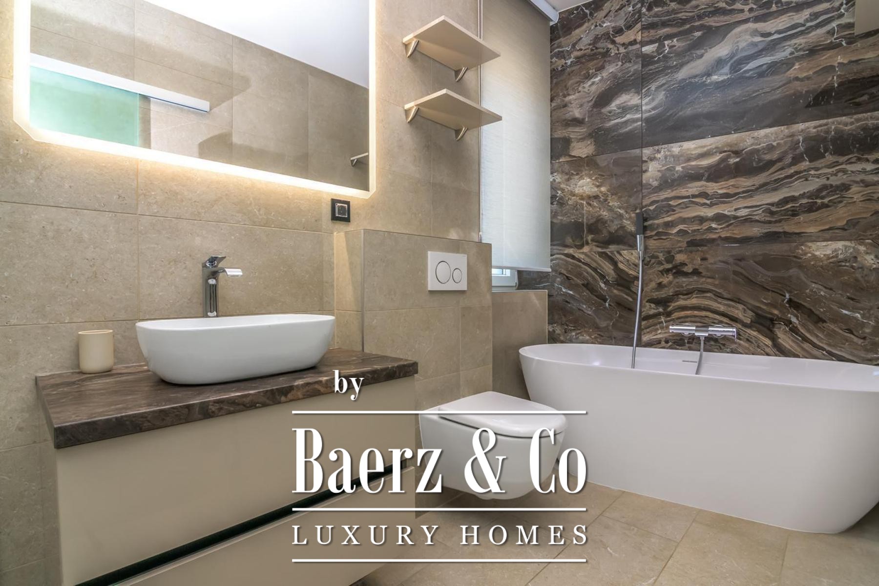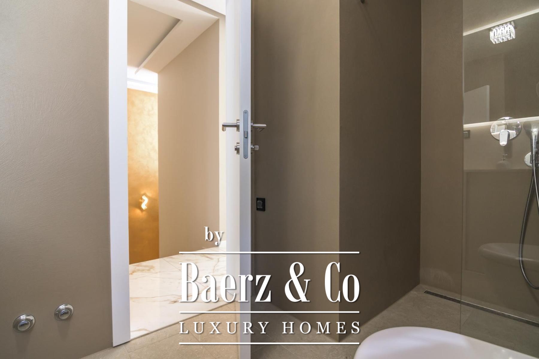 De indeling bestaat uit drie afzonderlijke slaapkamers, een aparte werkkamer en twee badkamers en is tot in detail ontworpen voor modern comfort. Hoogwaardige voorzieningen zijn onder meer vloerverwarming in het gehele appartement, volledige airconditioning per ruimte en maatwerk ingebouwde meubels voor zowel functionaliteit als een helder lijnenspel. Aan bergruimte is gedacht met een aparte kamer en er zijn twee parkeerplaatsen—één overdekt, één onoverdekt—voor extra gemak.