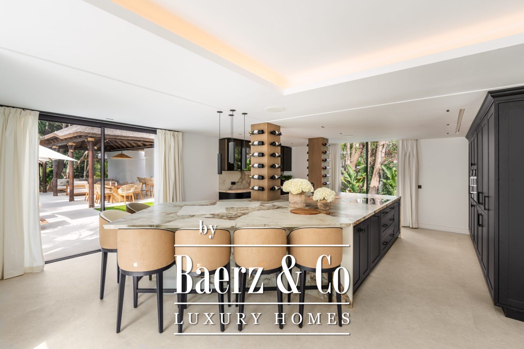 Drie afzonderlijke tv-kamers bieden flexibiliteit voor gezelschap of juist privacy. Buiten creëert de weelderige tuin een besloten toevluchtsoord voor dineren in de open lucht, zonnebaden of serene pauzes onder de mediterrane hemel. De nabijheid van gerenommeerde golfbanen, lokale voorzieningen, het strand en het weidse uitzicht op golf en bergen maken deze villa tot een perfect toevluchtsoord voor wie tijdloos comfort, privacy en een verfijnde levensstijl in Marbella zoekt.