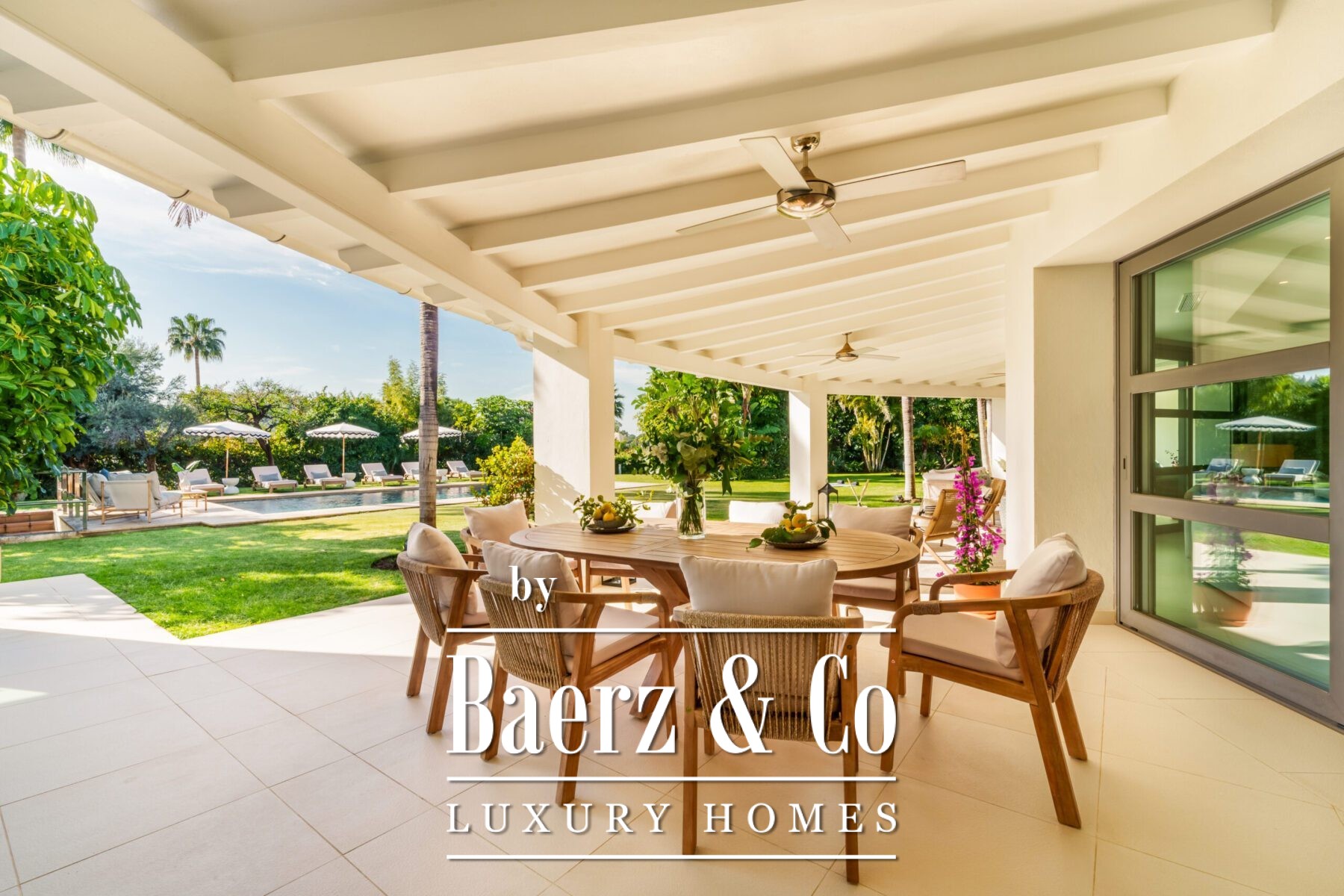 This exclusive luxury bungalow enjoys a magnificent south-facing garden, giving it privileged solar exposure and partial golf views. Its last major refurbishment took place in 2013, with the construction by the Bonifacio Solis construction company. In 2024, the villa has been carefully maintained, renovated and decorated.