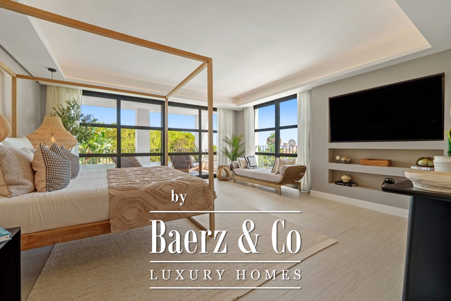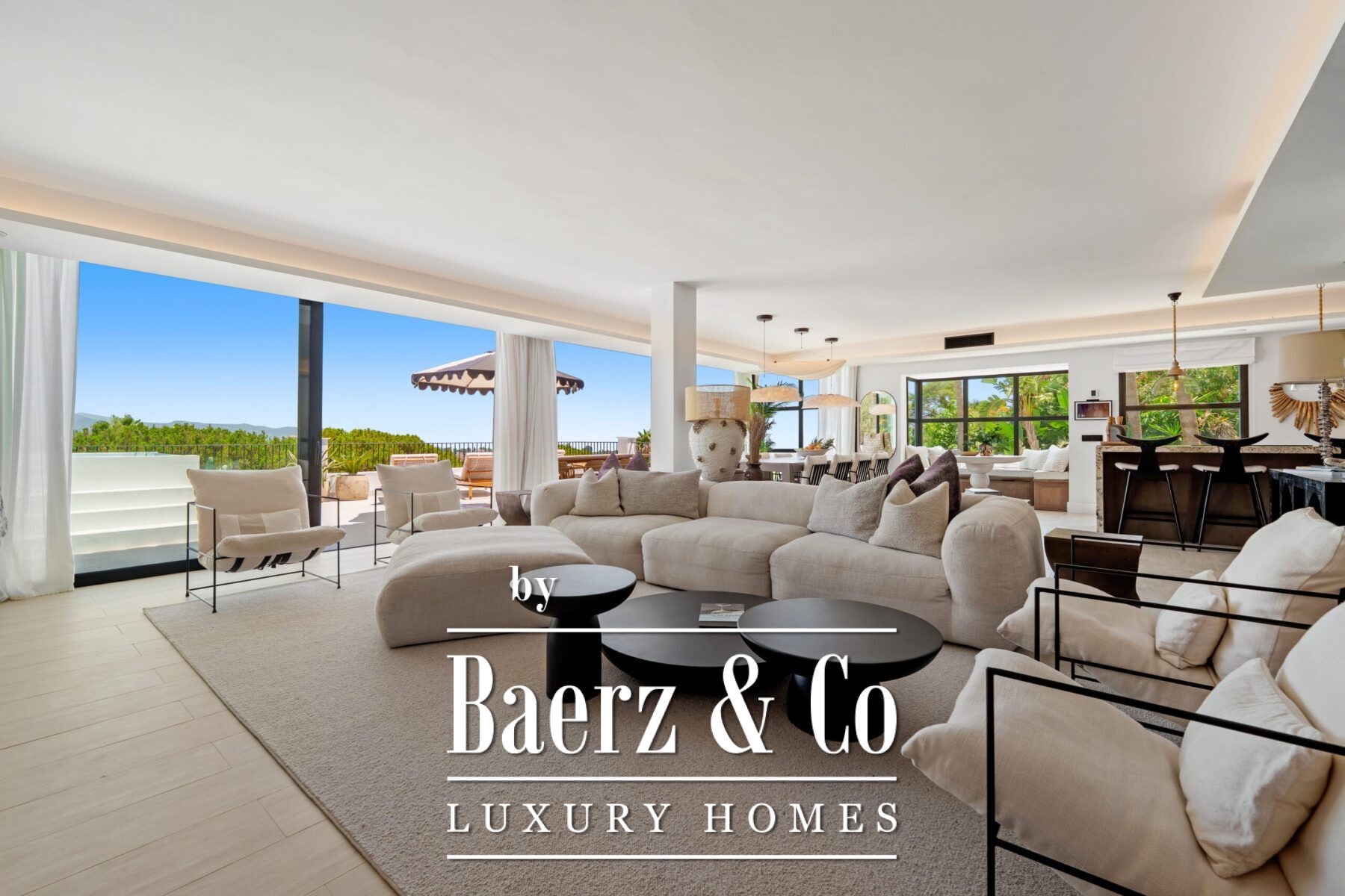 The property offers six luxurious bedrooms and seven impeccably designed bathrooms, each crafted with the highest-quality materials and finishes. Expansive open-plan living areas flow effortlessly onto sun-drenched terraces, creating a seamless connection between indoors and out. A state-of-the-art gourmet kitchen, flooded with natural light, serves as the perfect hub for both intimate family meals and grand entertaining.