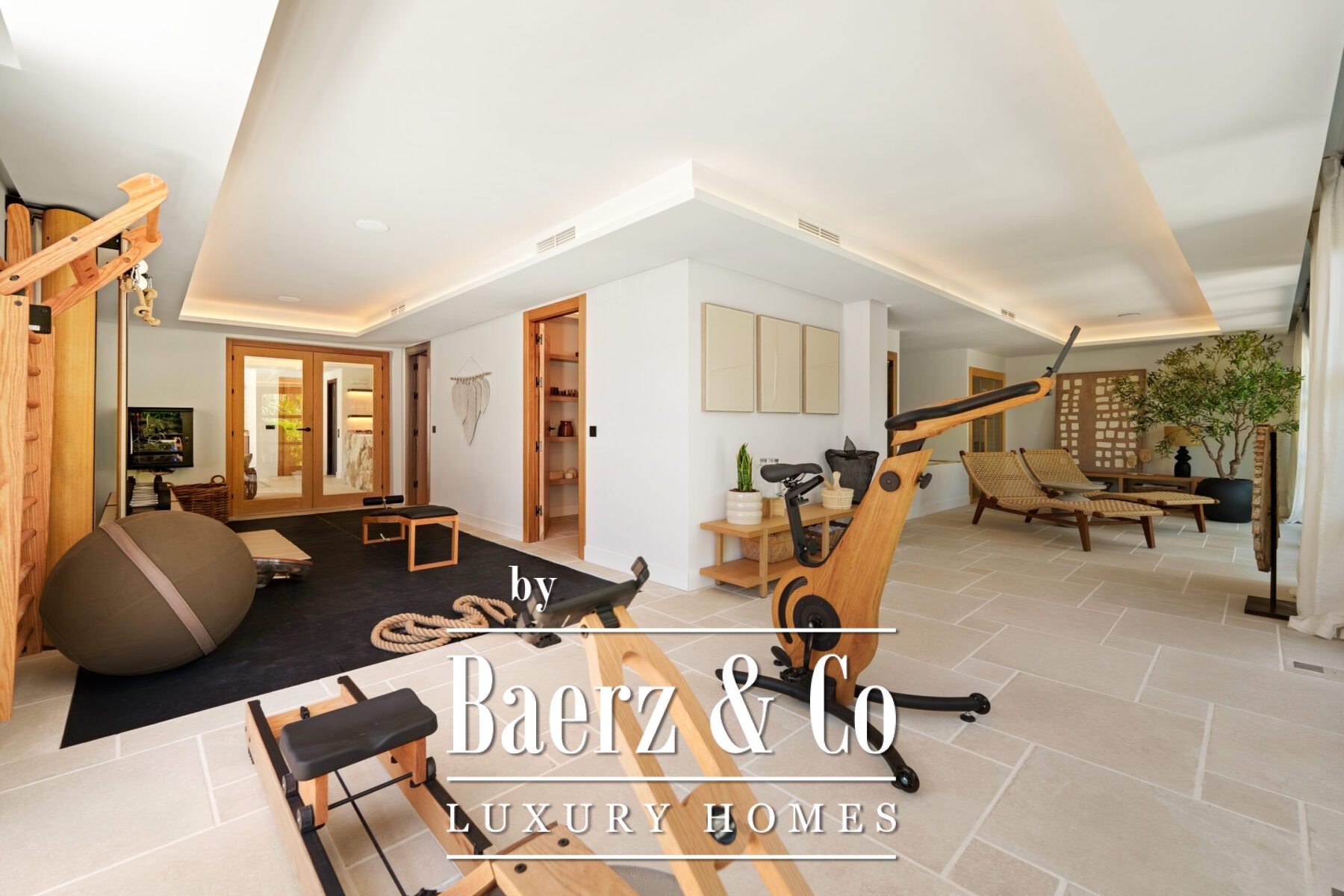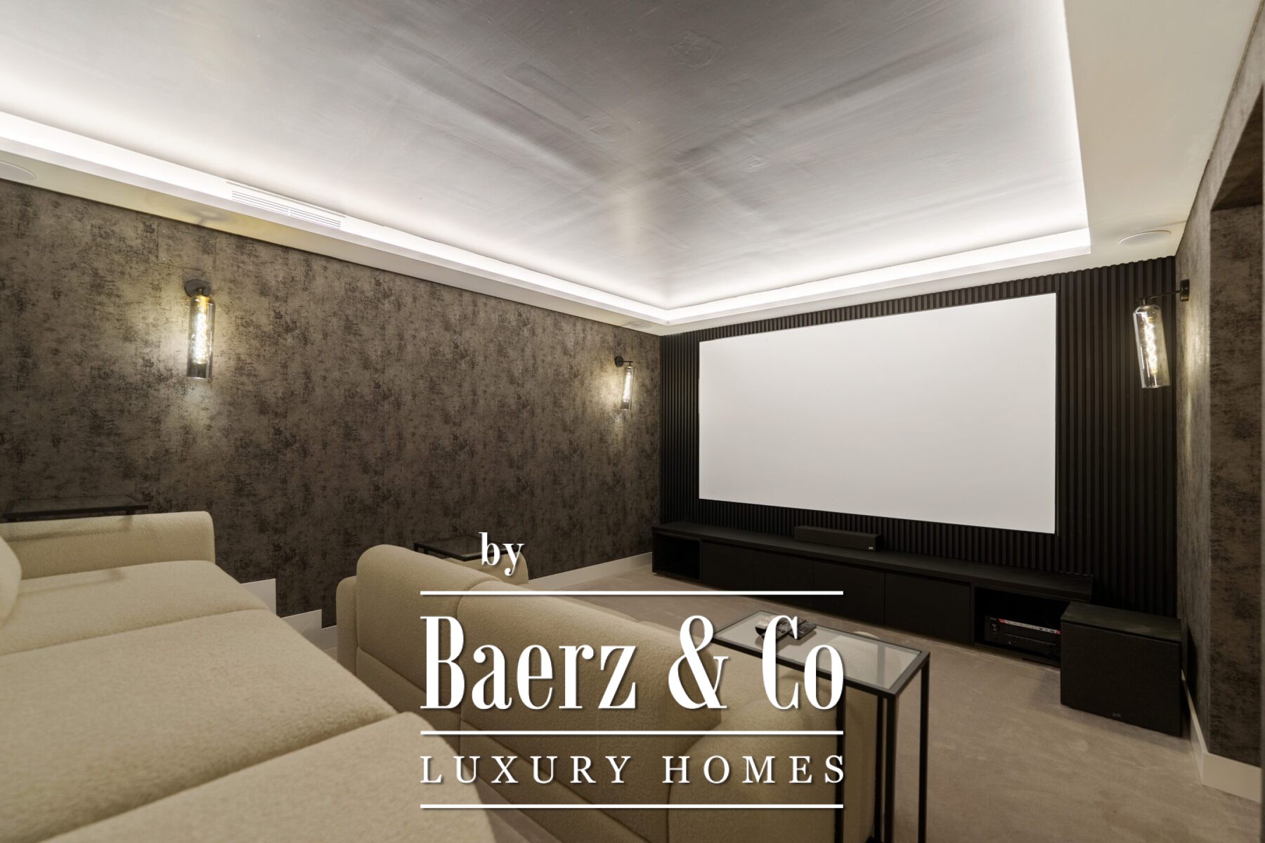 The villa is designed for a lifestyle of wellness, leisure, and indulgence. A private home gym allows for daily workouts without leaving the comfort of home, while the exclusive wine bodega provides the perfect space to showcase and enjoy a curated collection. For entertainment, the villa boasts a home cinema and an additional leisure room, ideal for hosting gatherings with family and friends.