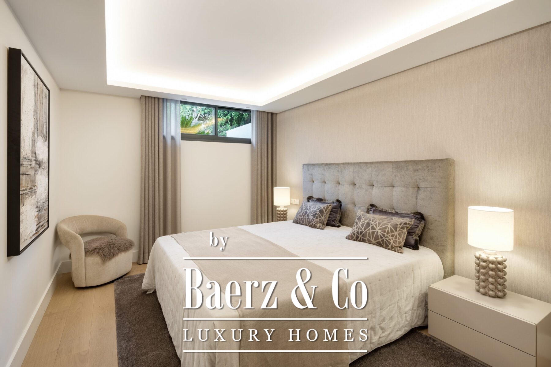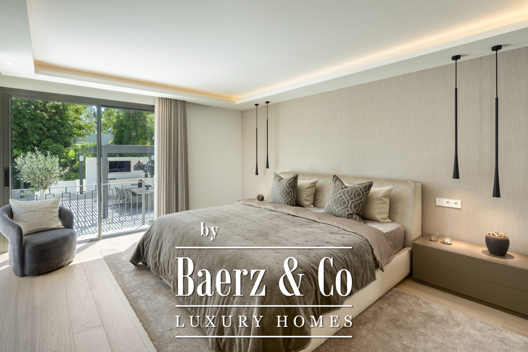 The property prioritizes convenience and security alongside luxury. Positioned strategically in Nueva Andalucia, the villa is just a five-minute drive from local shops, a ten-minute drive from schools, and seven minutes from the beach. Features like double glazing, covered parking for two cars, and ample storage space in the basement add to the property’s practicality. The villa is fully furnished in a modern, elegant style, each space inviting comfort and leisure. Top-notch security systems, including alarms and electric blinds, enhance the property’s safety, ensuring residents can indulge in their serene surroundings with peace of mind.