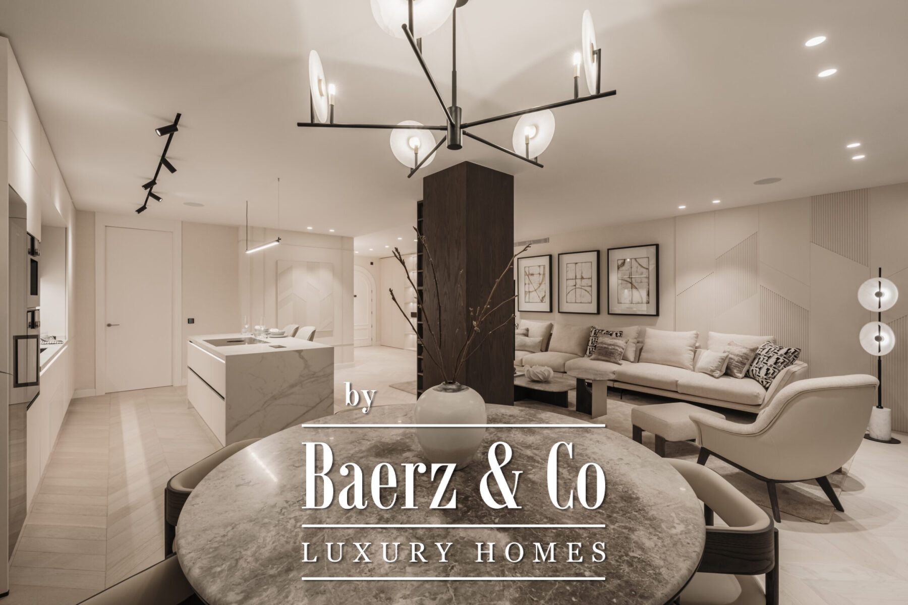 Binnen deze beveiligde, afgesloten residentie met 24-uurs bewaking valt de woning met vier slaapkamers en vier-en-een-halve badkamer op dankzij verfijnde details. Vloer-tot-plafondramen verlichten de royale woon- en eetruimte, die naadloos overgaat in een ruim terras voor ontspannen uurtjes of stijlvolle ontvangsten onder de Marbellaanse hemel. De keuken is uitgerust met Gaggenau apparatuur, afgewerkt met natuur eiken vloeren en een intuïtief smart home-systeem, wat discreet comfort en luxe benadrukt.