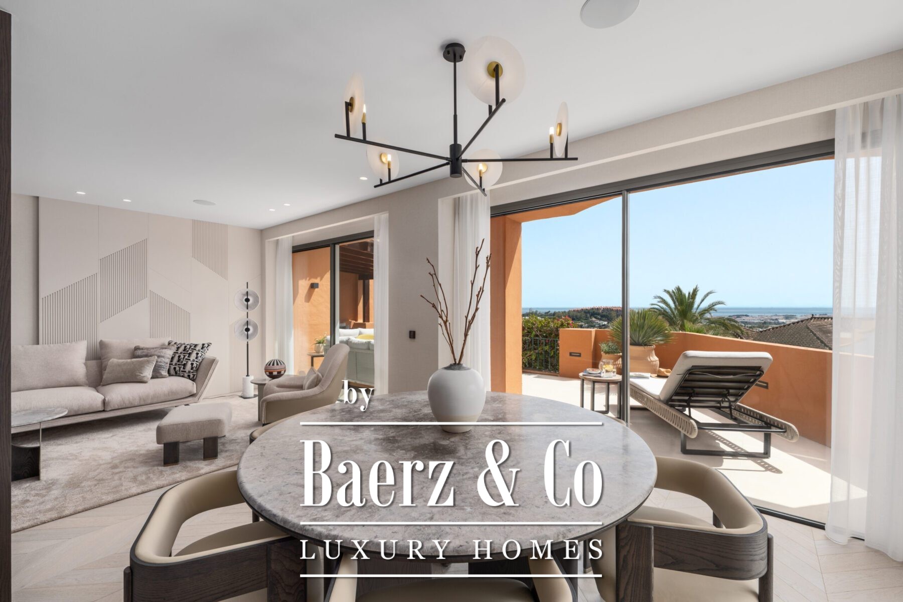 Apartment Marbella biedt een zeldzaam uitzicht over de prestigieuze straten van La Cerquilla, Nueva Andalucía. Deze volledig gerenoveerde begane grondwoning omvat 215 m² en biedt panoramisch uitzicht op de Middellandse Zee, de bergen en befaamde golfbanen, waardoor een harmonieuze verbinding ontstaat tussen verfijnd interieurdesign en het omringende landschap.