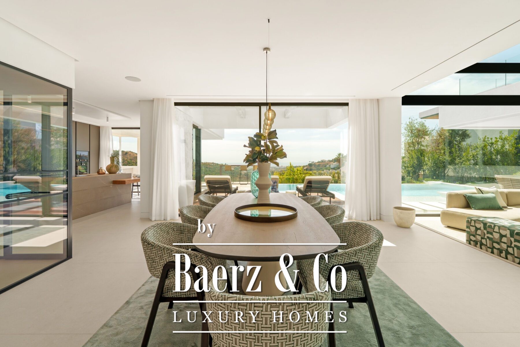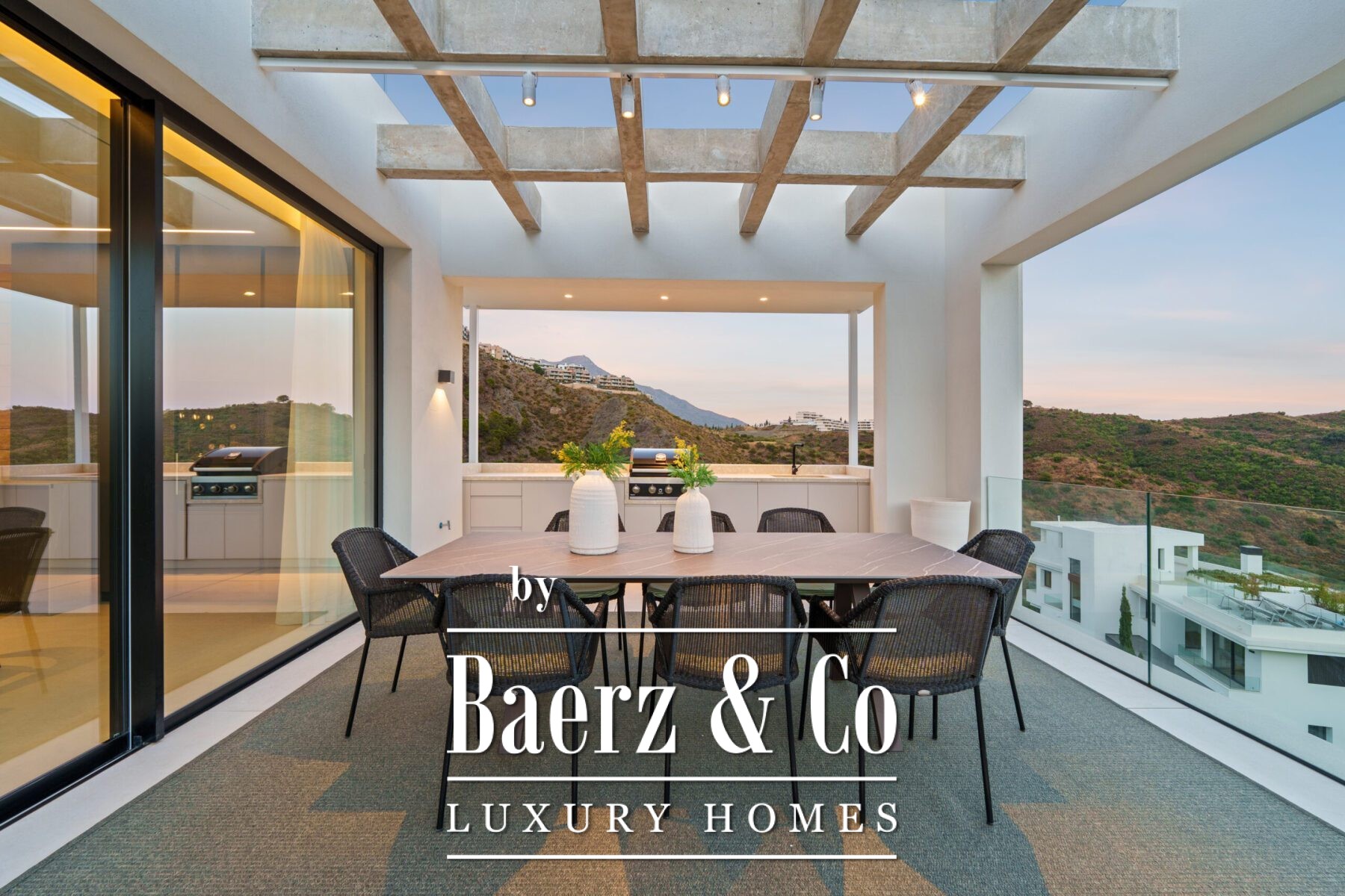 Buiten zorgen de aangelegde tuinen, het privé infinity zwembad en weidse uitzichten over de vallei voor een sfeer van exclusieve rust, terwijl de nabijheid van golf, voorzieningen en de kustlijn optimale connectiviteit garanderen. Deze luxe villa te koop in Marbella vertegenwoordigt een compleet modern woonconcept binnen een van de meest gewaardeerde gated communities van de regio.