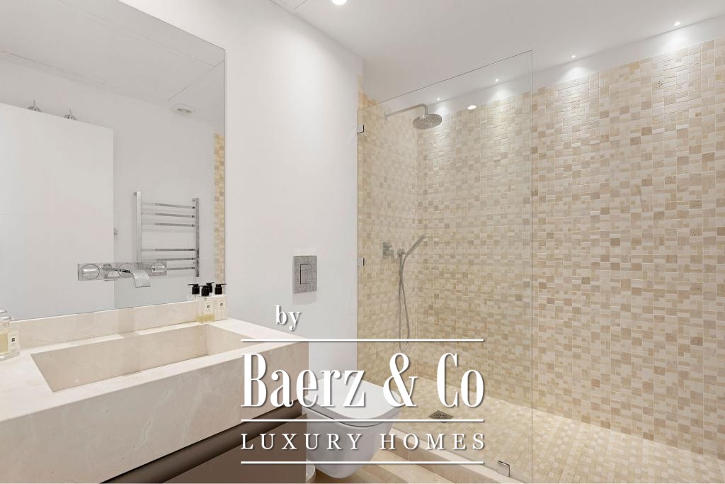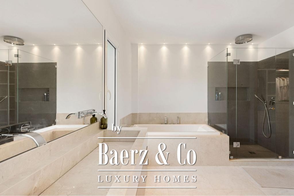 De hoofdverdieping kenmerkt zich door een open ontwerp met een high-end keuken voorzien van premium Gaggenau-apparatuur, een riante woonkamer en een stijlvolle eetruimte. Hoogwaardige houten vloeren, elektrische rolluiken, een geavanceerd alarmsysteem en een lift onderstrepen het samenspel van elegantie en functionaliteit. Twee ondergrondse parkeerplaatsen en twee bergingen verhogen het dagelijkse gemak.