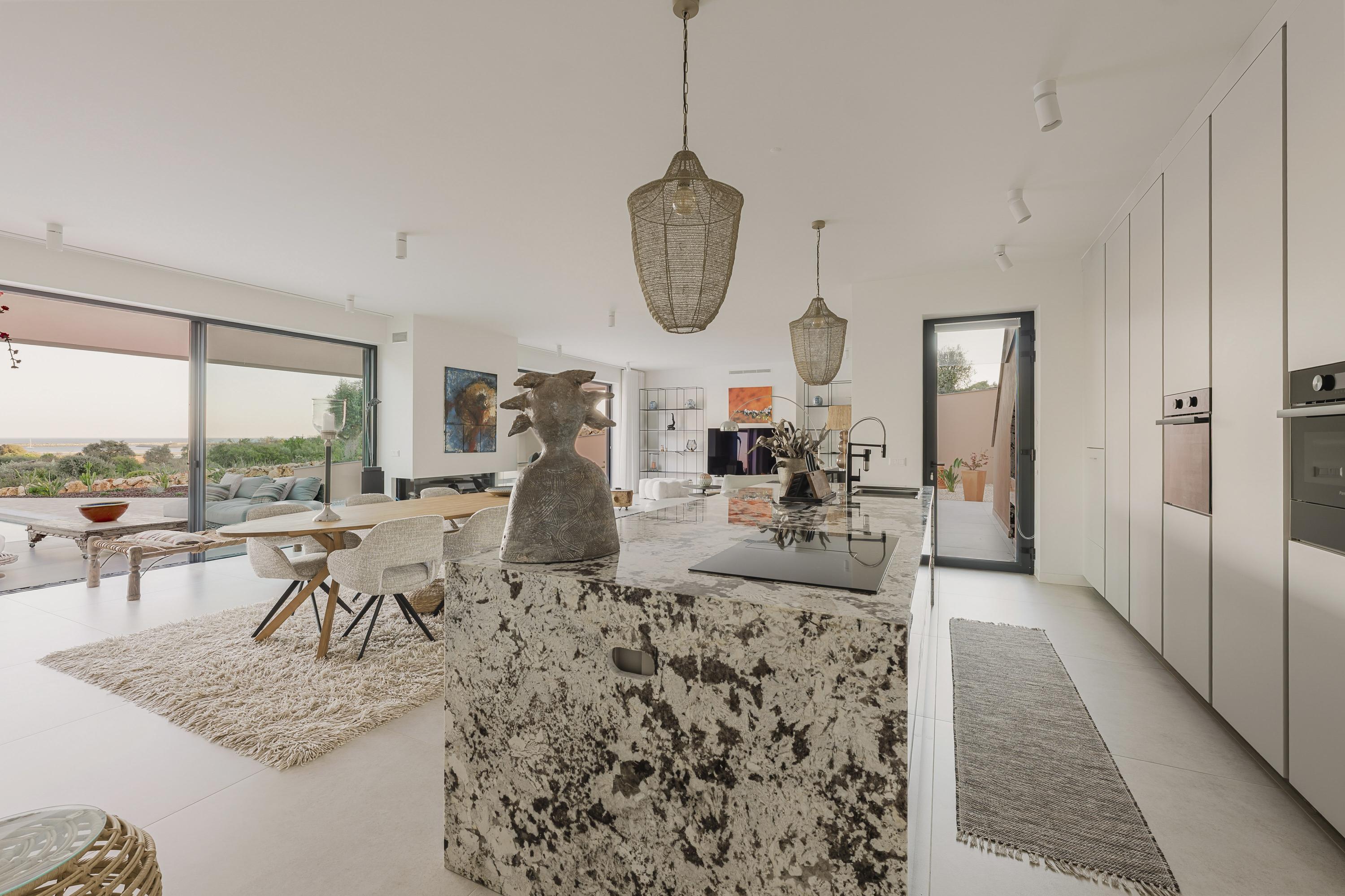 Met vier verfijnde suites, elk met een eigen en-suite badkamer – waarvan twee zelfstandige gastenverblijven – vier Italiaans ontworpen keukens, een verwarmd zoutwaterzwembad, buitendouche, nieuw aangelegde mediterrane tuinen en twee rooftop-terrassen, behoort deze woning tot de meest aansprekende hedendaagse villa’s van de Algarve: een zeldzame combinatie van design, locatie en levensstijl.