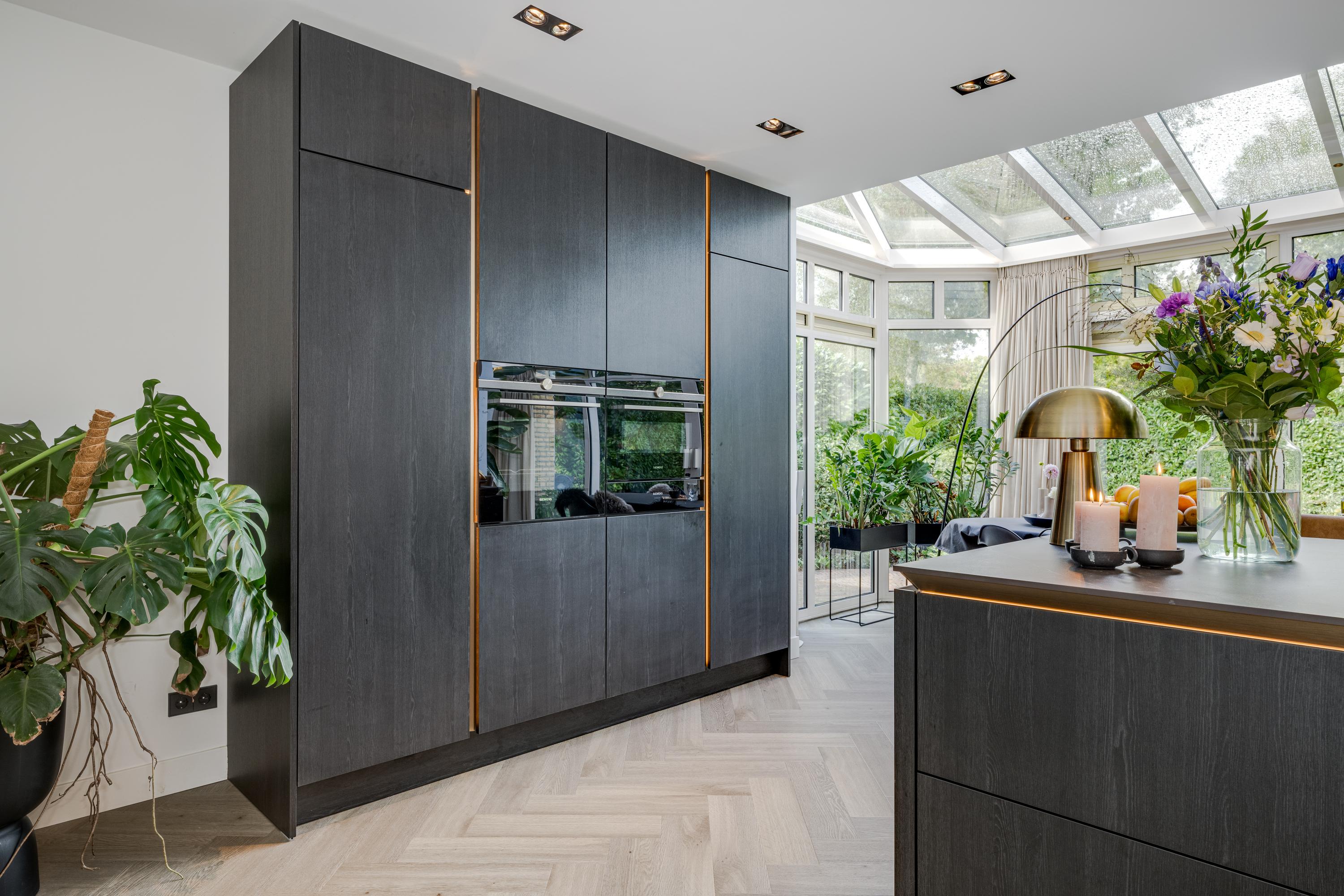 Entree met ruime hal en stijlvol modern toilet. Aan de ene zijde bevindt zich de sfeervolle bibliotheek/TV-kamer met ingebouwde boekenkasten en audiomeubel. Via dubbele deuren stapt u binnen in de riante woonkamer en royale leefkeuken (samen ruim 70 m²). De woonkamer is voorzien van een nieuwe vloer met vloerverwarming en een nieuwe hoogrendements haard, heerlijk voor knusse winteravonden. De luxe leefkeuken vormt met een groot kookeiland het hart van het huis. Alle denkbare inbouwapparatuur is aanwezig, ideaal voor culinaire liefhebbers. De gezellige bar geïntegreerd in het kookeiland is ideaal voor een snel ontbijt, een goed glas wijn terwijl uw partner staat te koken of gezellige borrelavonden met vrienden. De keuken staat in verbinding met de bijkeuken met extra aanrecht, aansluitingen voor wasmachine en droger (mogelijkheid voor plaatsen van een extra vaatwasser) en toegang tot een grote geïsoleerde bergzolder.