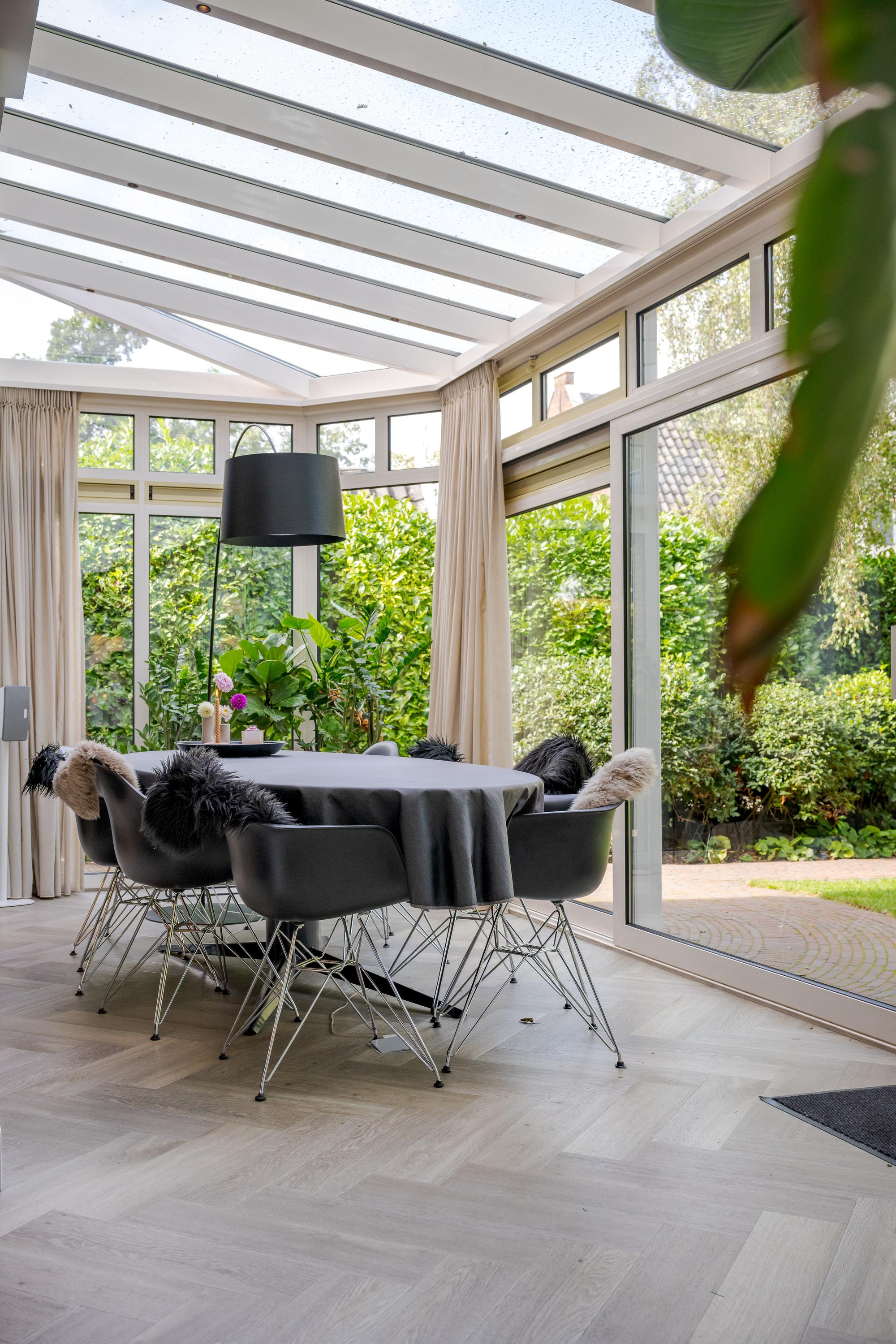 Daarnaast beschikt de woning over een ruime oprit met plaats voor meerdere auto’s, een oplaadpunt, een zonnige voortuin (ca. 100 m²) met beschut terras op het zuiden én een fraai aangelegde achtertuin (ruim 200 m²) op het westen en noorden, voorzien van meerdere terrassen en een irrigatiesysteem.