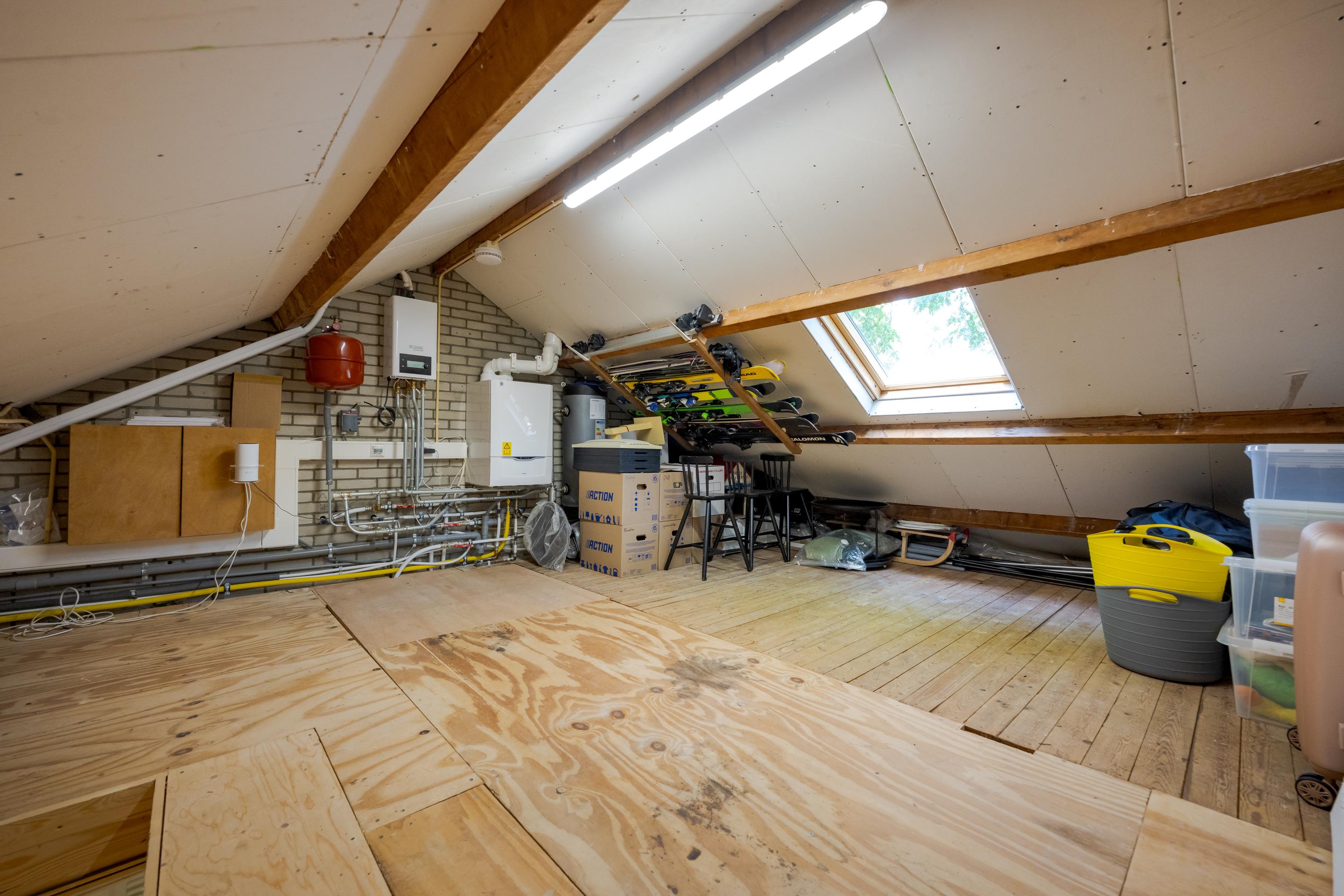 Ruime overloop met Veluxraam en bergkast (voorzieningen aangelegd voor creëren extra badkamer), plus twee goed bemeten slaapkamers met dakkapel en veel bergruimte achter de knieschotten. Ook deze kamers zijn voorzien van airconditioning.
