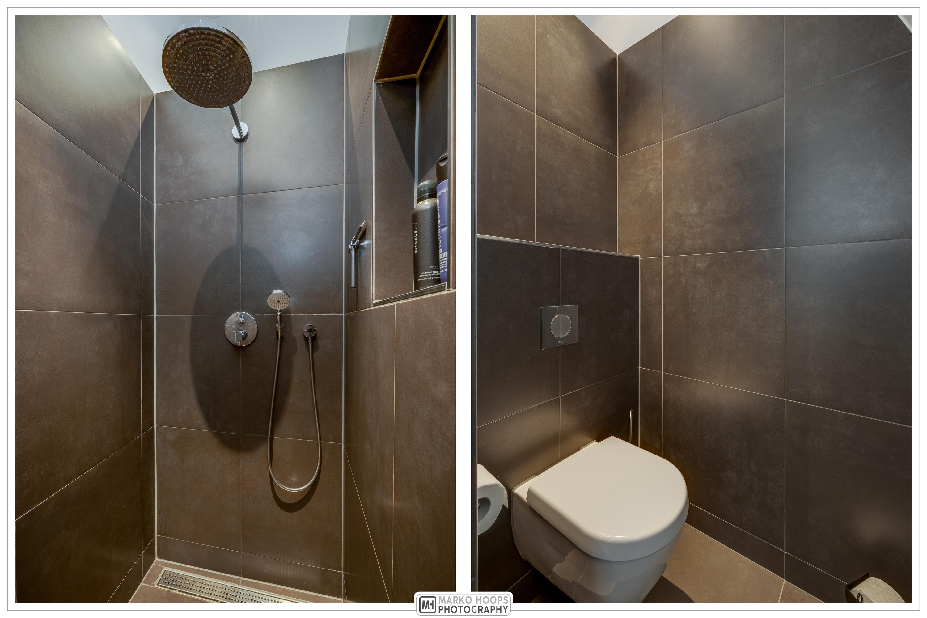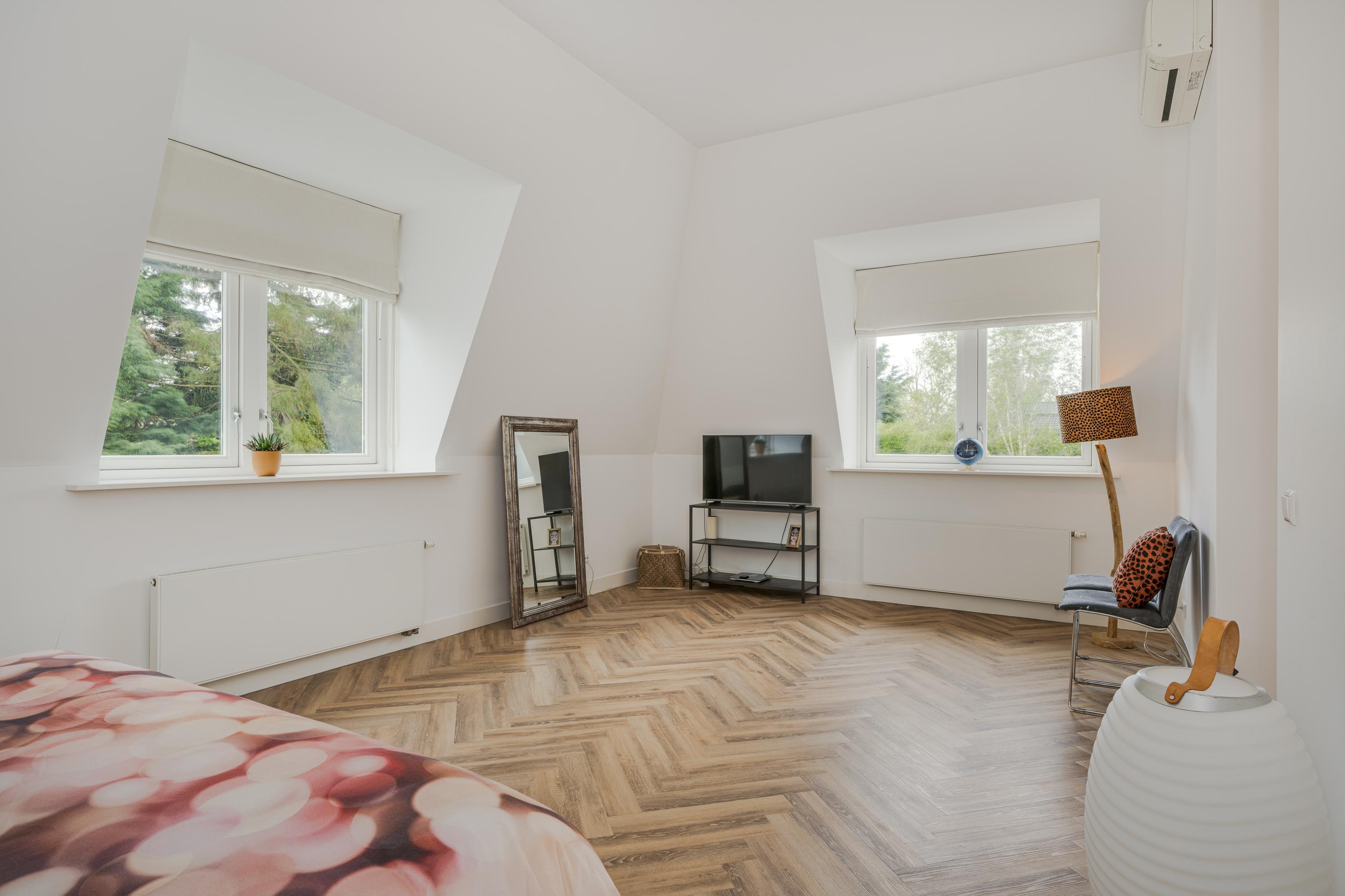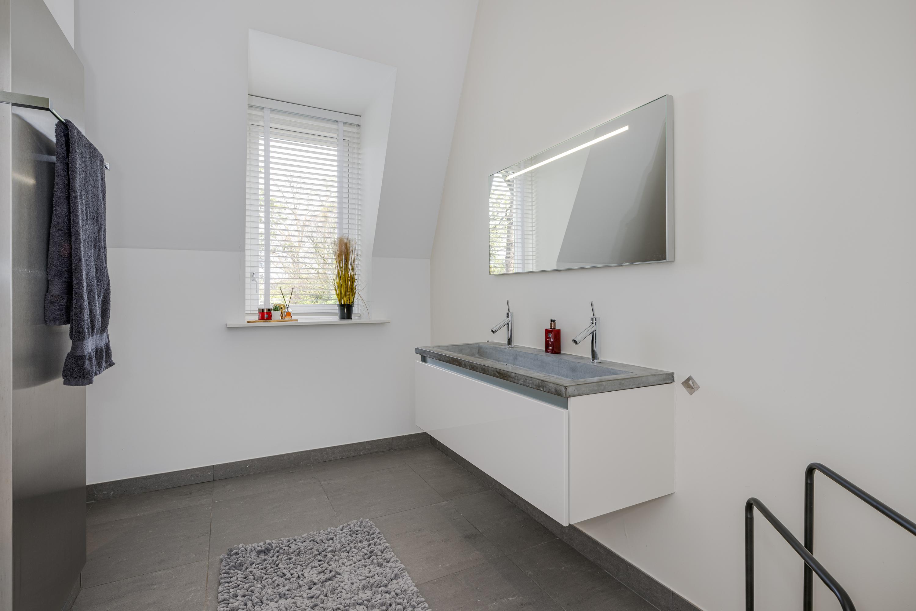 De master bedroom is voorzien van airconditioning en heeft een eigen zithoek, kleedkamer en luxe uitgevoerde badkamer met vrijstaand ligbad, dubbele wastafel, toilet, grote inloopdouche met regen- en handdouche en design handdoek radiator. Beide badkamers en de gang zijn voorzien van vloerverwarming.