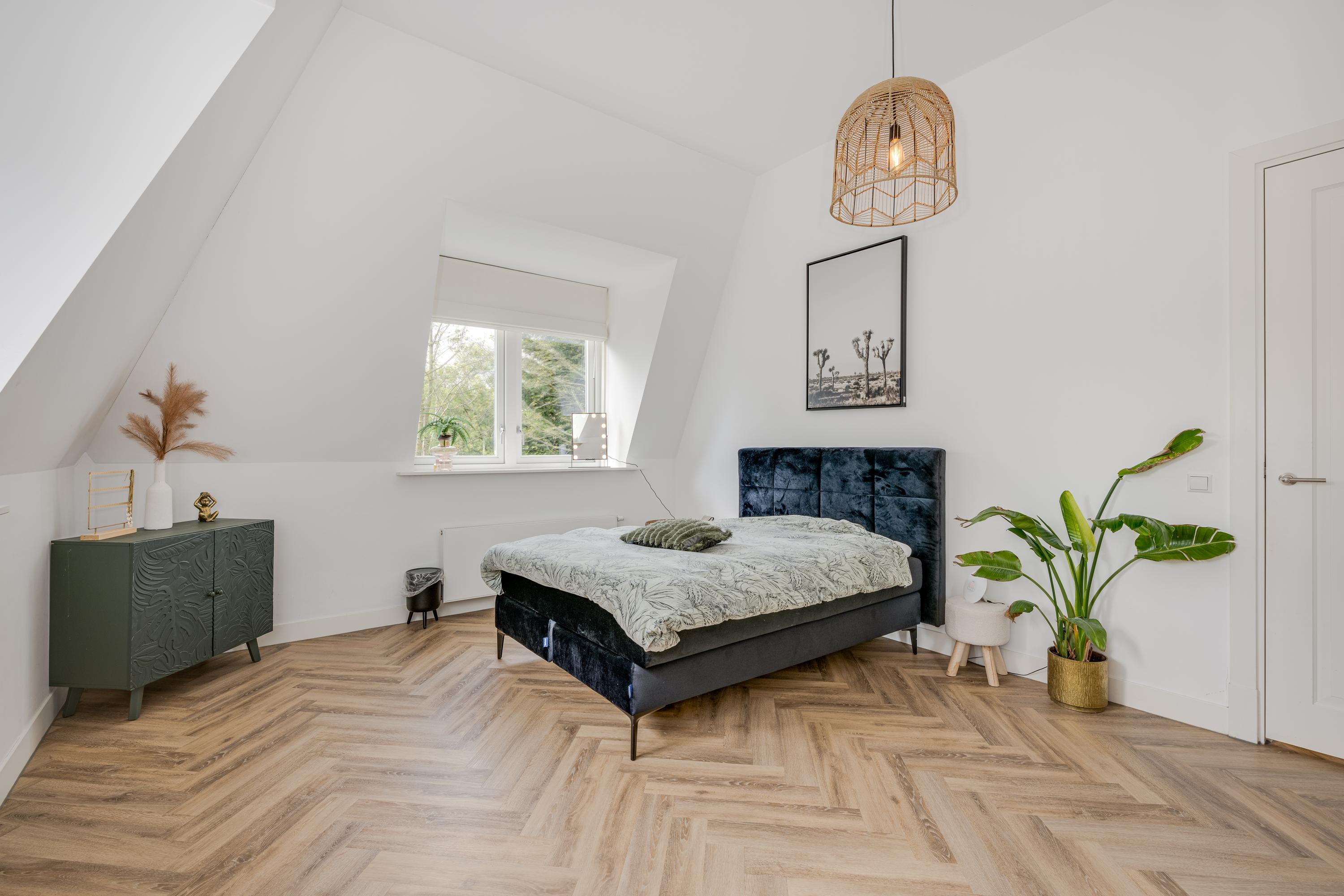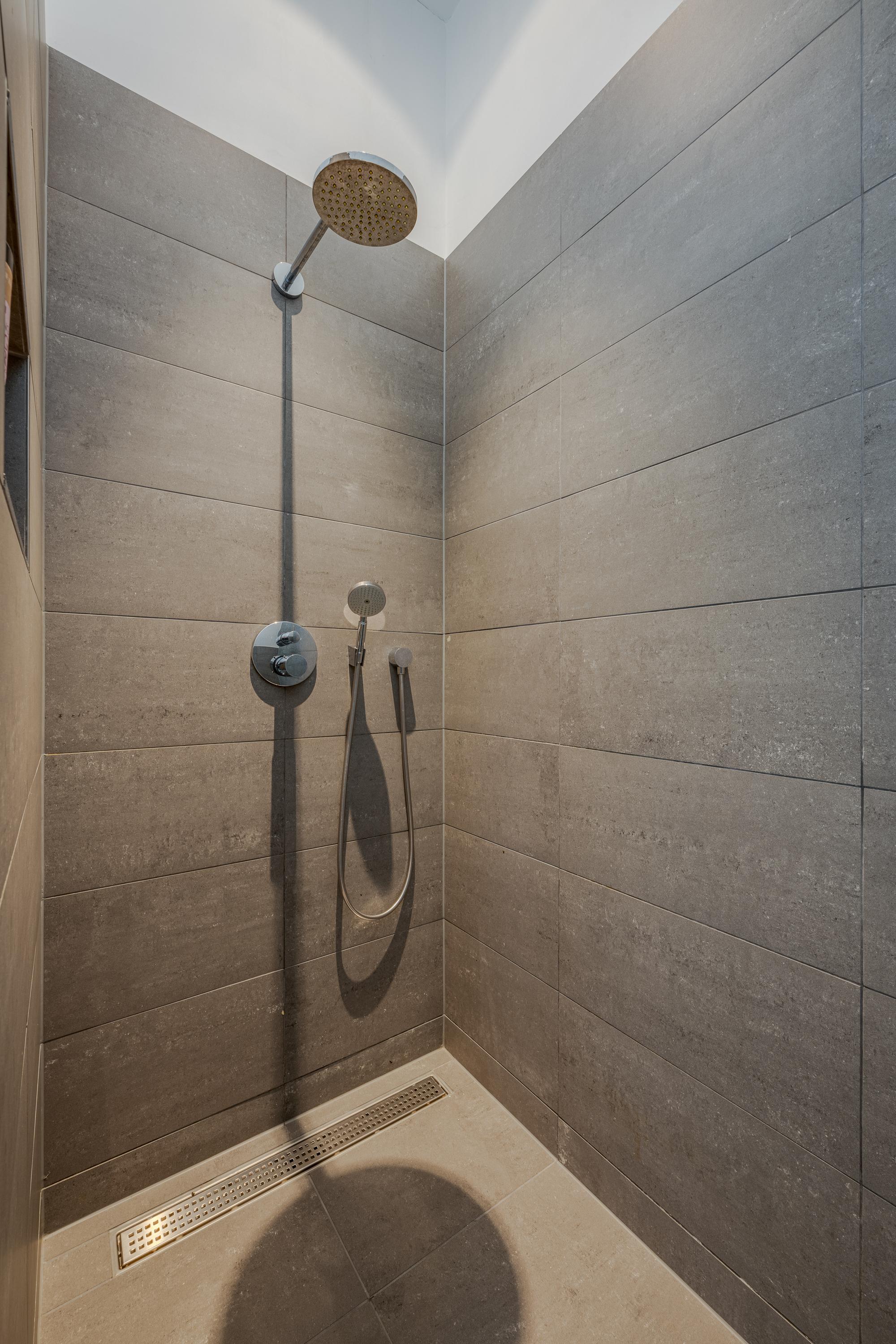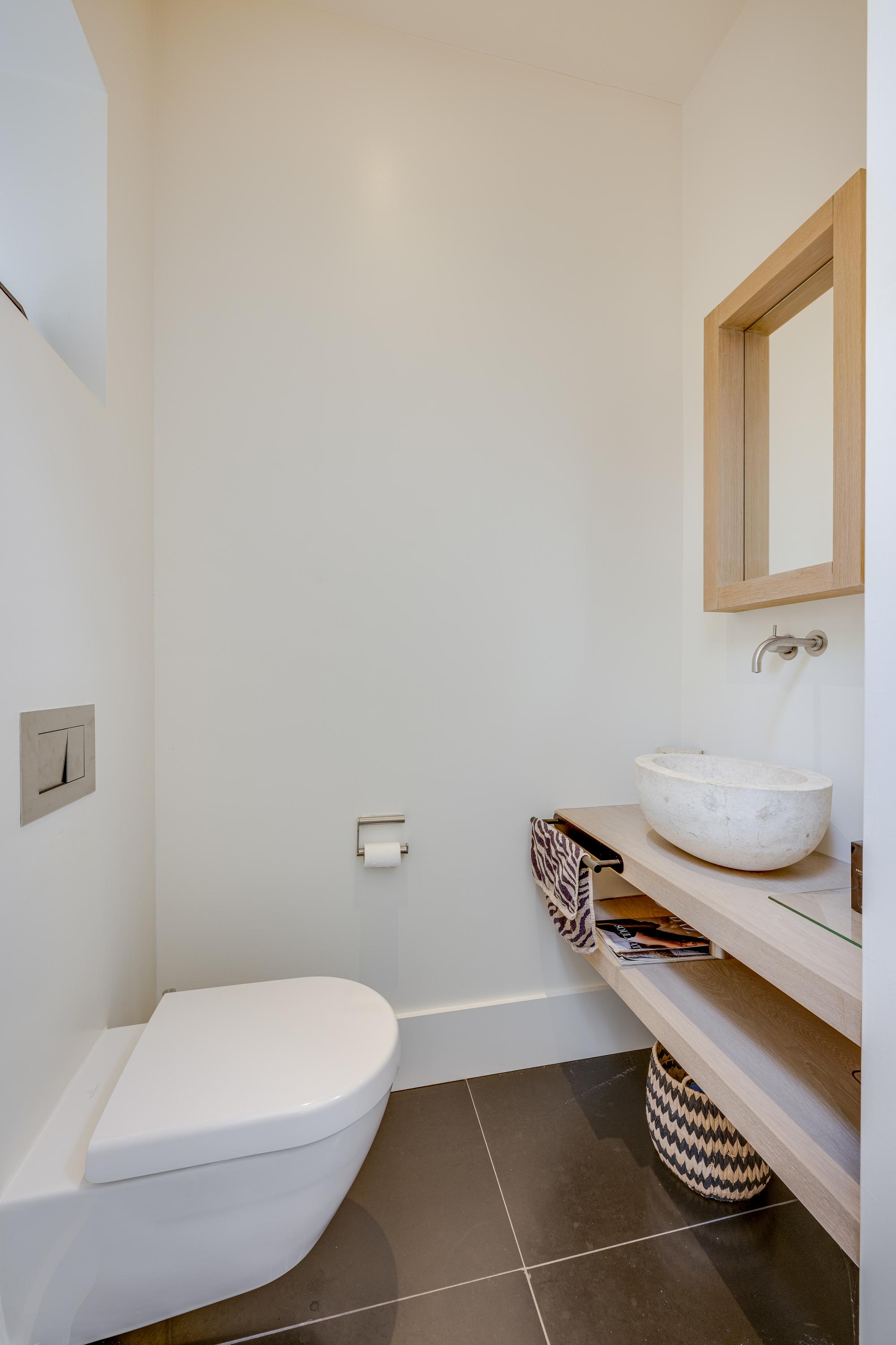 De master bedroom is voorzien van airconditioning en heeft een eigen zithoek, kleedkamer en luxe uitgevoerde badkamer met vrijstaand ligbad, dubbele wastafel, toilet, grote inloopdouche met regen- en handdouche en design handdoek radiator. Beide badkamers en de gang zijn voorzien van vloerverwarming.