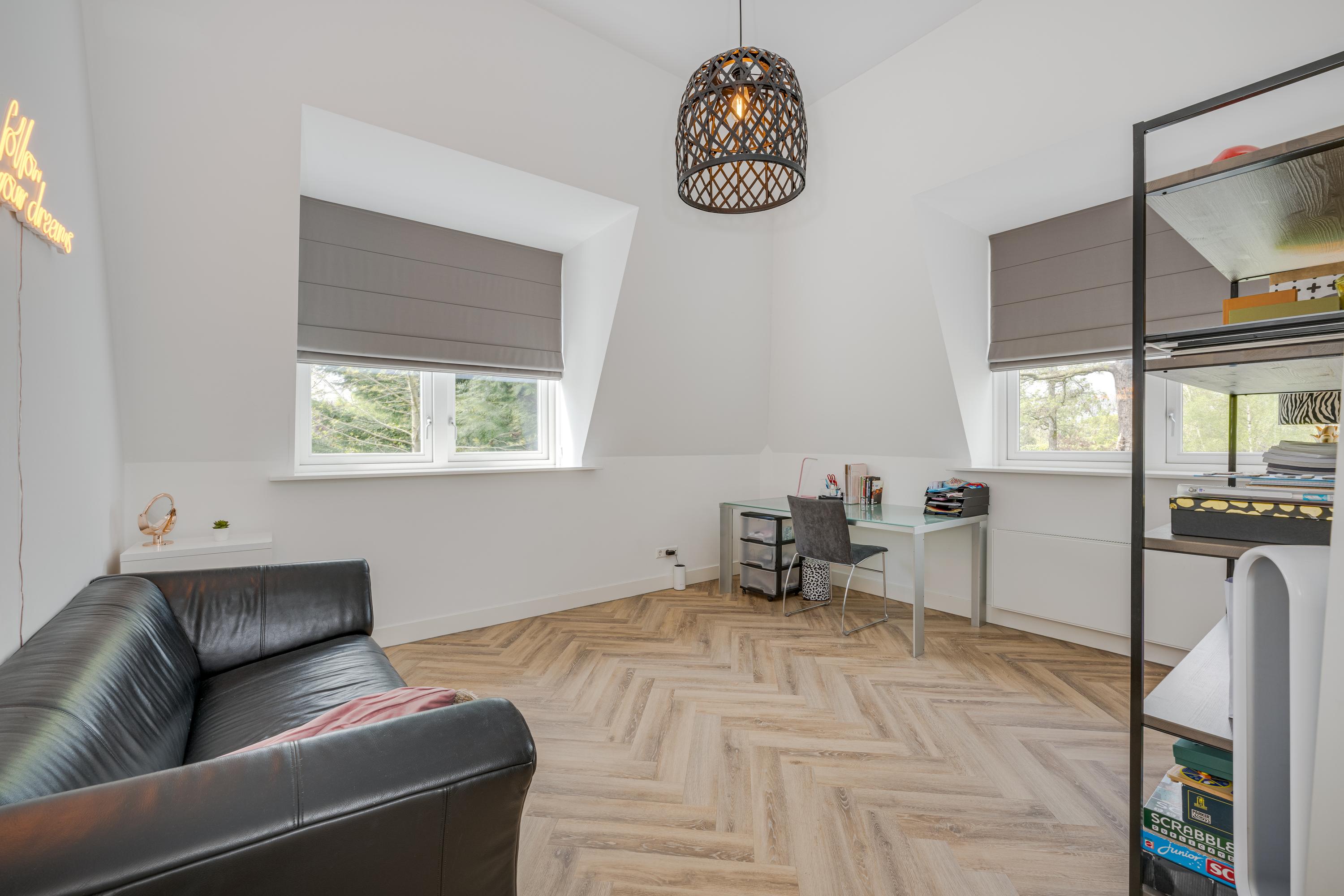 Via de fraaie trap bereikt u de overloop met prachtig hoge deuren die toegang geven tot de diverse vertrekken. Achter deze deuren bevinden zich in totaal vier grote slaapkamers, twee badkamers, de technische ruimte en een ruimte voor de was- en droogopstelling. Van de vier slaapkamers zijn er drie in gebruik als kinderkamer met een gedeelde badkamer voorzien van een dubbele wastafel en een inloopdouche met regen- en handdouche. Tevens bevindt zich op de overloop een separaat toilet.