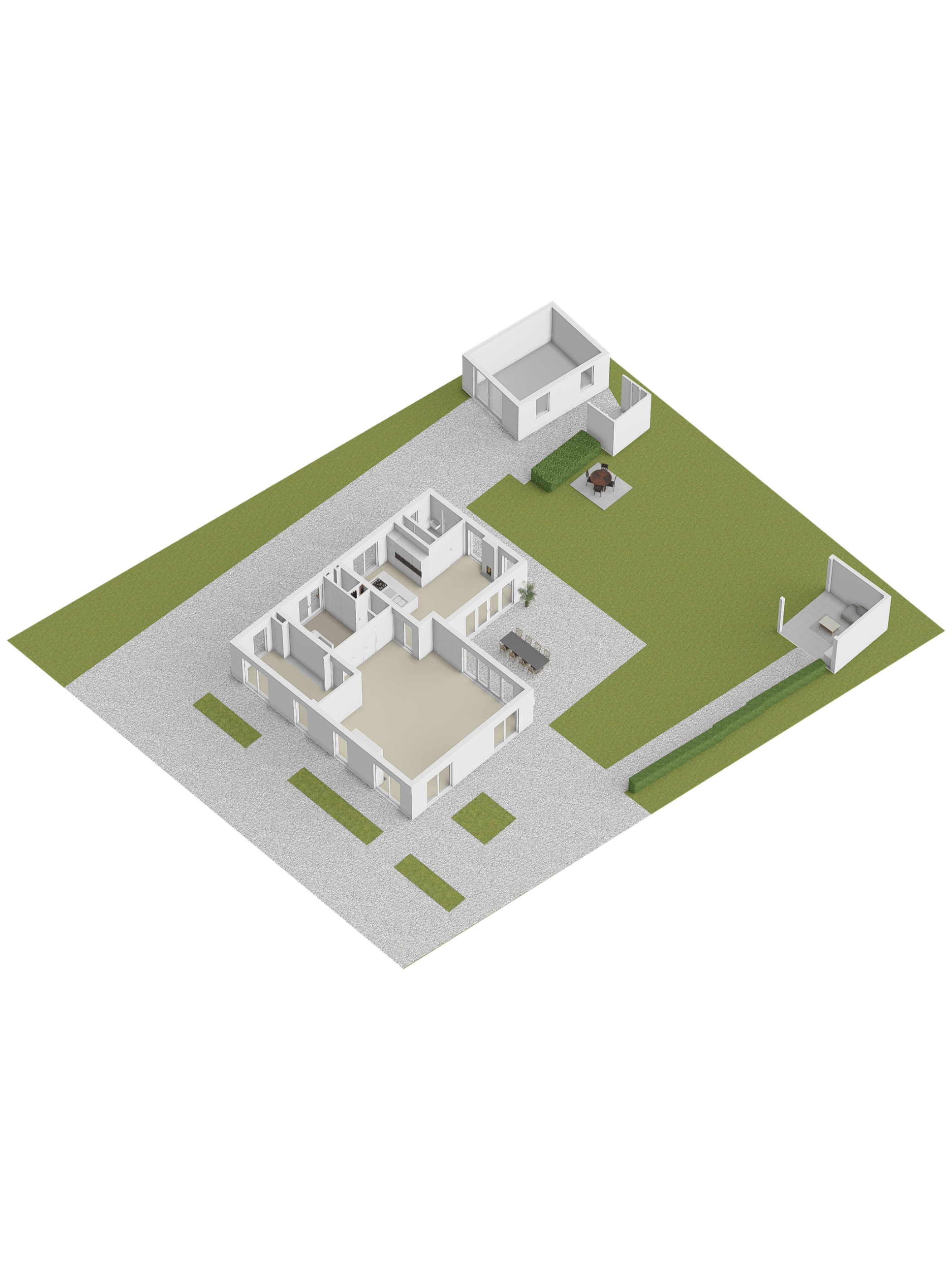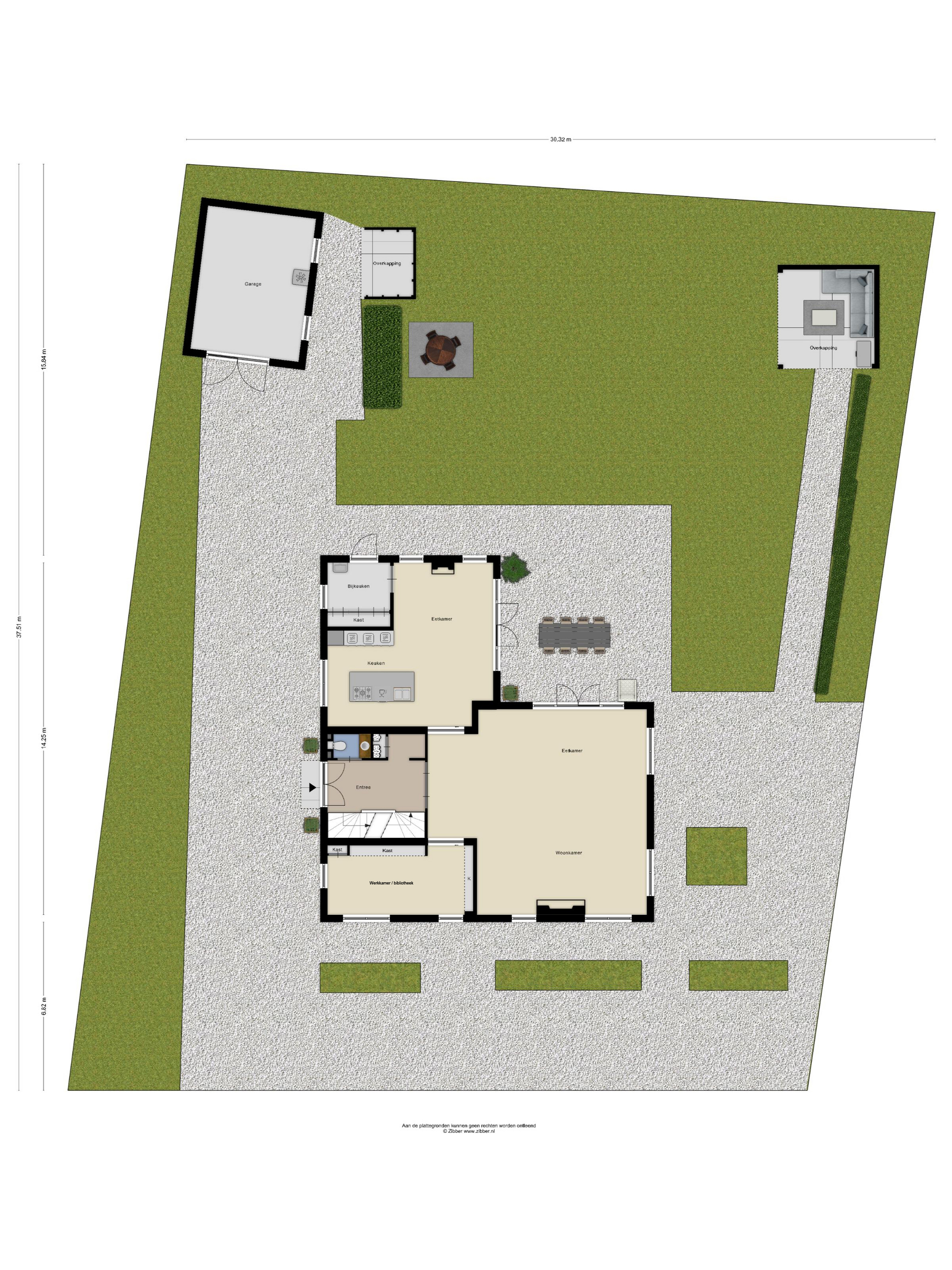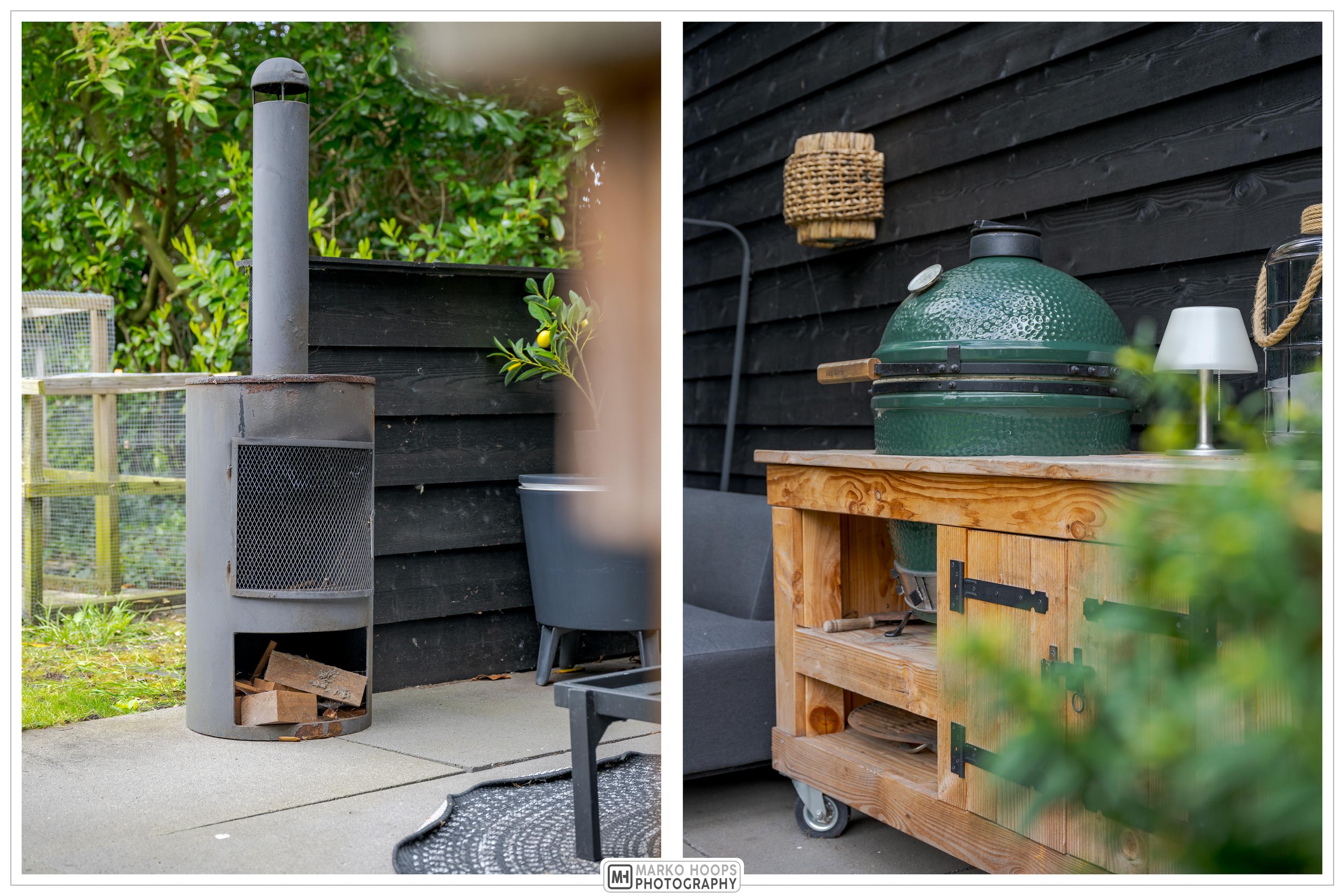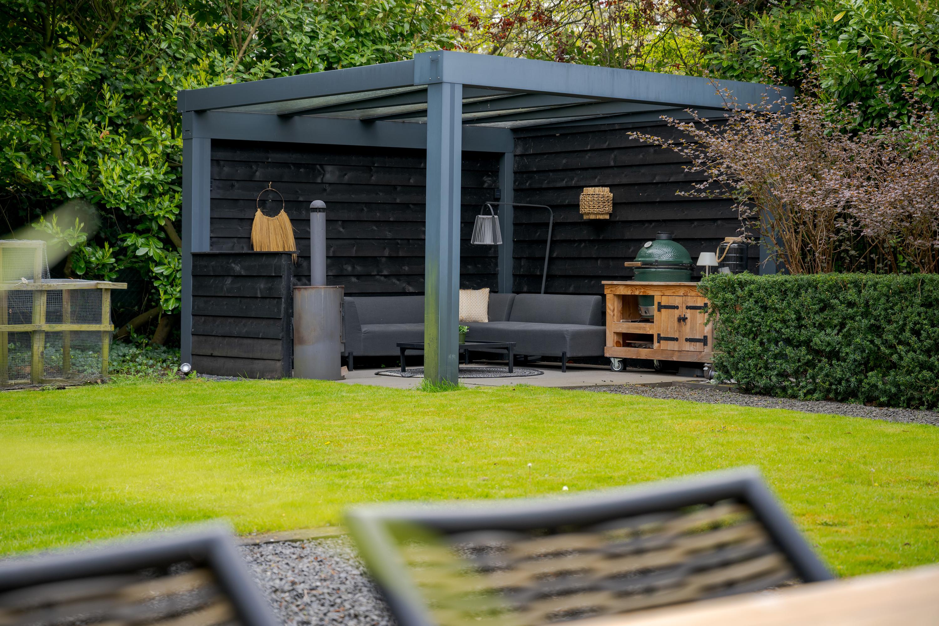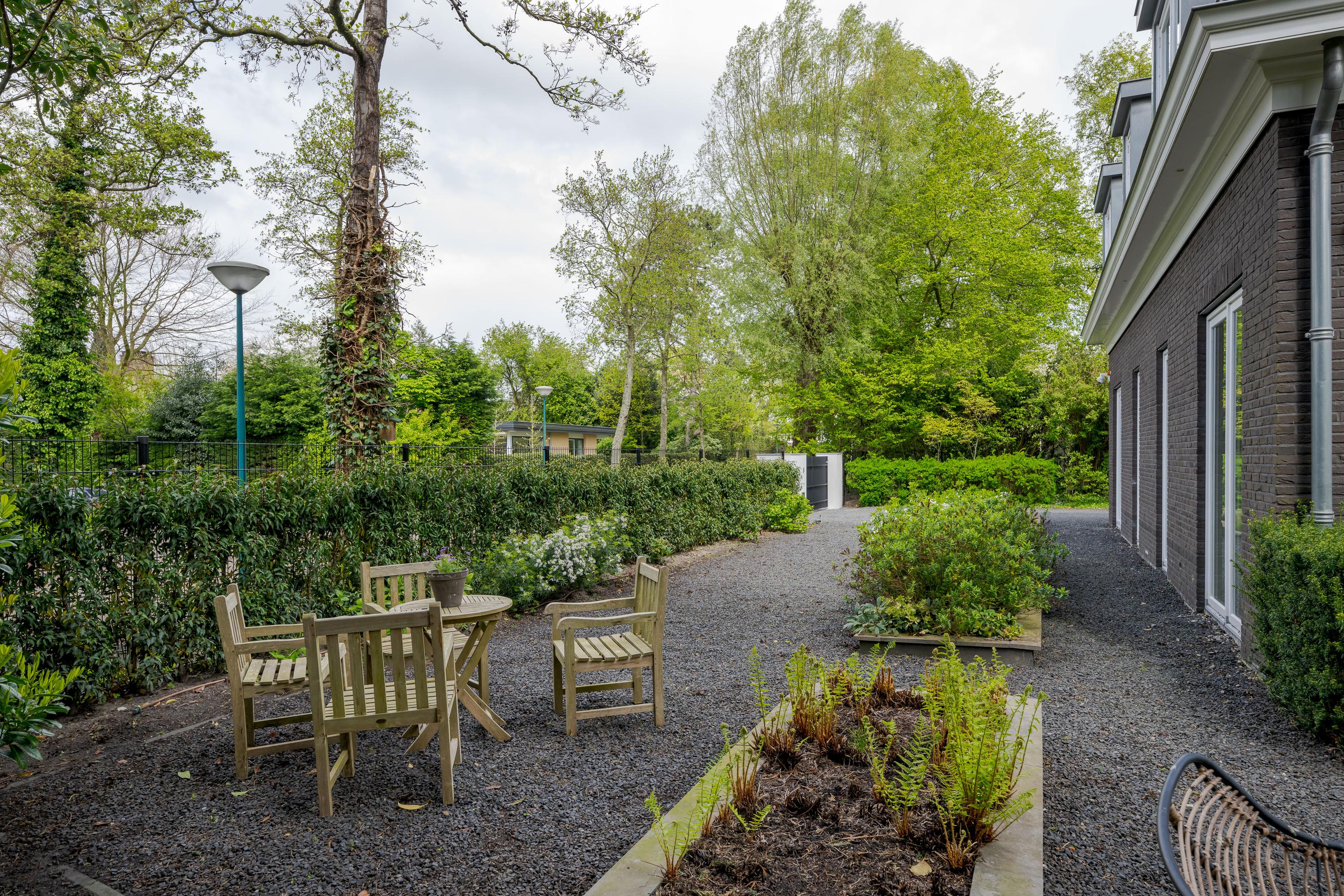 De tuin heeft een zeer gunstige zonligging. Vanaf vroeg in de morgen tot laat in de avond staat de zon op het perceel. Achter in de tuin is een zithoek met overkapping en buitenkeuken, een heerlijk beschutte plek om in de zomer te BBQ-en of een mooi glas wijn te drinken. Het grote terras grenzend aan het gazon is op het zuiden gelegen en rondom de woning zijn nog diverse zithoekjes gecreëerd, zodat er op elk moment van de dag van de zon of de schaduw kan worden genoten.