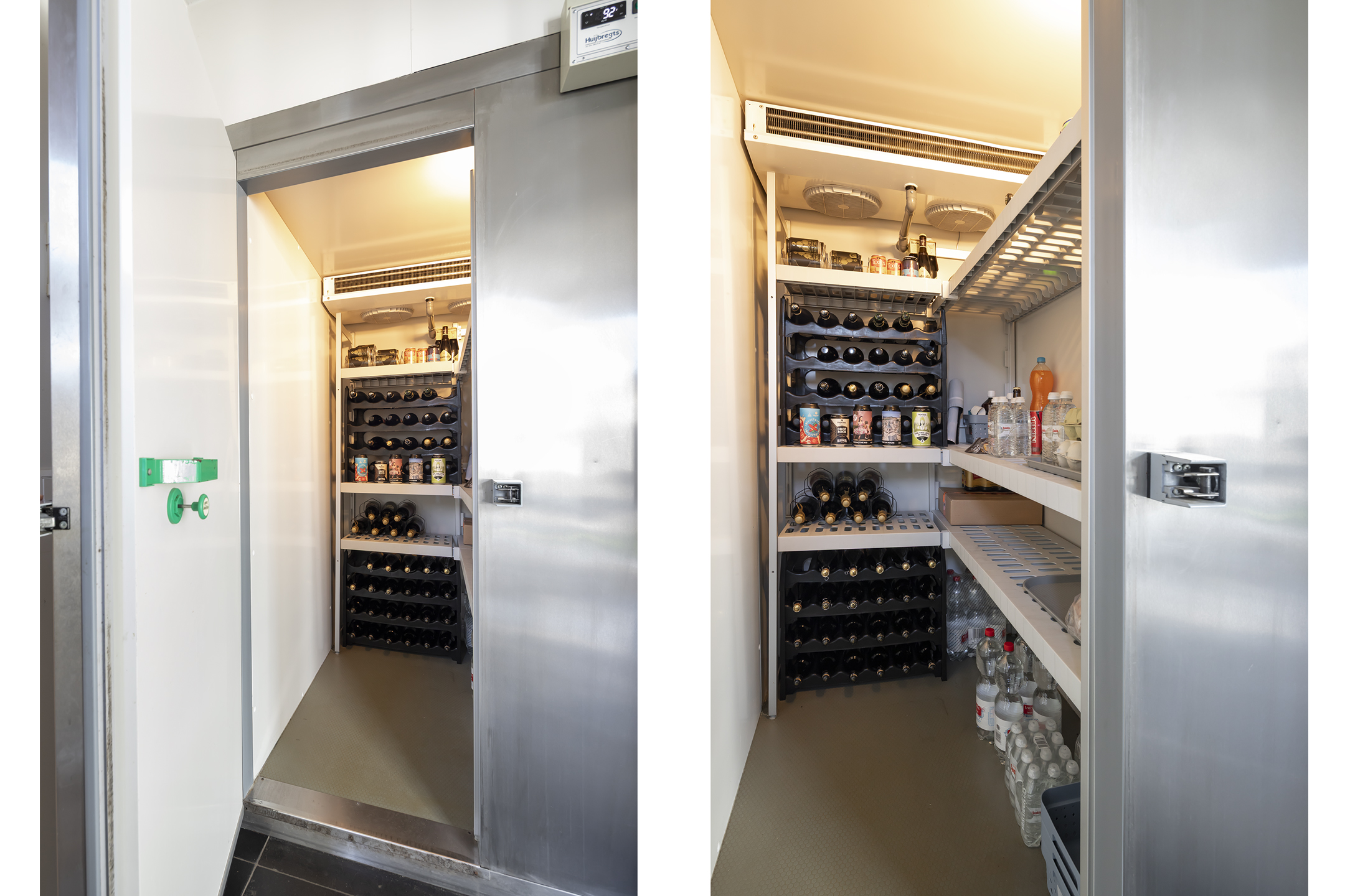 Jawel, deze woning heeft niet alleen een gewone koelkast, maar een echte, professionele koelcel. Zo eentje die je tegenkomt bij de groenteboer. Deze kan eventueel ook als vriescel dienen tot wel -30 graden. Hier kun je met gemak voor “een heel weeshuis” je vlees, kip, groenten, melkproducten, bier en wijn koelen.