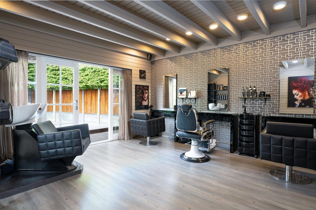 Dit luxueuze bijgebouw biedt tal van mogelijkheden, zoals een praktijk aan huis, een guesthouse, een bed & breakfast, een kantoor of woonruimte voor familie of een au pair. Het bijgebouw heeft een eigen opgang en beschikt over een royale showroom, een kantoorruimte met plaats voor drie werkplekken, een pantry en een tweede showroom. Ook is het mogelijk om drie slaapkamers te realiseren. De begane grond biedt middels openslaande deuren toegang tot de zonnige veranda, die zich over de gehele voorzijde uitstrekt.