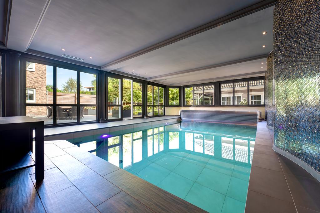 Een van de absolute hoogtepunten is het inpandige zwembad met wellnessruimte. Dit exclusieve zwembad (gerenoveerd in 2022) is fraai geïntegreerd in de villa en wordt gescheiden van de living door een glazen wand. Vanuit de zwembadruimte heeft u direct toegang tot de riante tuin met een groot terras, ideaal om te ontspannen in een luxe loungesetting.
