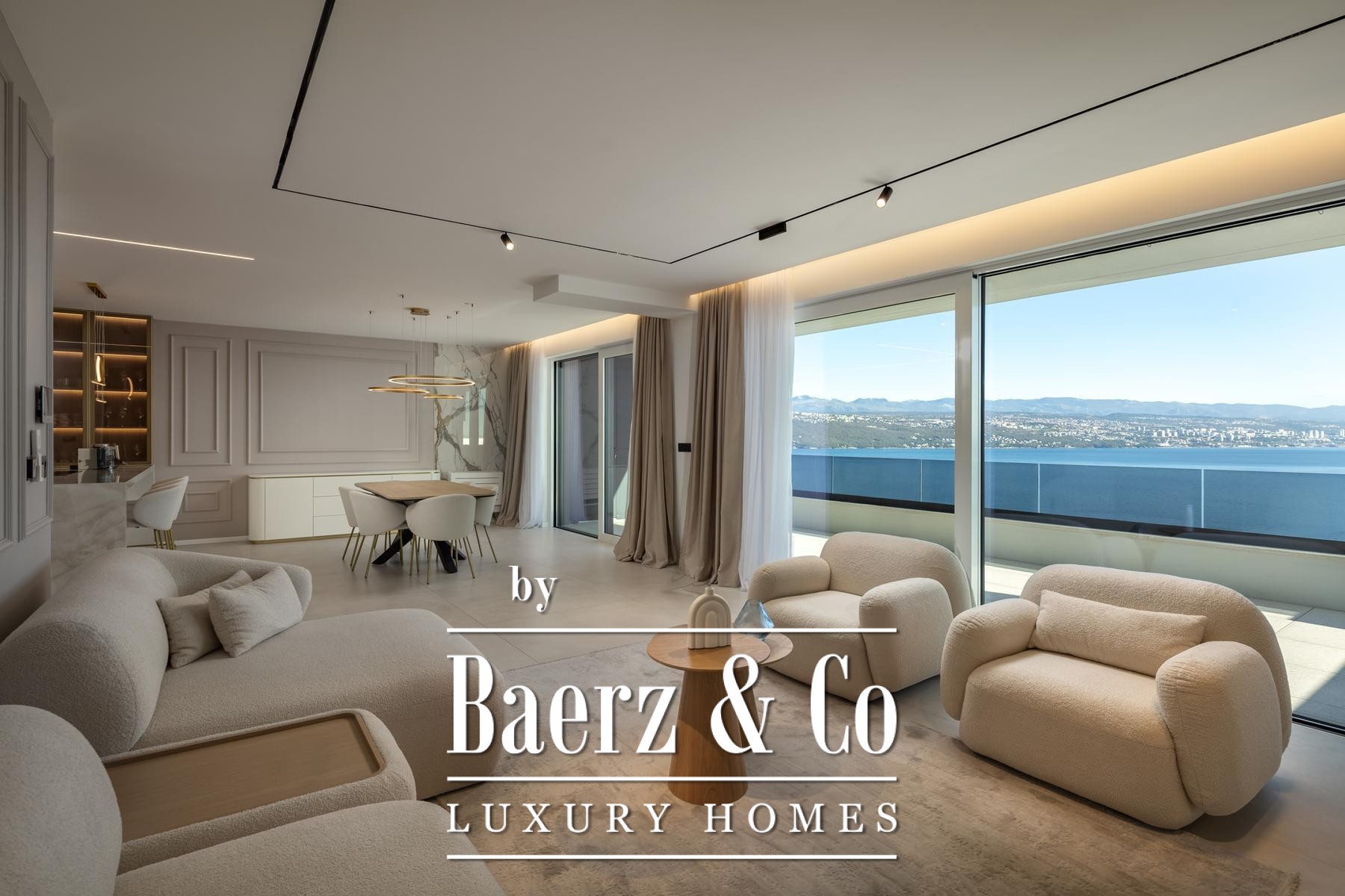 Appartement Opatija is een verfijnde kustresidentie van 142 m², ontworpen voor wie helderheid en ruimte waardeert en een verheven mediterrane beleving zoekt. Dit appartement beschikt over drie slaapkamers en drie badkamers, een royale open keuken, eet- en woonkamer met toegang tot een terras dat uitkijkt over de Kvarnerbaai. De ligging zorgt voor lichte, luchtige vertrekken waar natuurlijk daglicht binnenvalt door de grote ramen en het uitzicht op de Adriatische Zee en het serene voorbij varen van schepen.