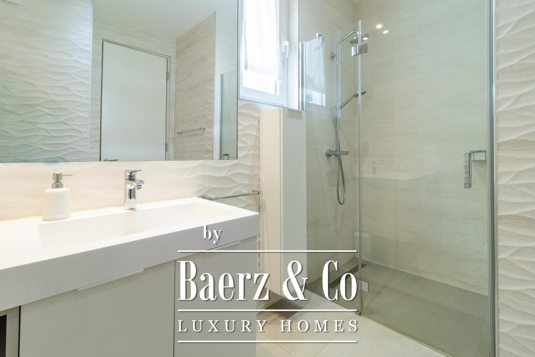 Twee overdekte balkons bieden rustgevende uitzichten op de mediterrane omgeving en versterken de verbinding tussen binnen en buiten. Het hoogtepunt is het dakterras van 50,20 m² met jacuzzi en een aangrenzend toilet, een exclusieve plek voor zowel intieme ontspanning als stijlvol entertainment. Drie parkeerplaatsen in de garage, een buitenparkeerplaats en een eigen berging in het souterrain vergroten de exclusiviteit.