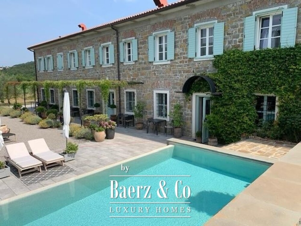 Villa te koop in Osp: een zorgvuldig gerestaureerd landgoed uit de 19e eeuw, gelegen in een van Slovenië’s meest historische dorpen waar de robuustheid van het Karstlandschap samensmelt met het licht van Istrië. Met 539 m² woonoppervlak eert de villa 130 jaar geschiedenis middels doordacht hedendaags design en geavanceerde technologie.