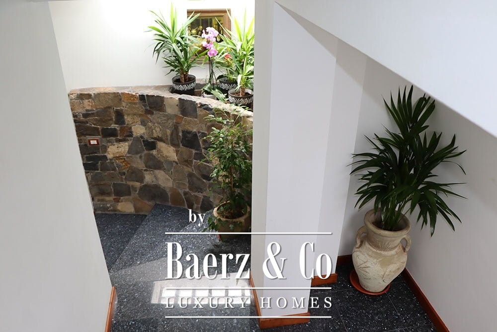 De begane grond draait om een royale woonkamer, waar de open, professionele keuken naadloos aansluit op de eetkamer. Hiernaast bevindt zich een wintertuin met een tweede keuken en barbecue, omsloten maar toch open en uitkijkend op het spectaculaire zeezicht. Praktische voorzieningen zijn onder meer een ruime garage voor meerdere auto's, een aparte douche bij het zwembad en een wasruimte. De begane grond sluit direct aan op een portico die toegang geeft tot de terrassen en het verwarmde infinity-zwembad dat in het horizonbeeld opgaat.