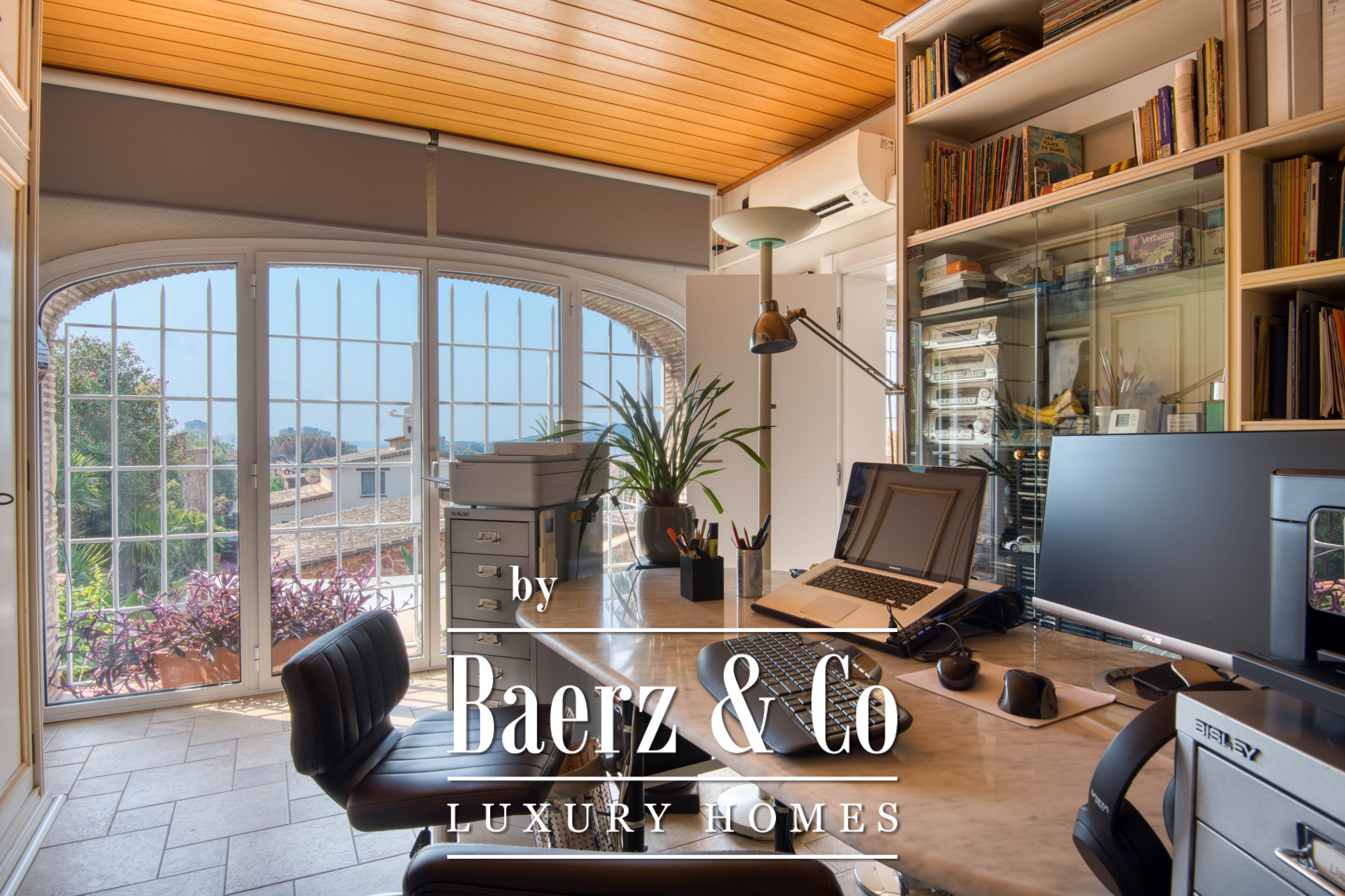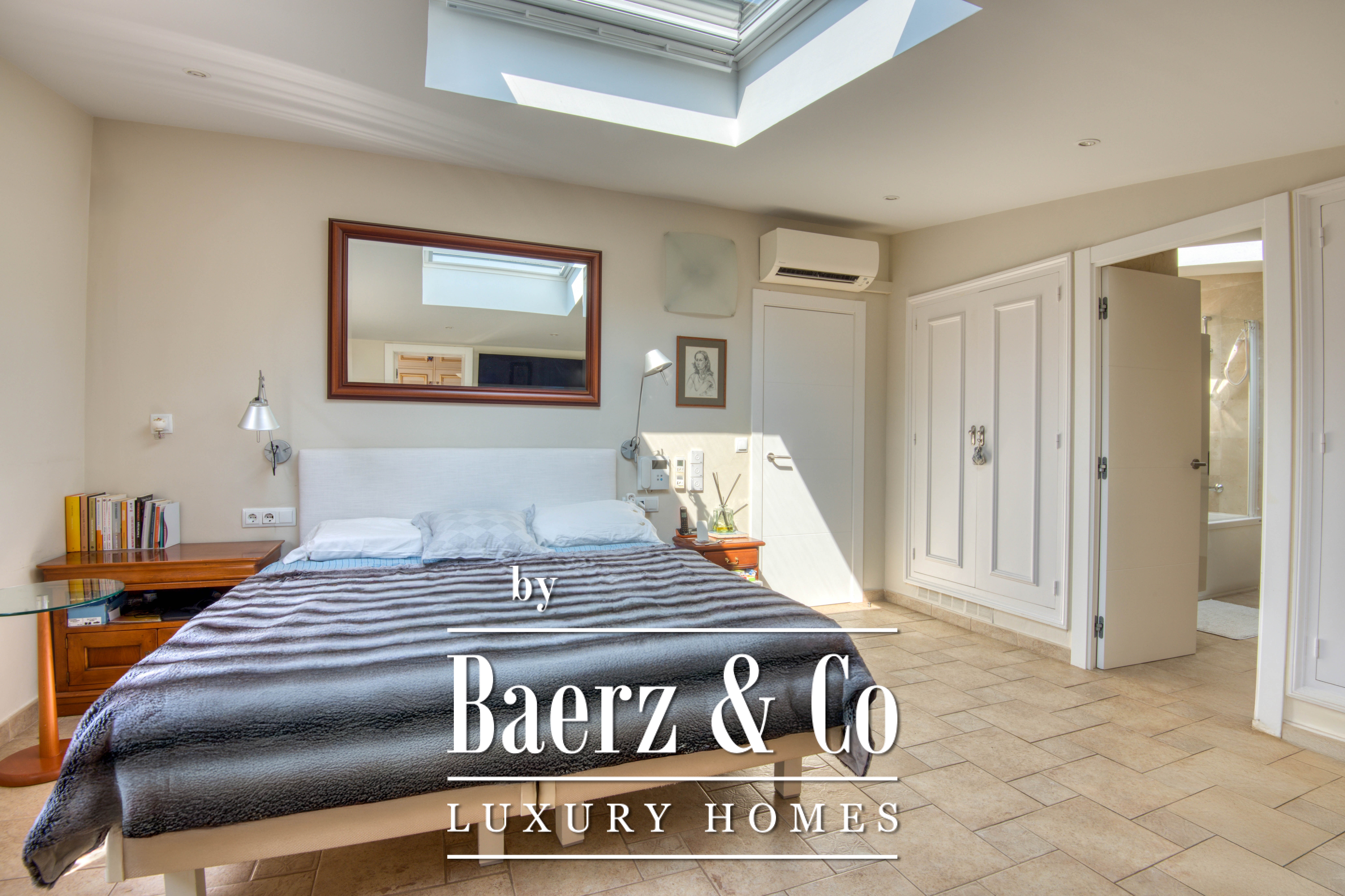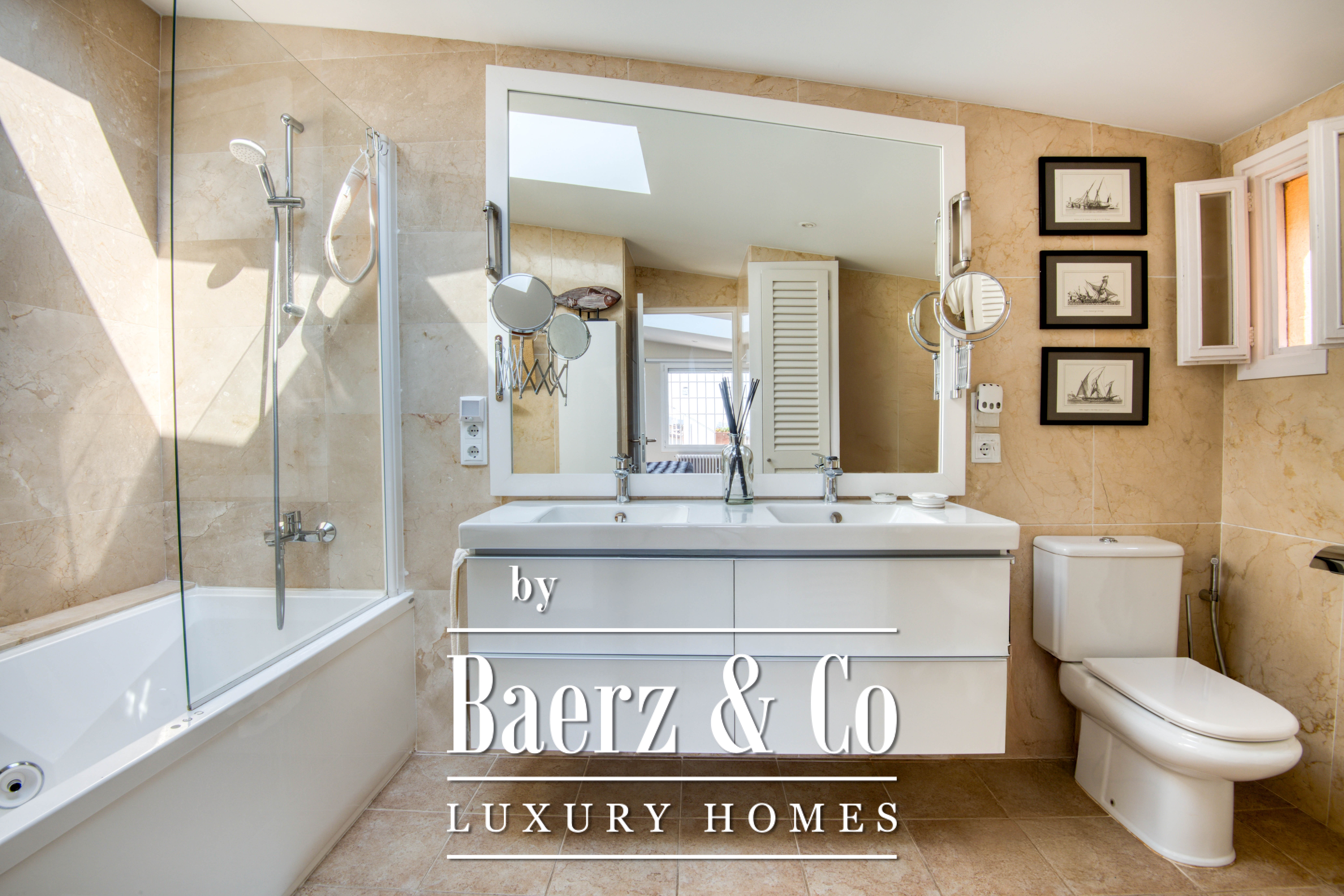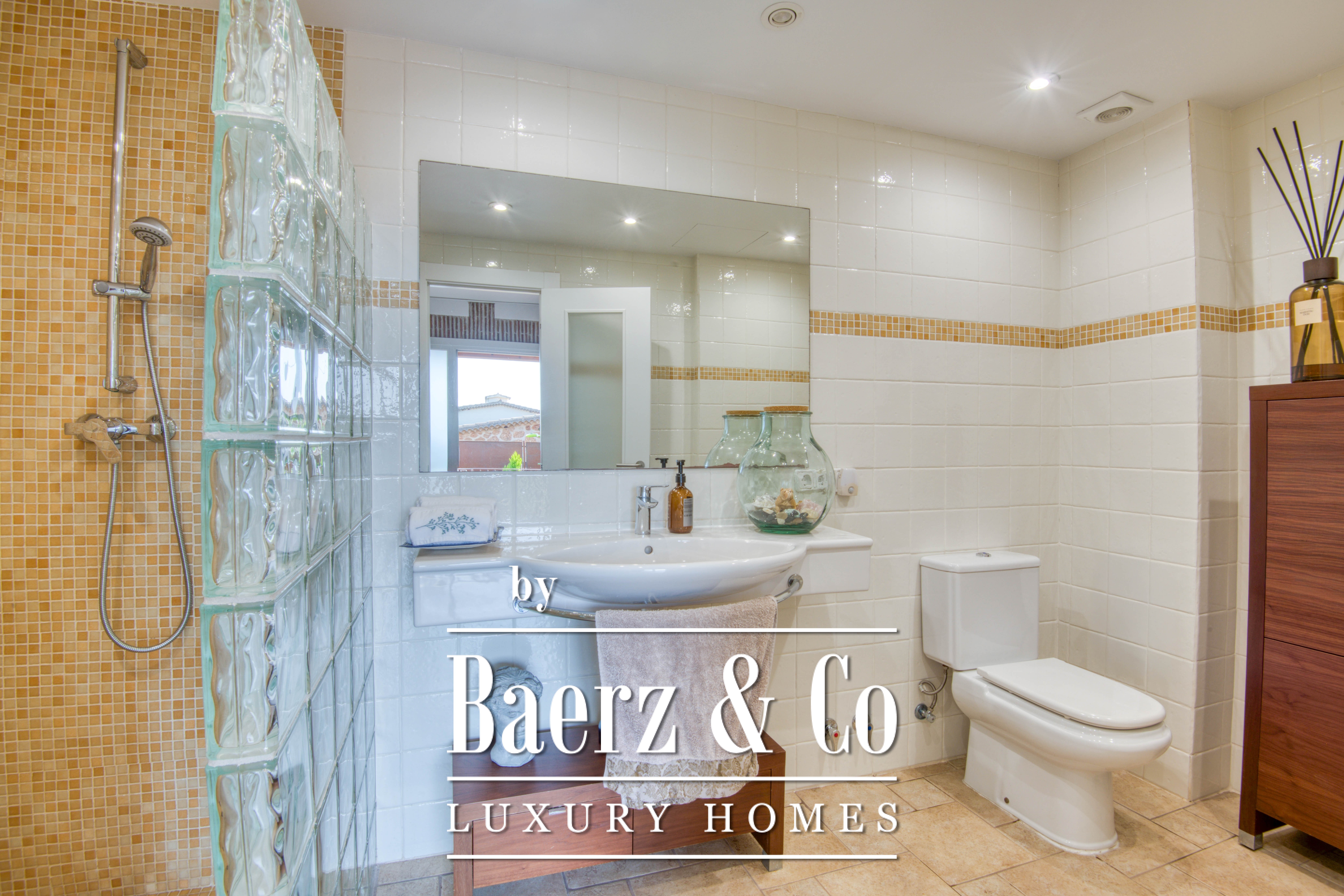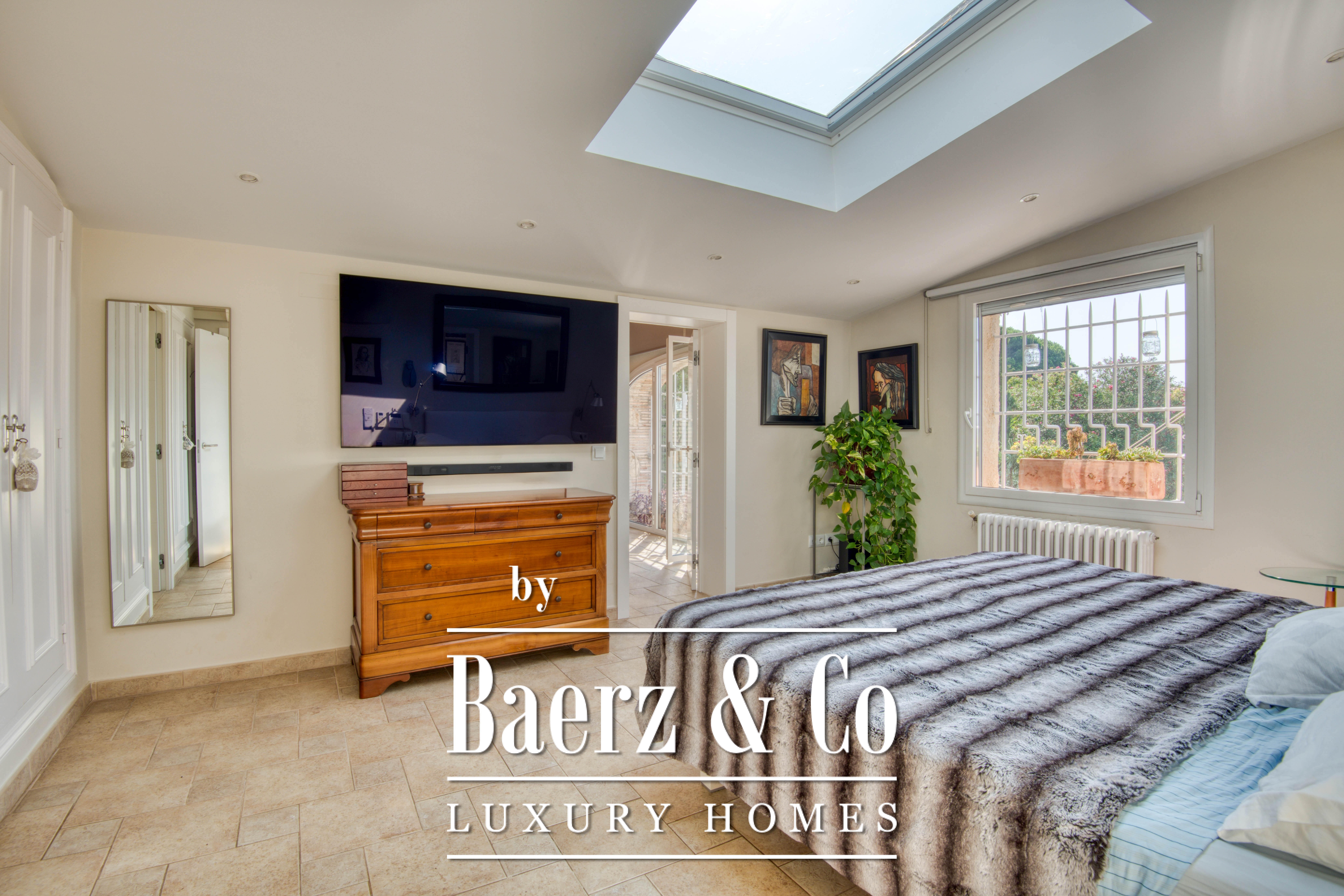 Op de eerste verdieping bevinden zich twee tweepersoonsslaapkamers met op maat gemaakte inbouwkasten en een complete badkamer, naast de hoofdsuite. Deze beschikt over een inloopkast, eigen badkamer, kantoorruimte en directe toegang tot een privéterras met panoramisch uitzicht over Platja d’Aro en het omliggende landschap.