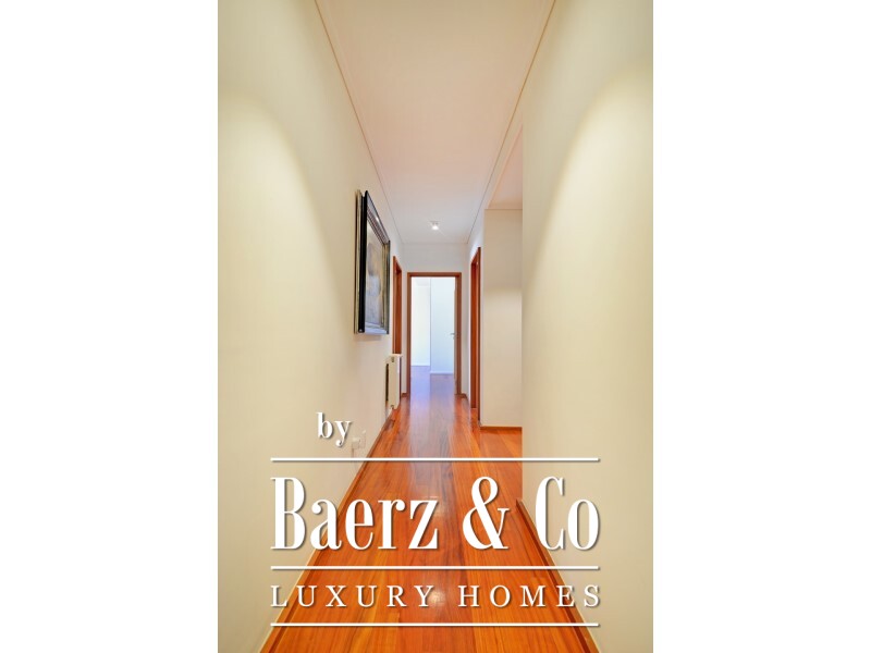 Een ruime entreehal leidt naar de keuken, volledig uitgerust met geïntegreerde apparatuur en een aparte wasruimte, die toegang biedt tot het hoofdwoonvertrek. Hier zorgen kamerhoge ramen de hele dag voor een overvloed aan licht, terwijl het balkon vrij uitzicht biedt over de stad. De leefruimte wordt gecompleteerd door een gastentoilet, terwijl het privé-gedeelte bestaat uit twee suites, waarvan één met een ruime inloopkast die ontstaan is door het samenvoegen van twee slaapkamers, en een extra badkamer.