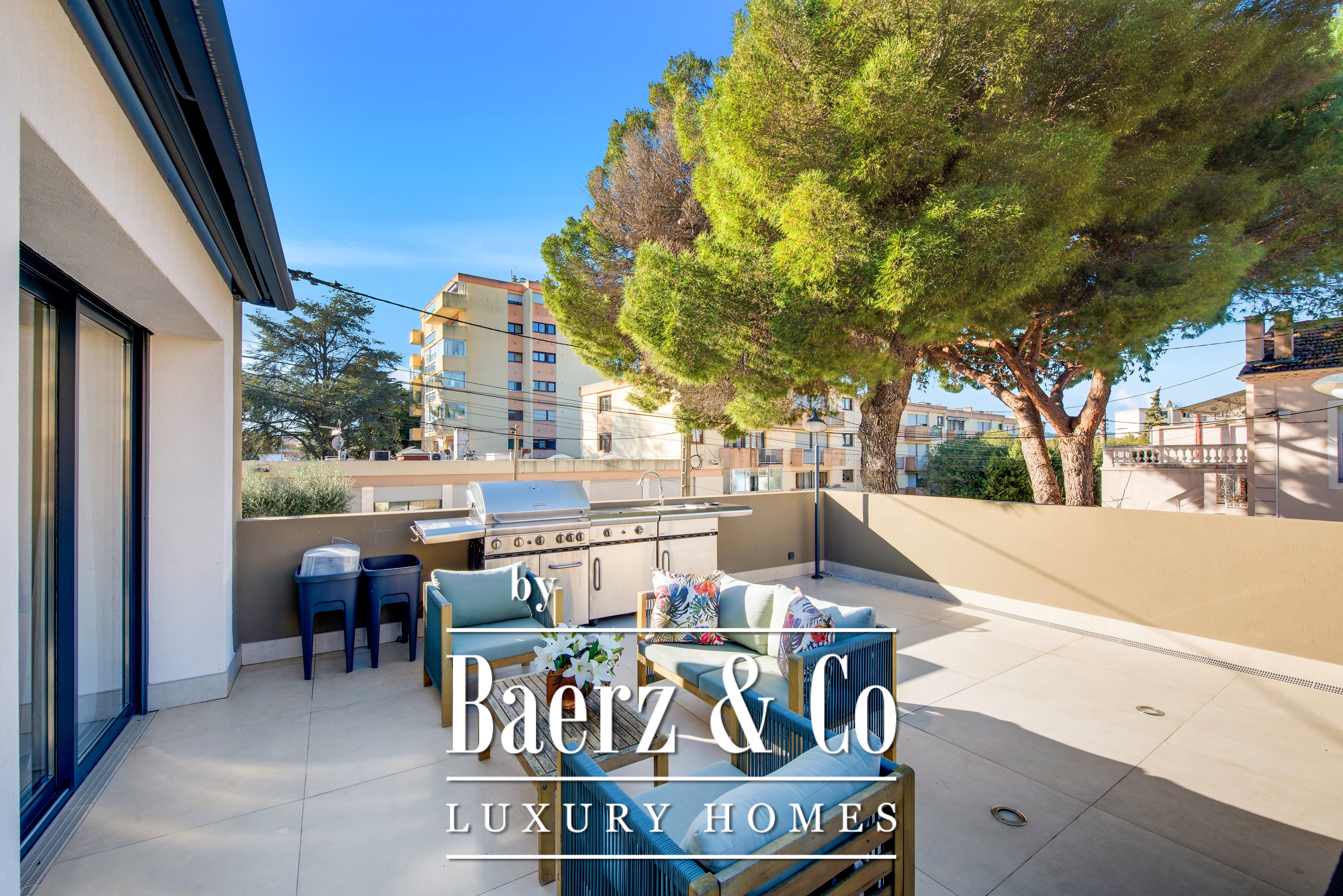 Appartement Saint-Raphaël Town Centre bevindt zich in het hart van de stad en biedt een zeldzame combinatie van karaktervolle renovatie en ruimte. Deze gerenoveerde woning beslaat 125 m² en beschikt over twee slaapkamers met en-suite badkamer, elk met een eigen doucheruimte of badkamer, tot in detail verzorgd. De woonkamer is open en licht, gericht op het zuiden voor optimaal daglicht, en ademt een sfeer die rustig mee verandert van ochtendgloren tot avondzon. Een terras van 28 m² vergroot het leefoppervlak naar buiten en vangt de zon van de Côte d’Azur, ideaal voor zowel stille momenten als gezellige bijeenkomsten.