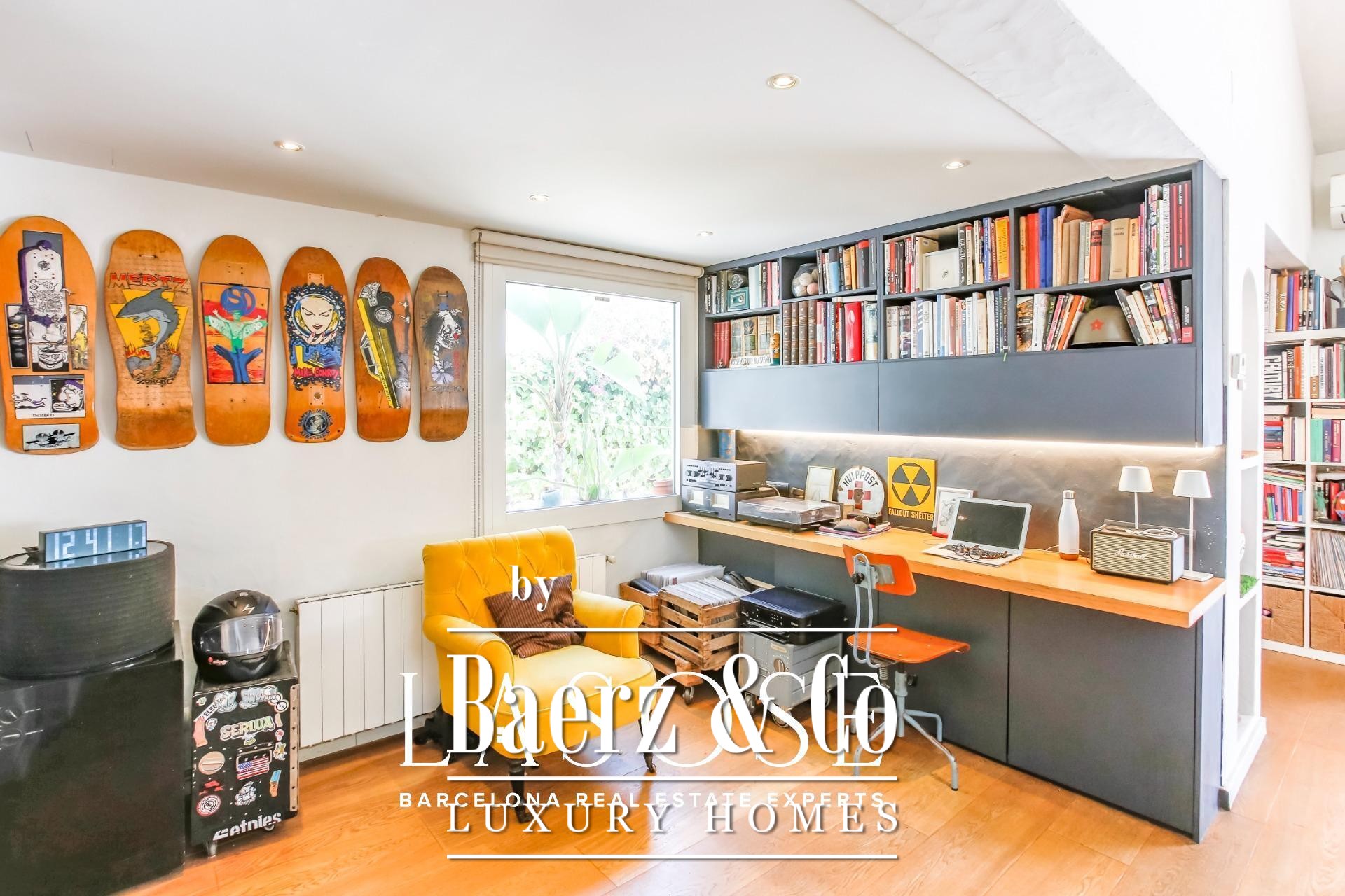 Het interieur ontvouwt zich in een harmonisch ritme. Een elegante living met open haard loopt over in de tuin en de compleet uitgeruste keuken met centraal werkeiland grenst aan een privépatio en parkeergelegenheid. Op de begane grond zorgt een gastenverblijf of werkplek voor extra flexibiliteit, terwijl de bovenverdieping drie lichte tweepersoons slaapkamers biedt met uitzicht op de tuin en plafonds van dubbele hoogte. Verfijnde afwerkingen en neutrale tinten onderstrepen overal de natuurlijke elegantie van de architectuur.