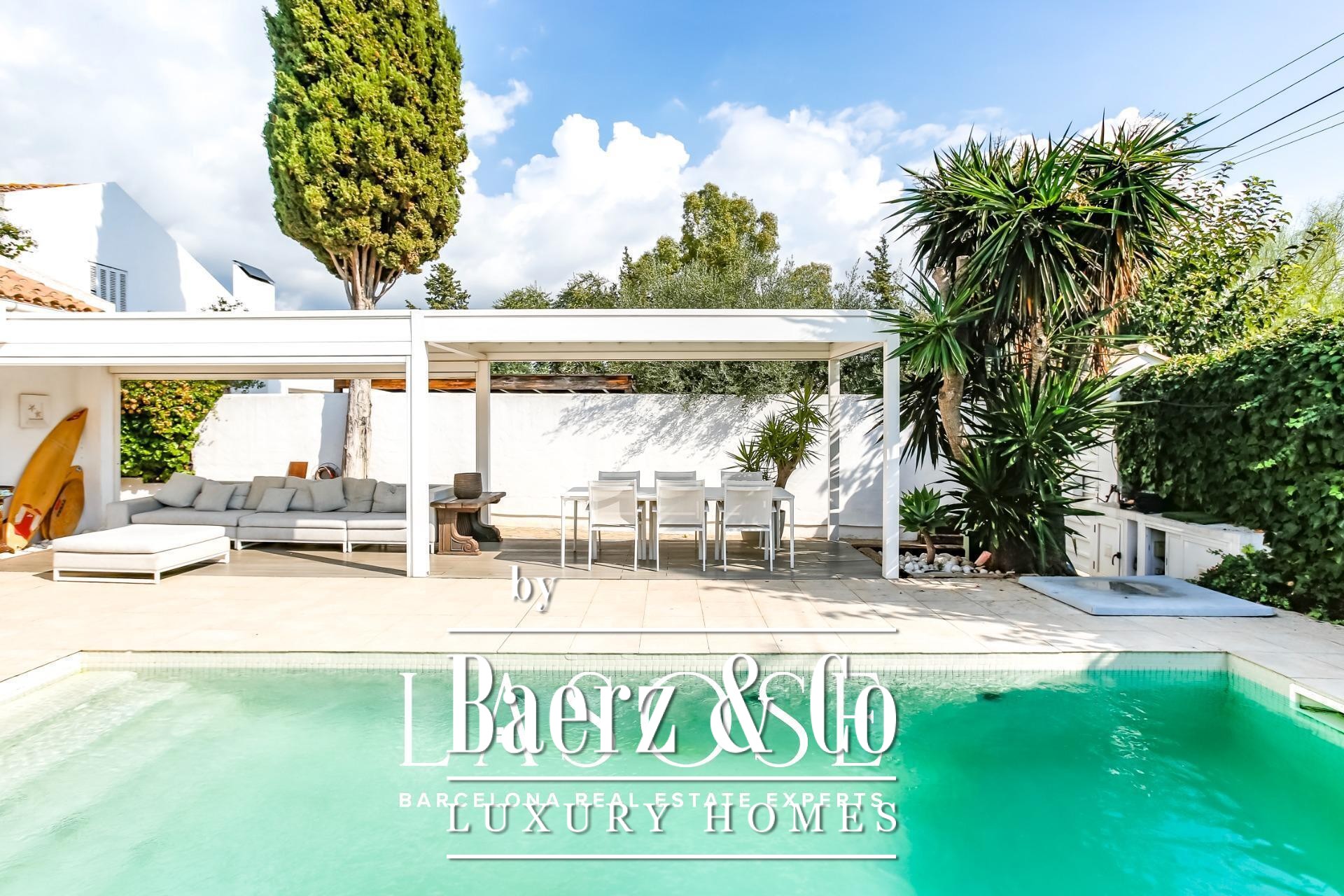 Vrijstaande woning in Sant Pere de Ribes combineert een ingetogen mediterrane uitstraling met een exclusieve ligging in de enclave Los Viñedos. Deze residentie biedt 155 m² zorgvuldig ingedeelde leefruimte op een perceel van 355 m², met vier slaapkamers en twee badkamers, doordacht geconfigureerd voor privacy en een natuurlijke flow. Licht stroomt door royale schuiframen en verbindt het interieur met weelderige tuinen, loungeterrassen en een privézwembad – een uitnodiging tot dagelijkse rust of intieme bijeenkomsten.