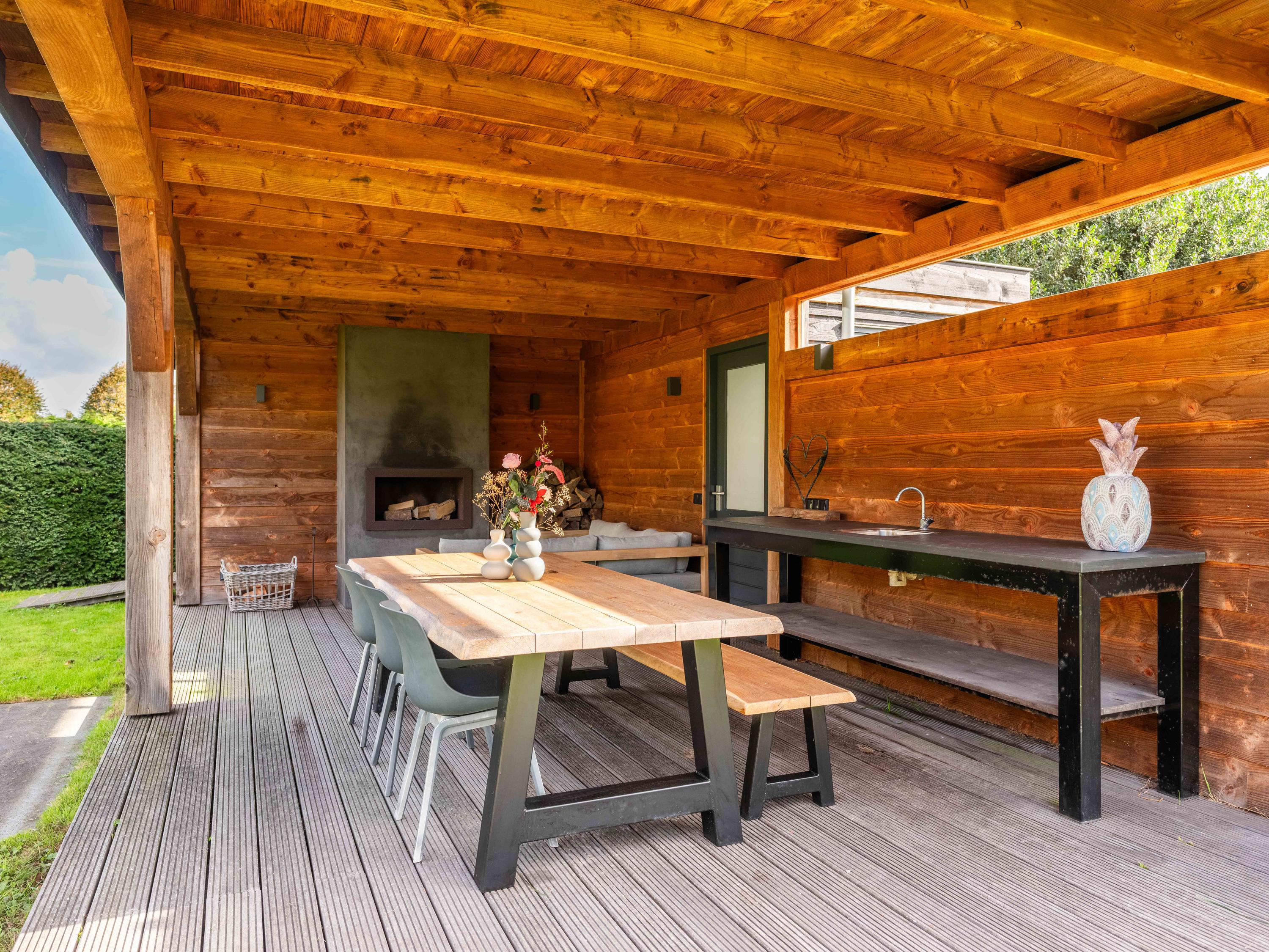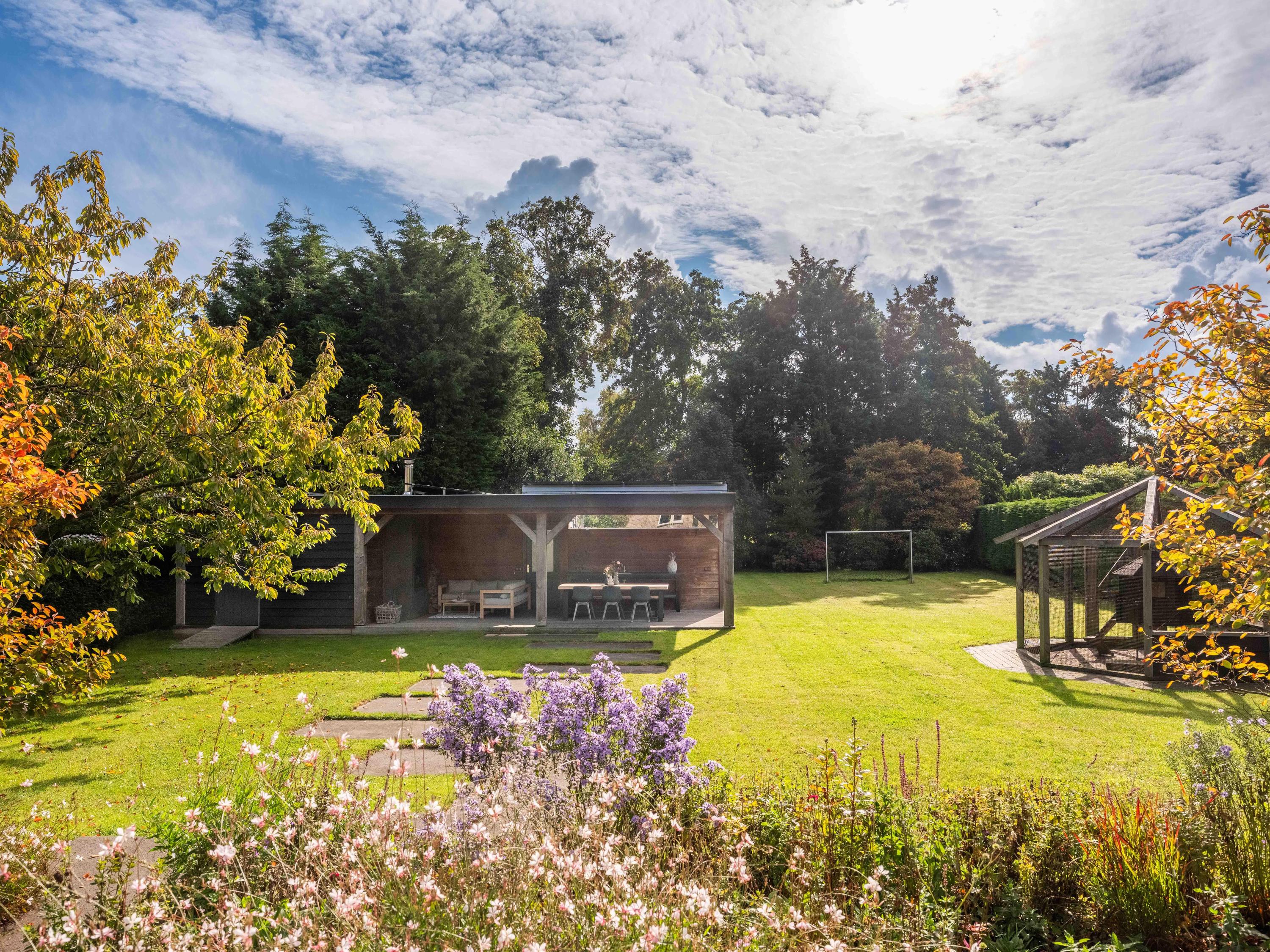 De achtertuin is erg ruim en verzorgd aangelegd. Er is een fijne veranda met houtkachel, zitruimte, bergruimte, elektra, verlichting en (koud) water. Ook bevindt zich in de tuin een royaal kippenhok dat blijft staan.